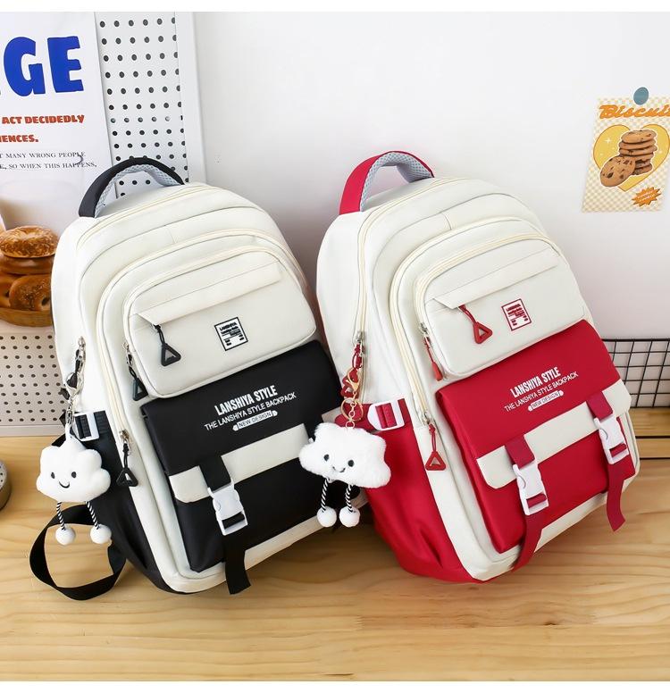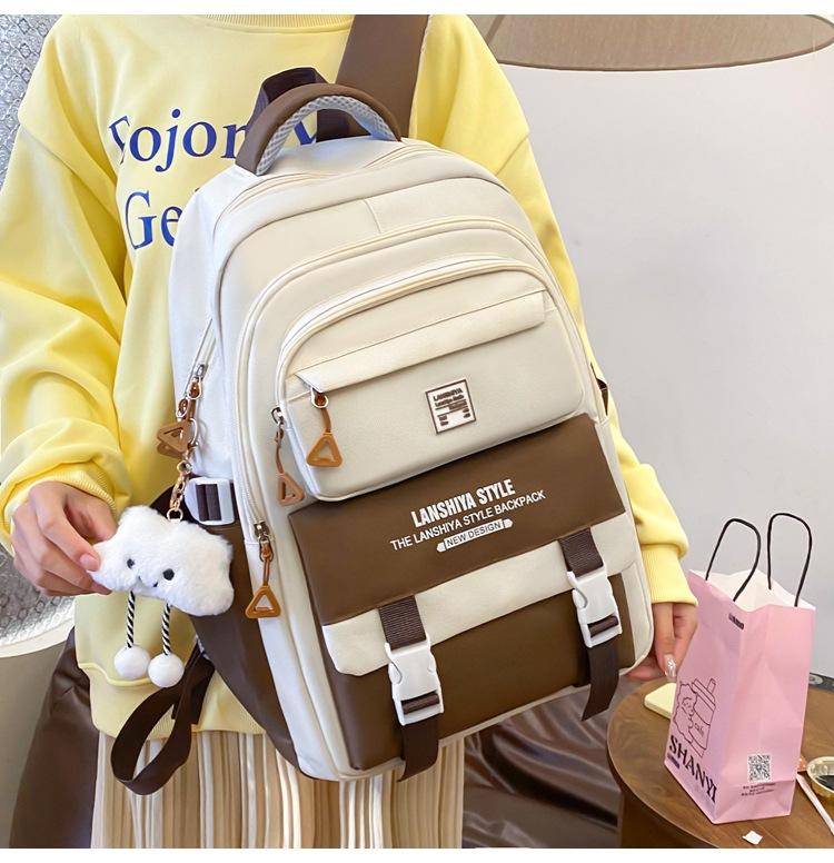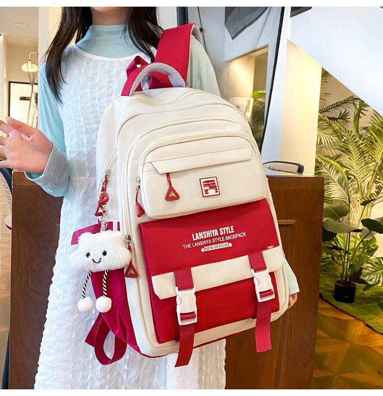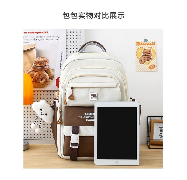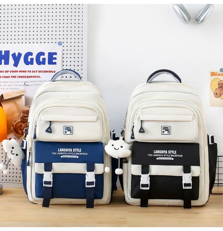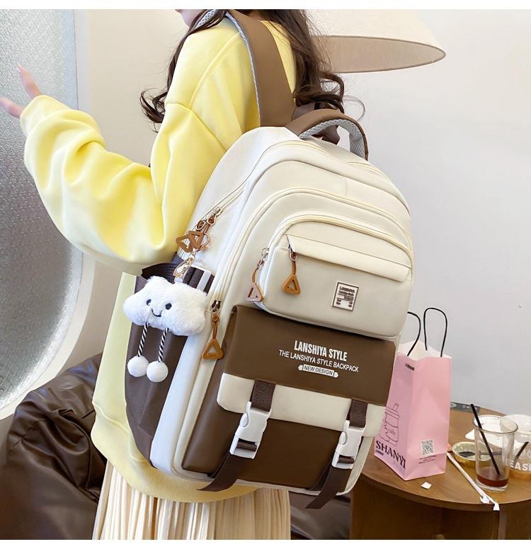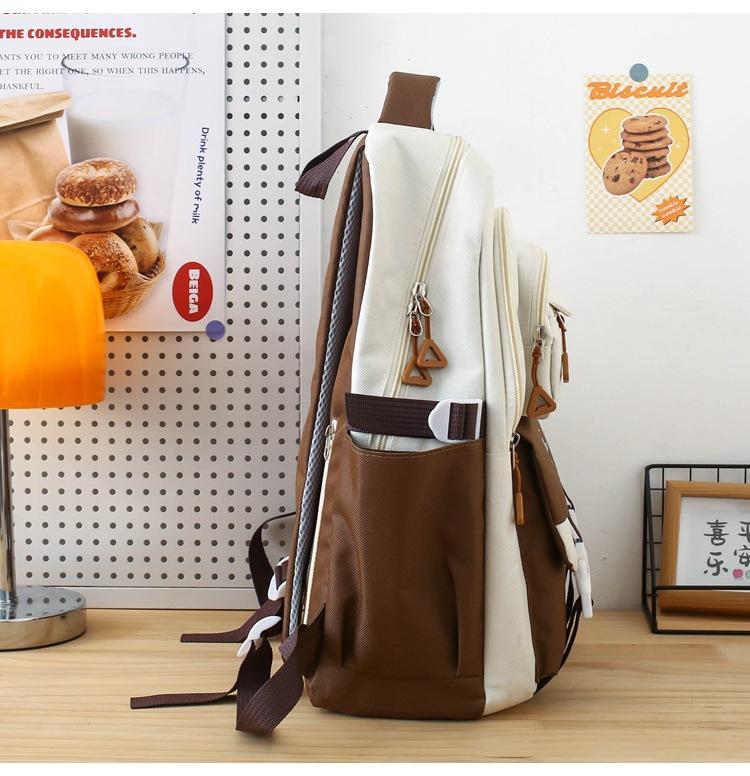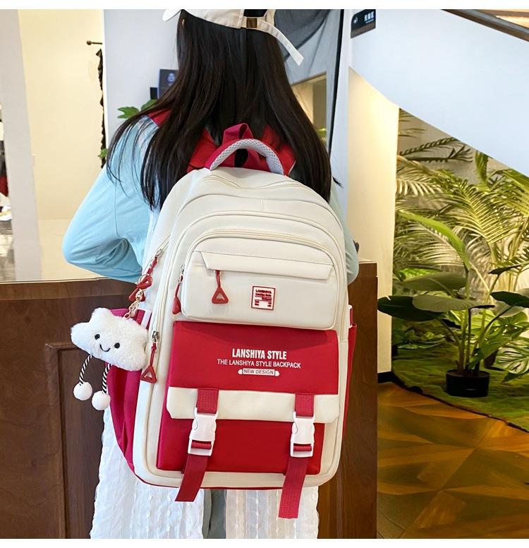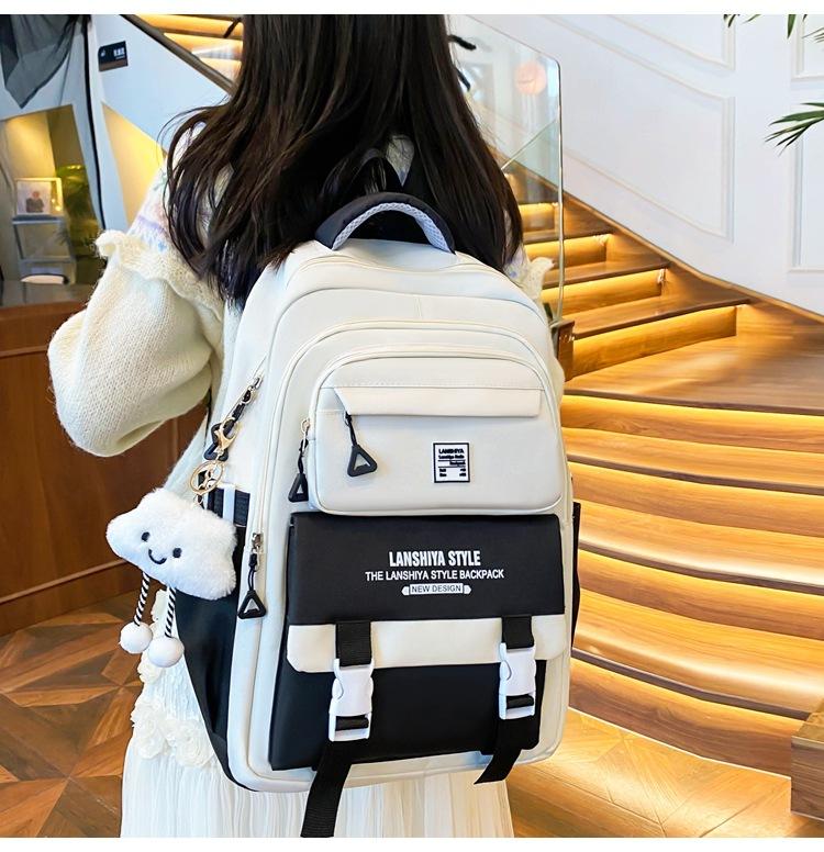 Mochila escolar de cinco piezas para estudiantes, mochila para estudiantes de secundaria, de color contrastante, coreana, duradera, de gran capacidad, para el campus, para hombre