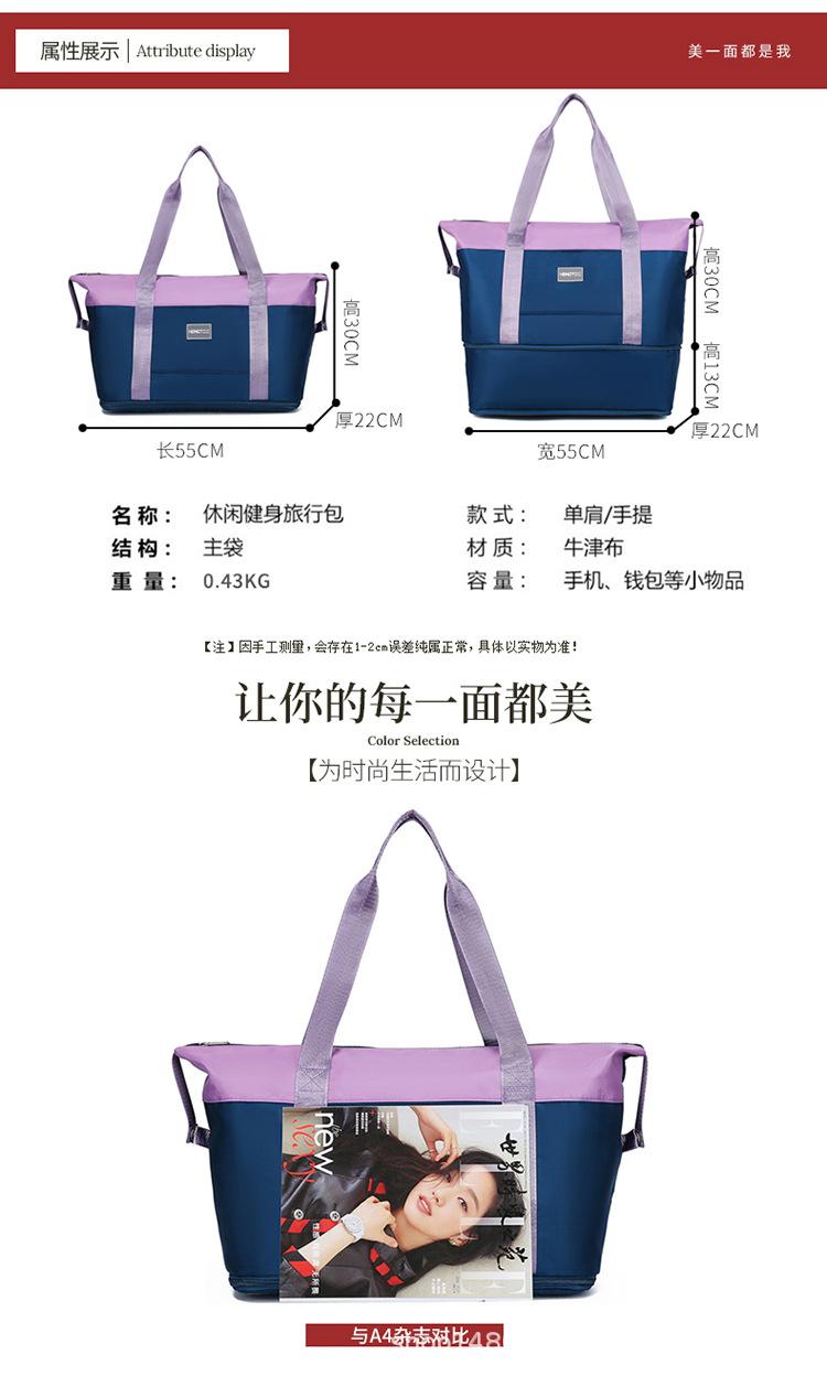 Bolsa de viaje ligera y transpirable, bolsa de viaje portátil de gran capacidad, bolsa de almacenamiento, bolsa de equipaje de viaje, bolsa de almacenamiento para fitness y yoga.