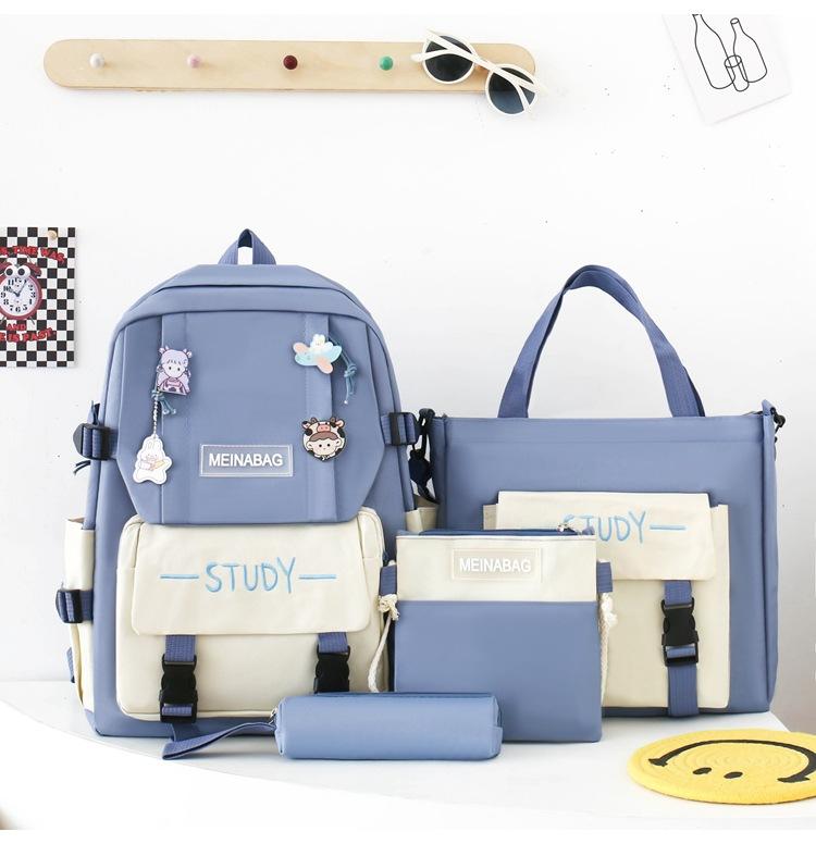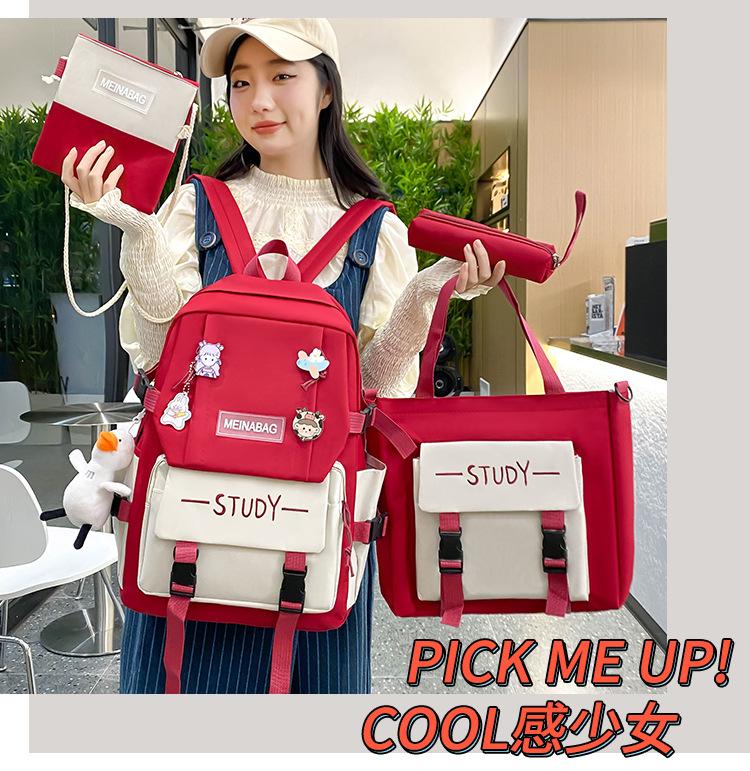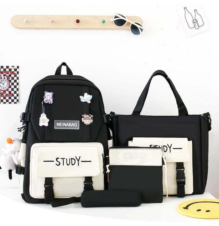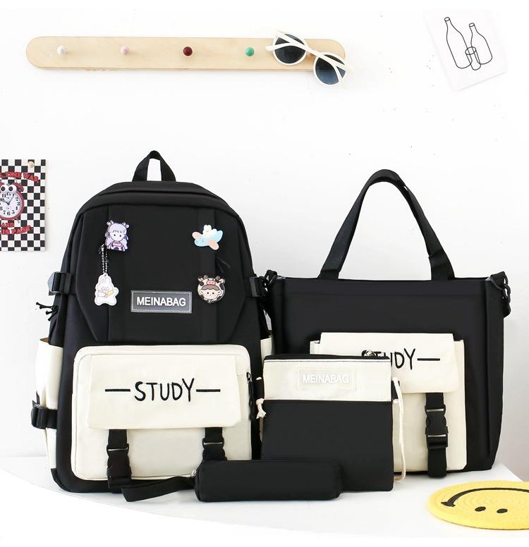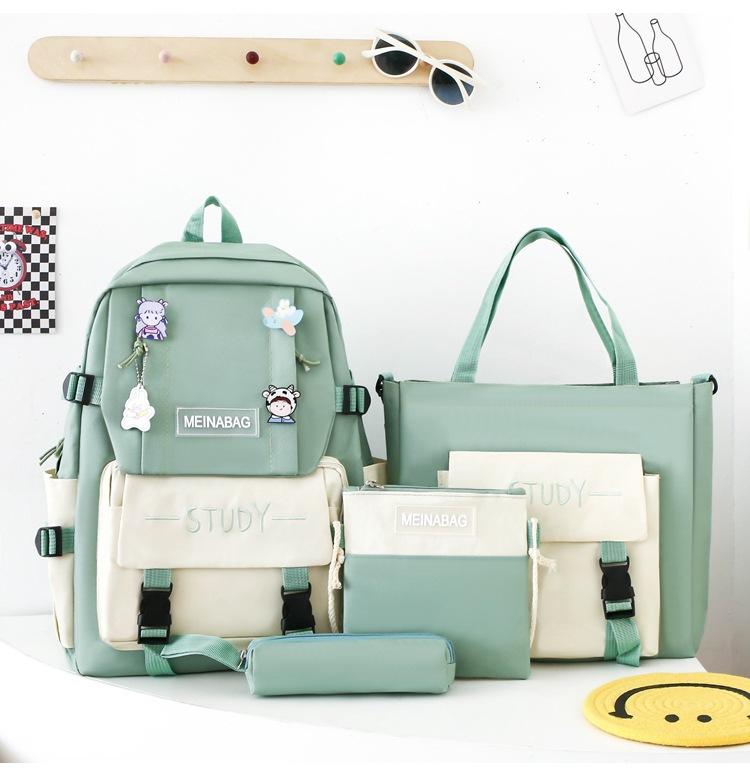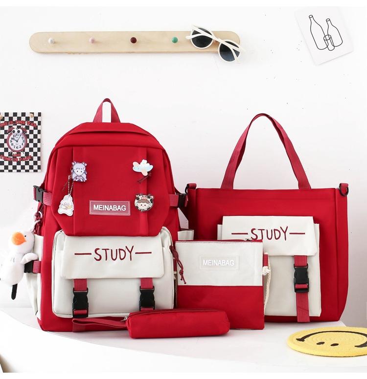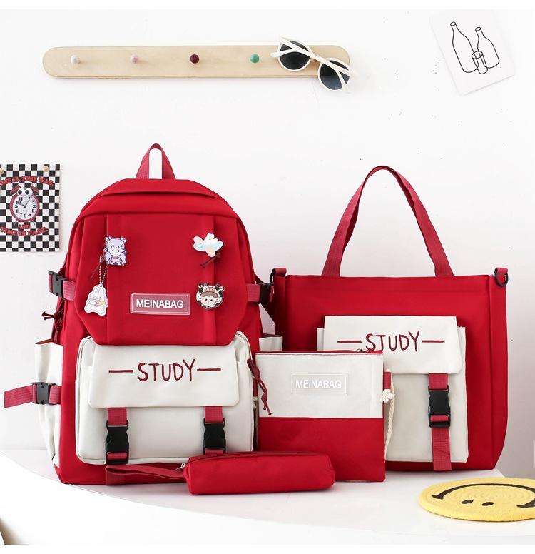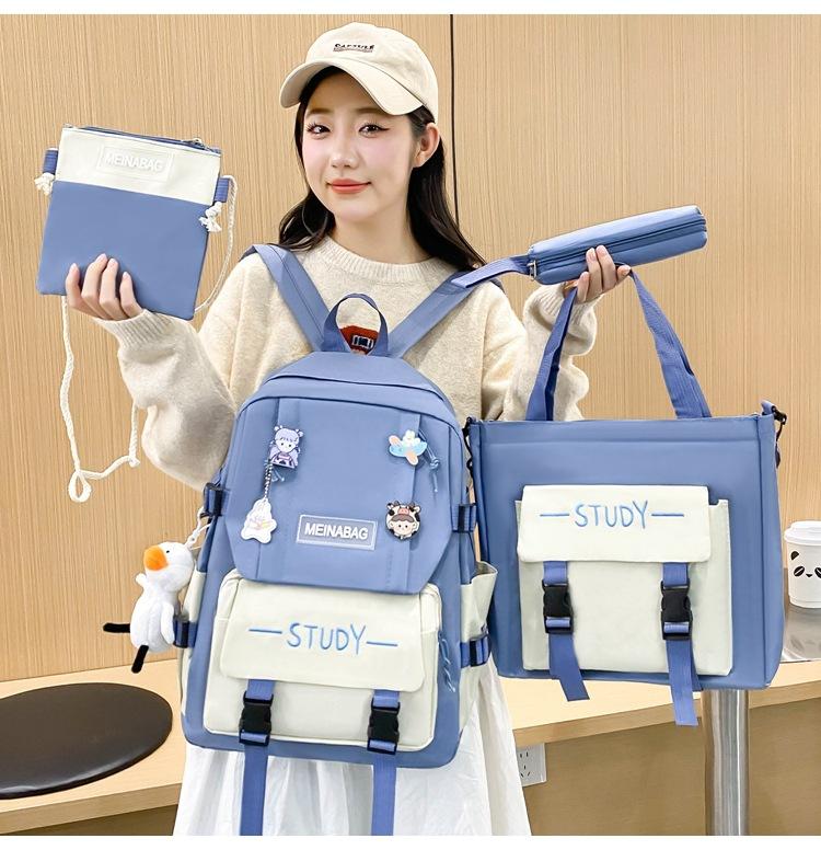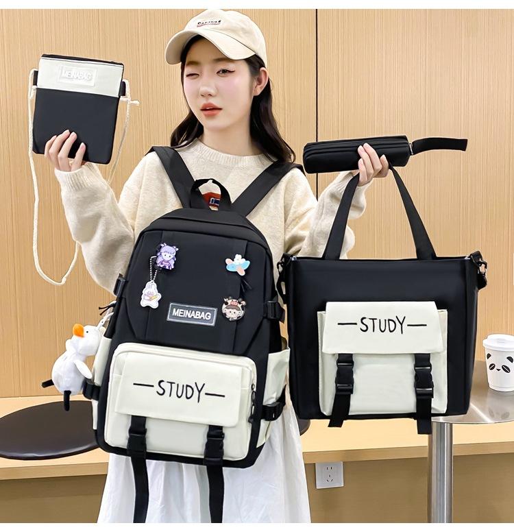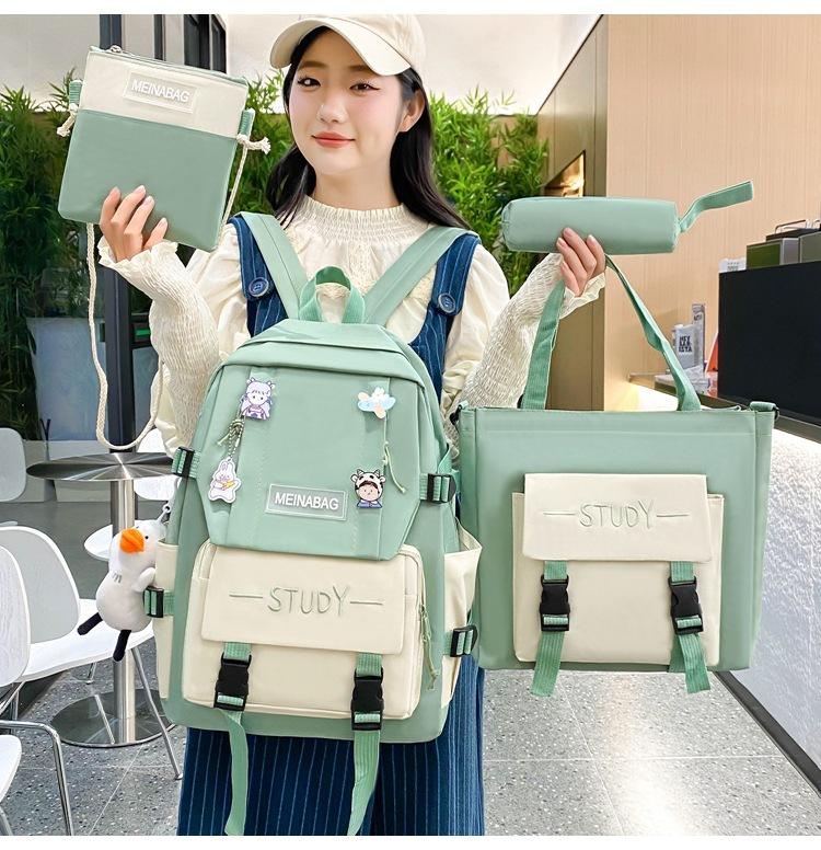 Mochila para estudiantes universitarios, nueva mochila de viaje para mujer, mochila escolar sencilla de lona para el campus de la escuela secundaria, mochila de moda personalizada de cuatro piezas