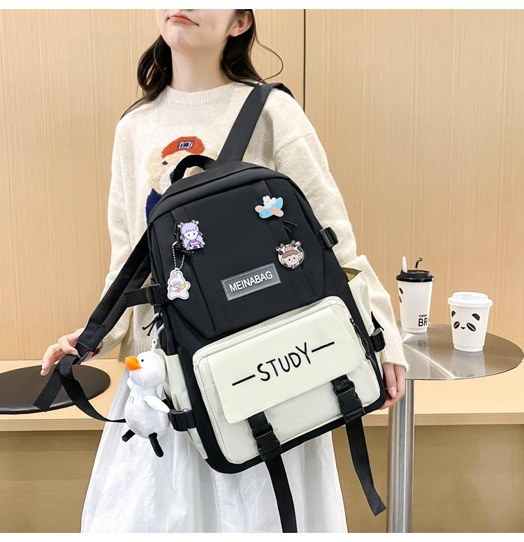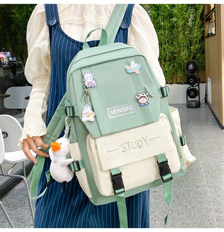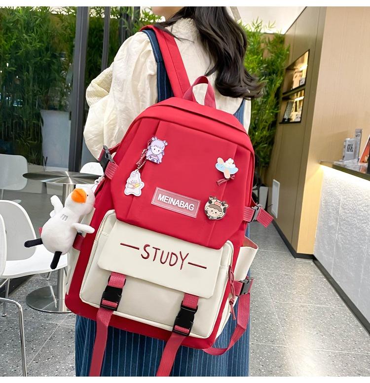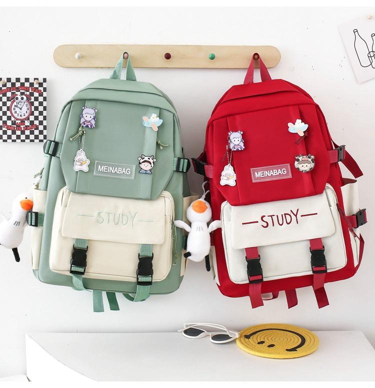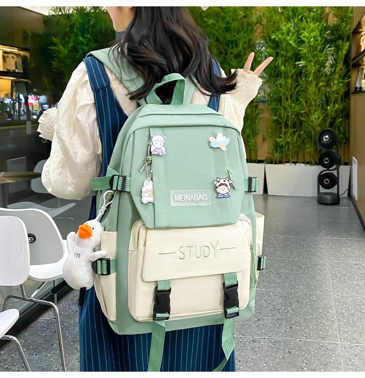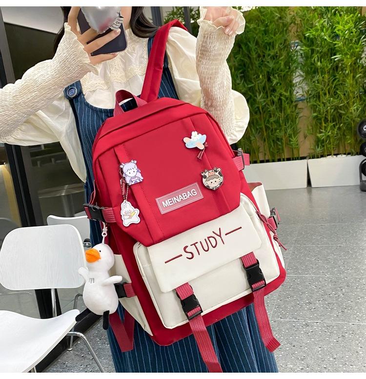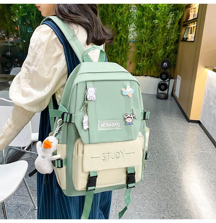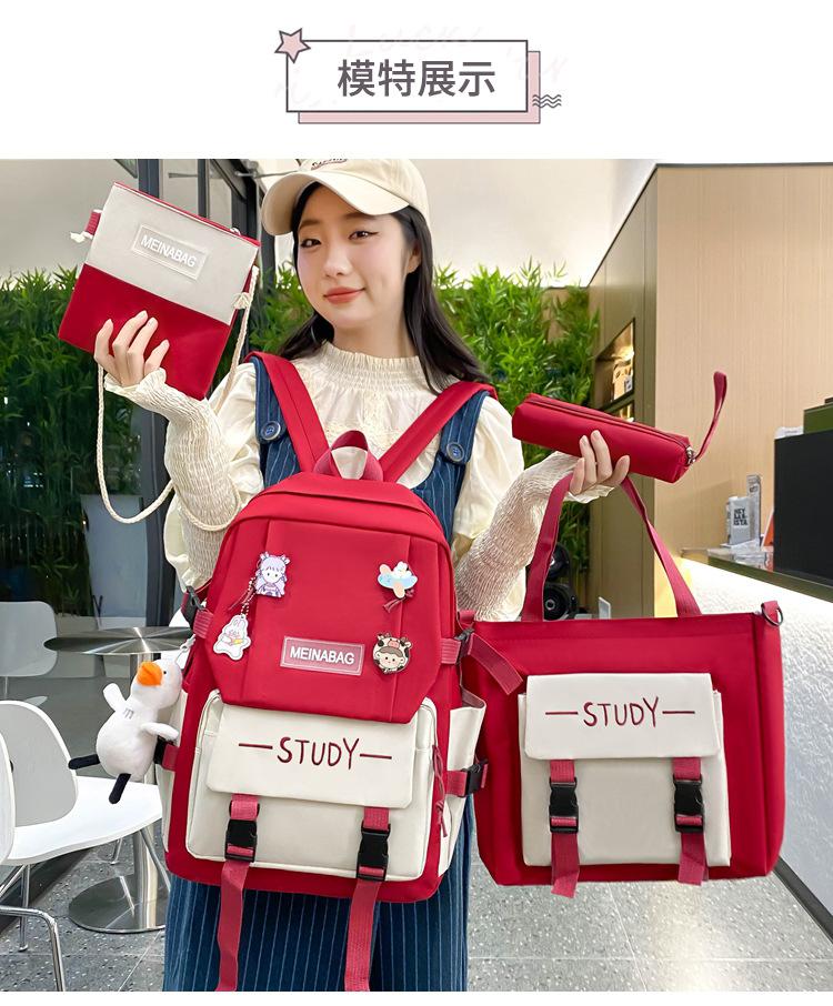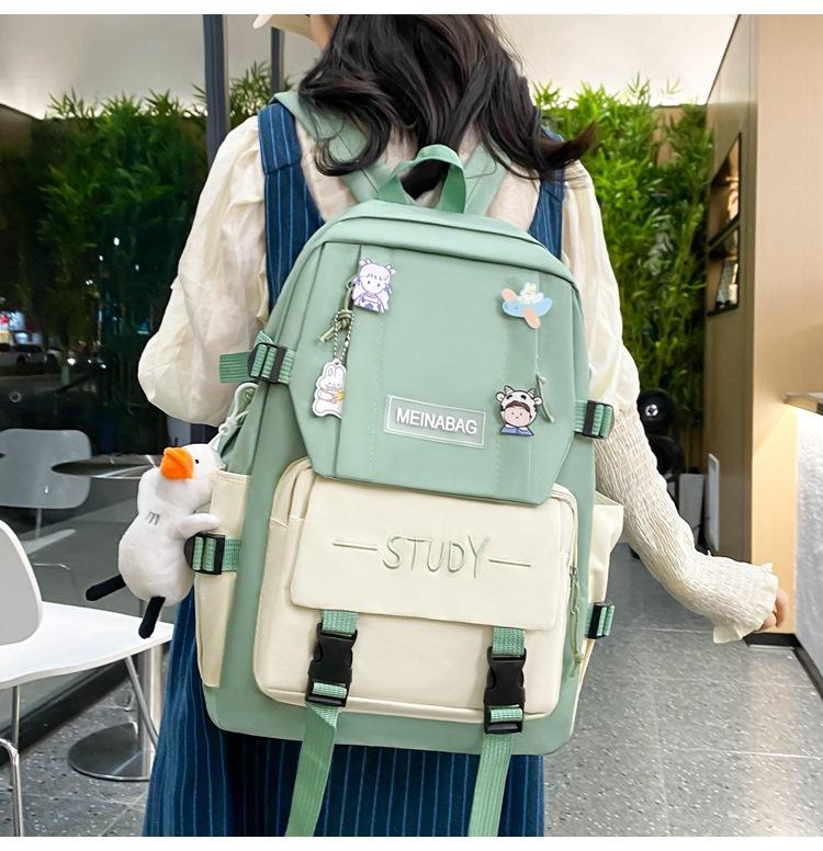 Mochila para estudiantes universitarios, nueva mochila de viaje para mujer, mochila escolar sencilla de lona para el campus de la escuela secundaria, mochila de moda personalizada de cuatro piezas