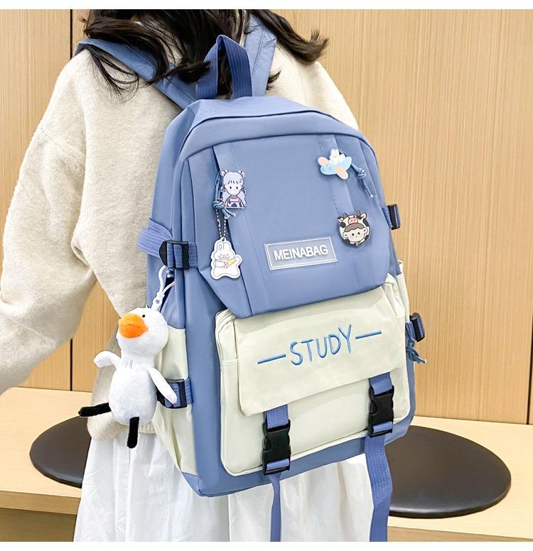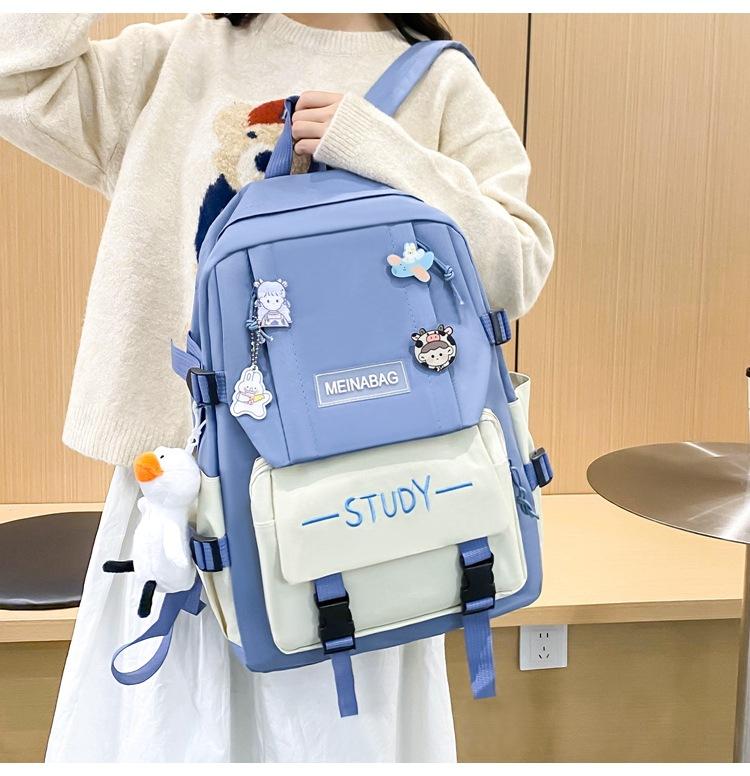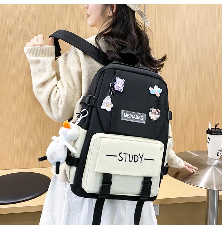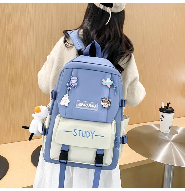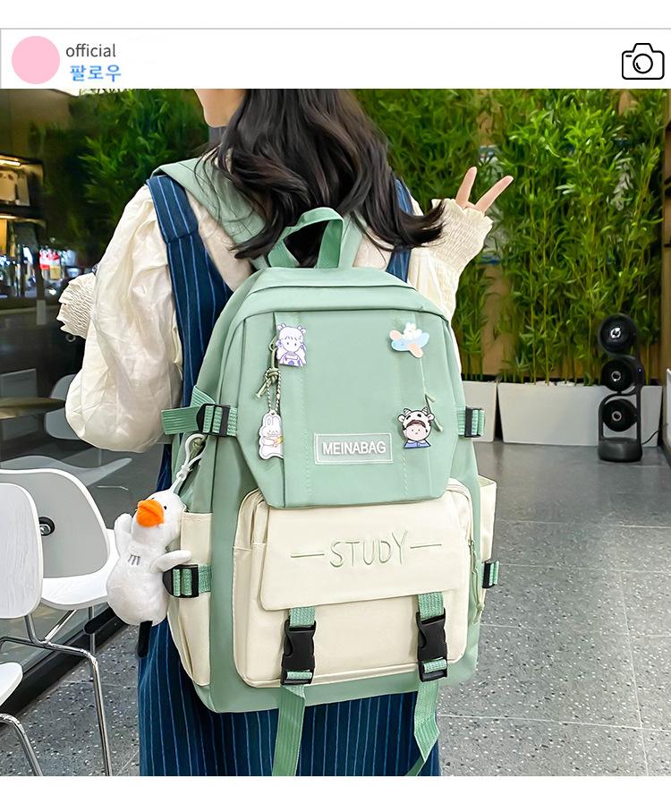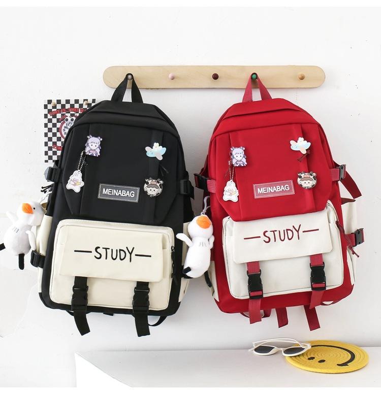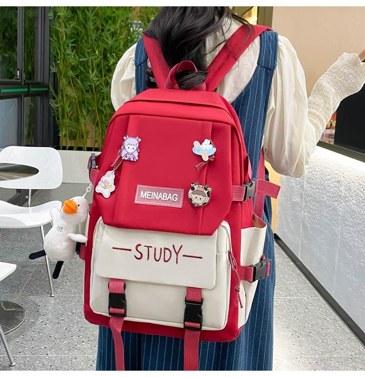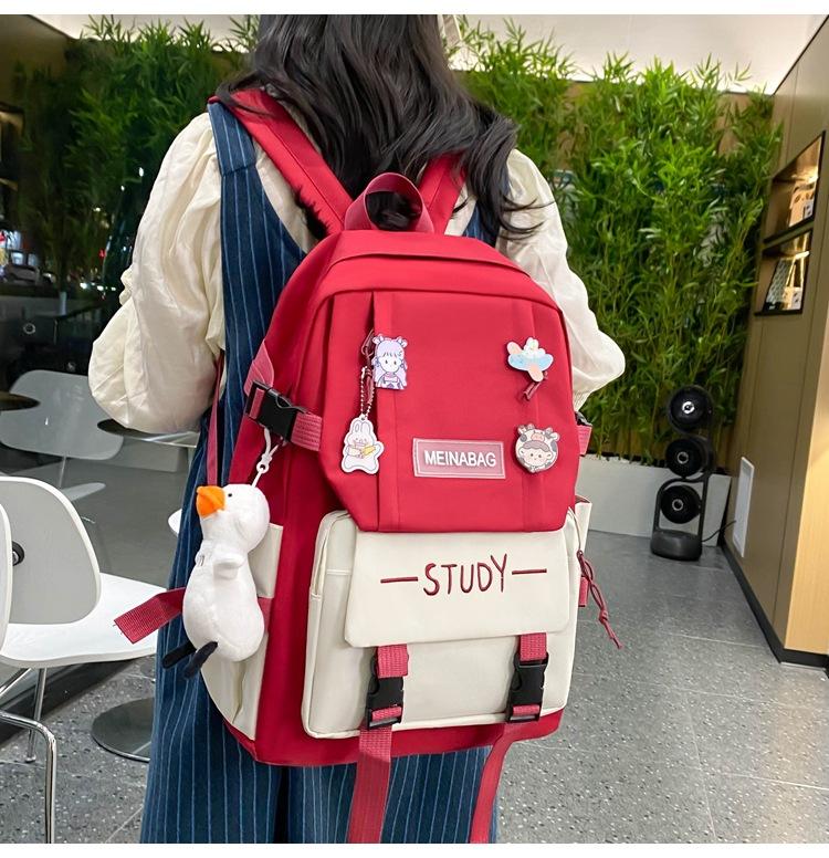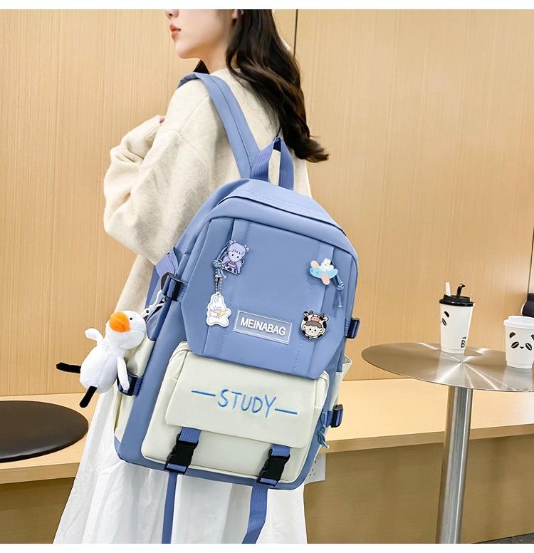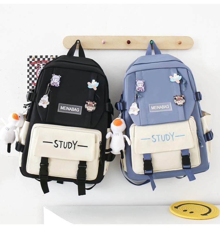Mochila para estudiantes universitarios, nueva mochila de viaje para mujer, mochila escolar sencilla de lona para el campus de la escuela secundaria, mochila de moda personalizada de cuatro piezas