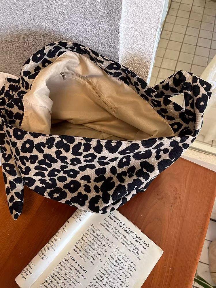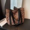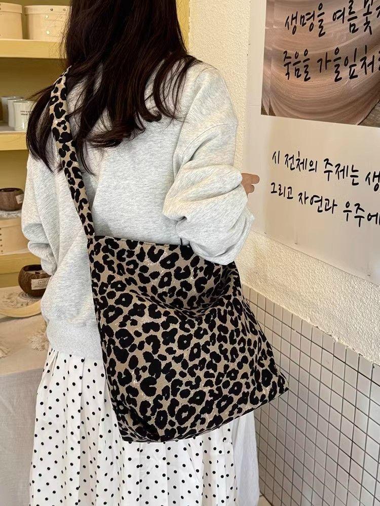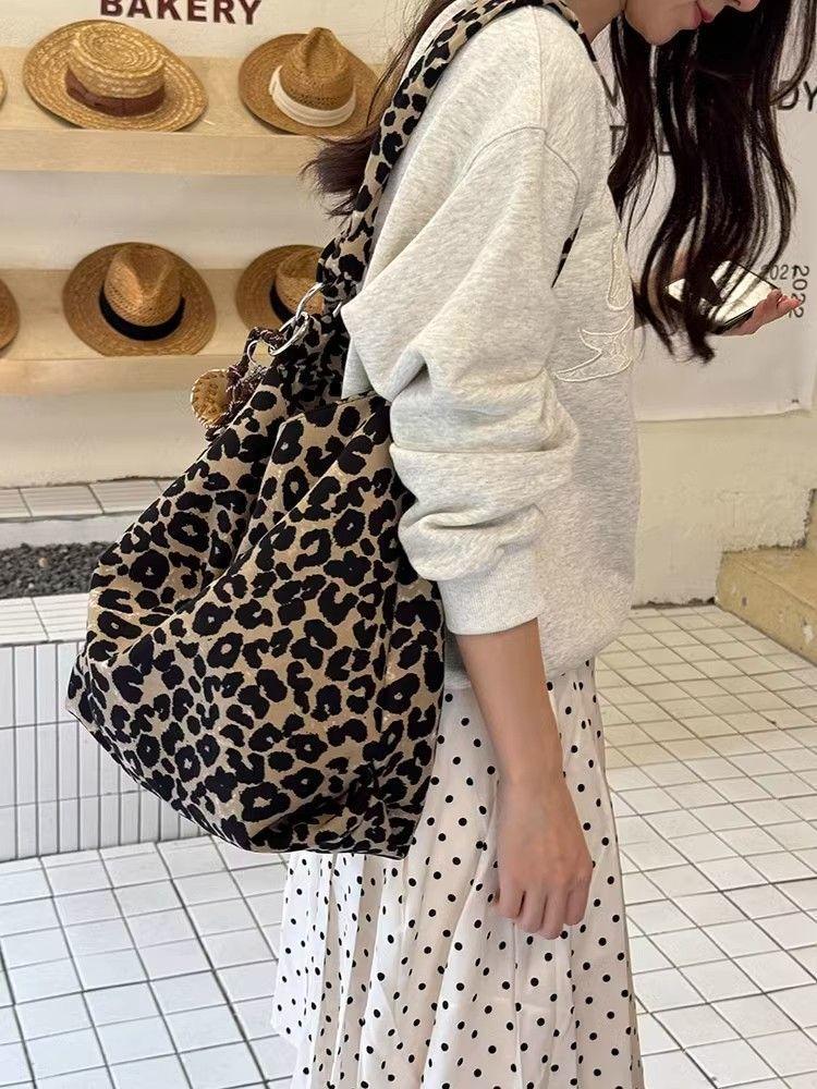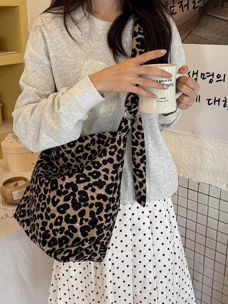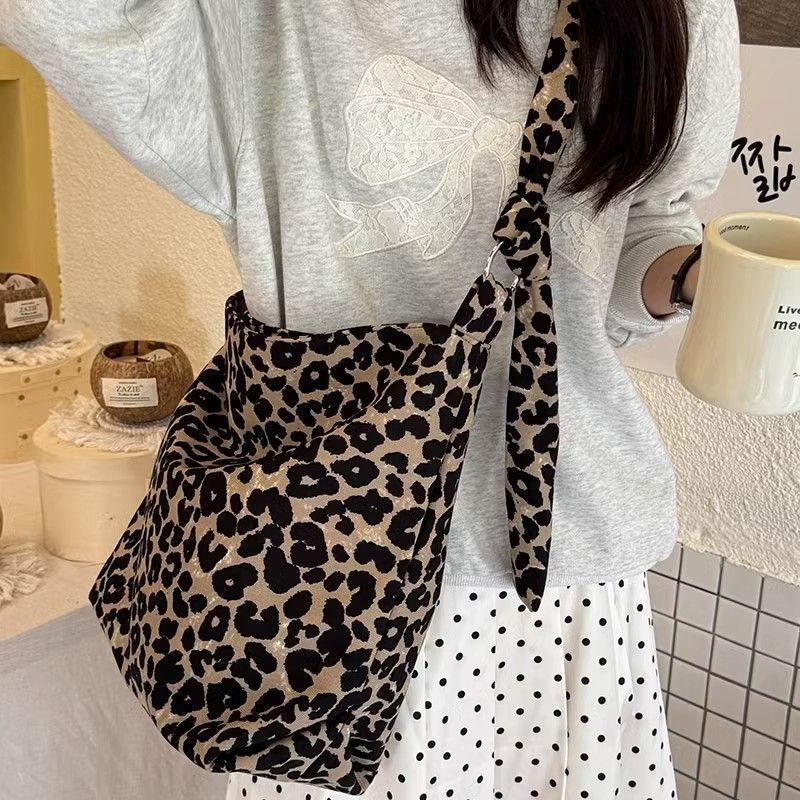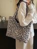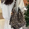 Bolso de lona con estampado de leopardo estilo coreano para mujer, bandolera de gran capacidad para otoño e invierno, ideal para estudiantes universitarios y estudiantes de clase.