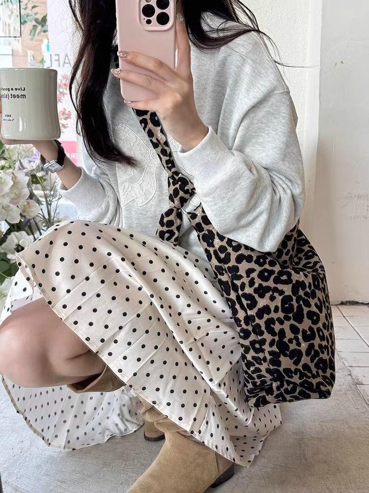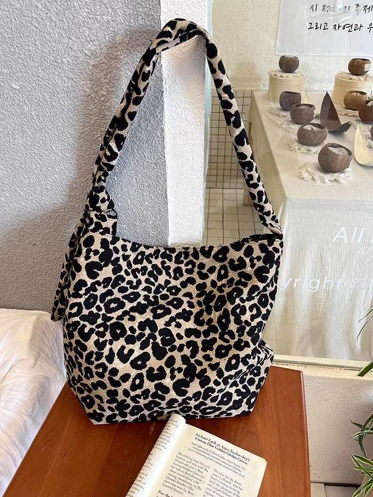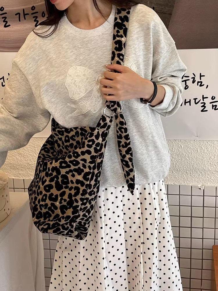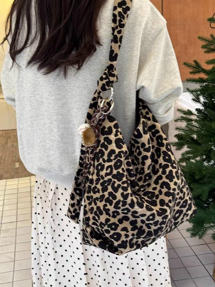 Bolso de lona con estampado de leopardo estilo coreano para mujer, bandolera de gran capacidad para otoño e invierno, ideal para estudiantes universitarios y estudiantes de clase.