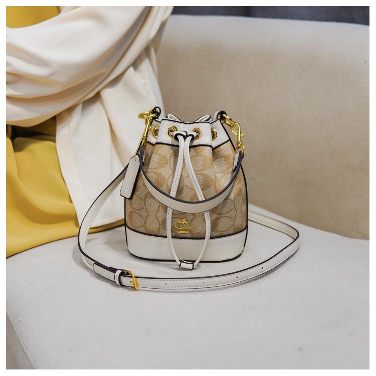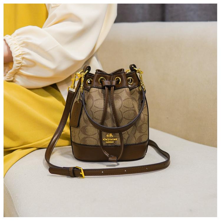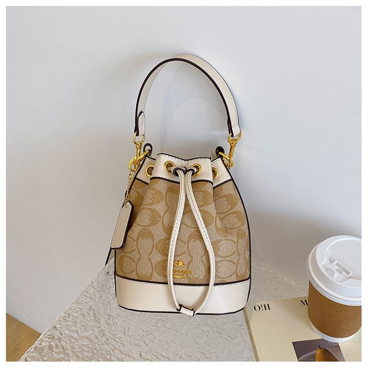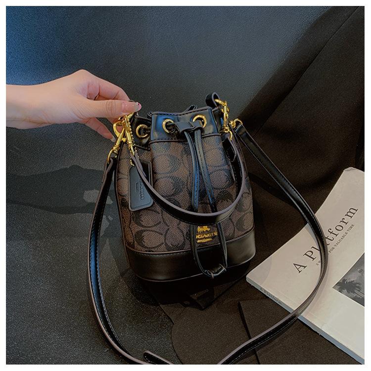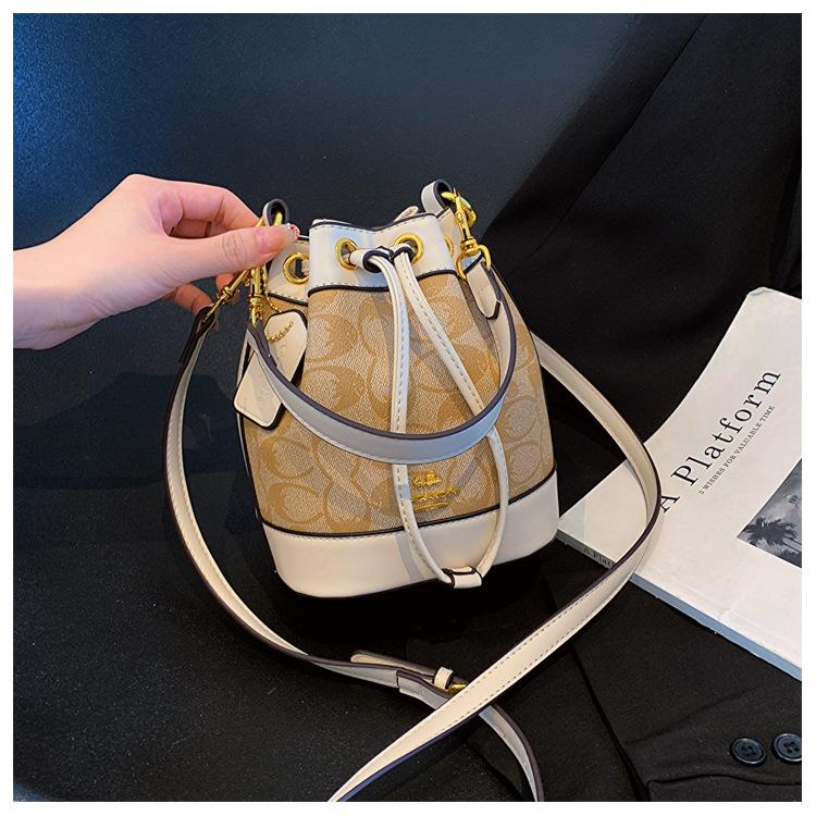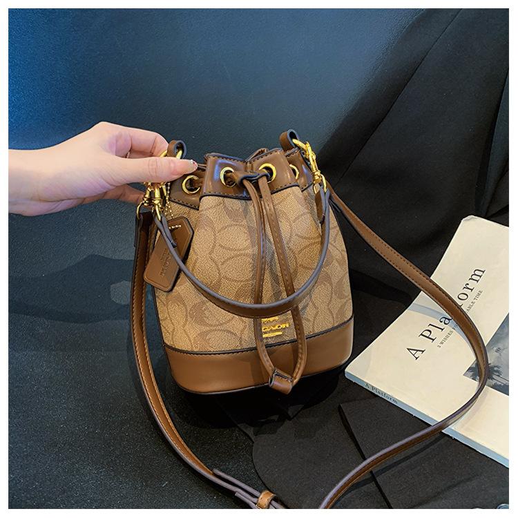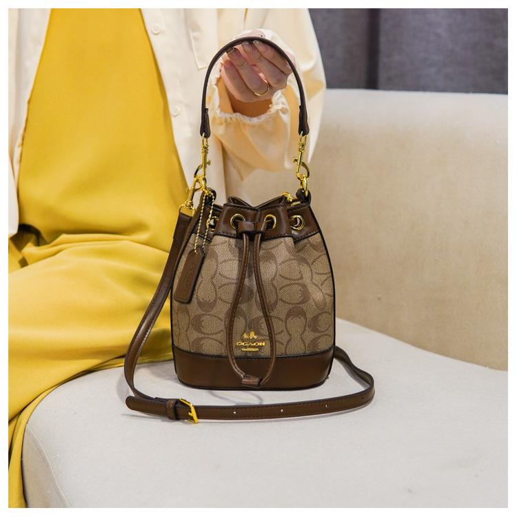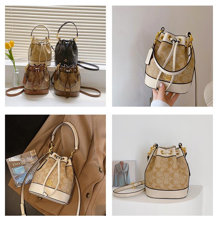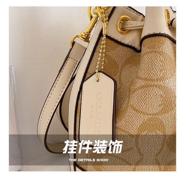 Bolsos de mujer de comercio exterior transfronterizo, nueva moda 2024, bolso de cubo con cordón, bolso bandolera de mano elegante y combinable.