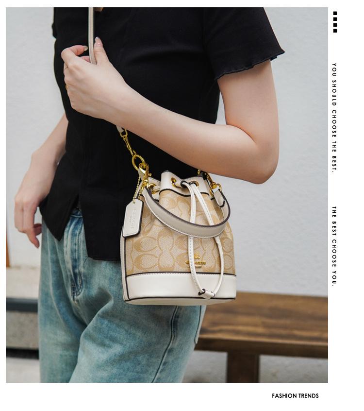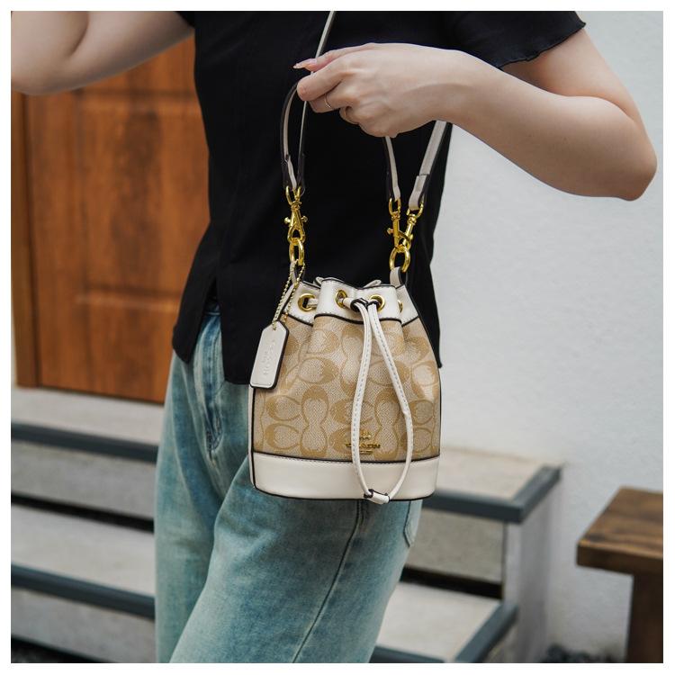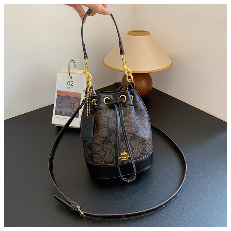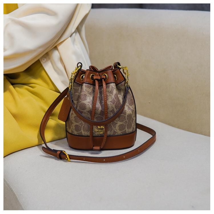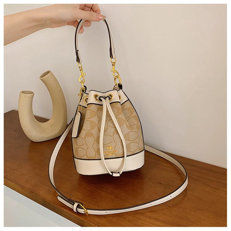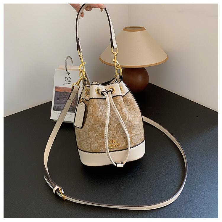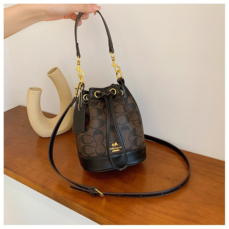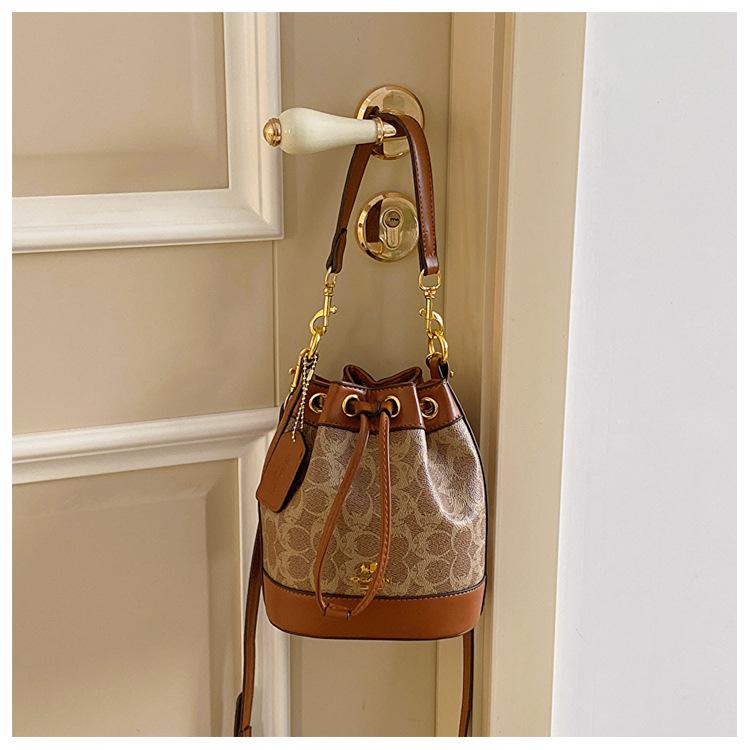 Bolsos de mujer de comercio exterior transfronterizo, nueva moda 2024, bolso de cubo con cordón, bolso bandolera de mano elegante y combinable.