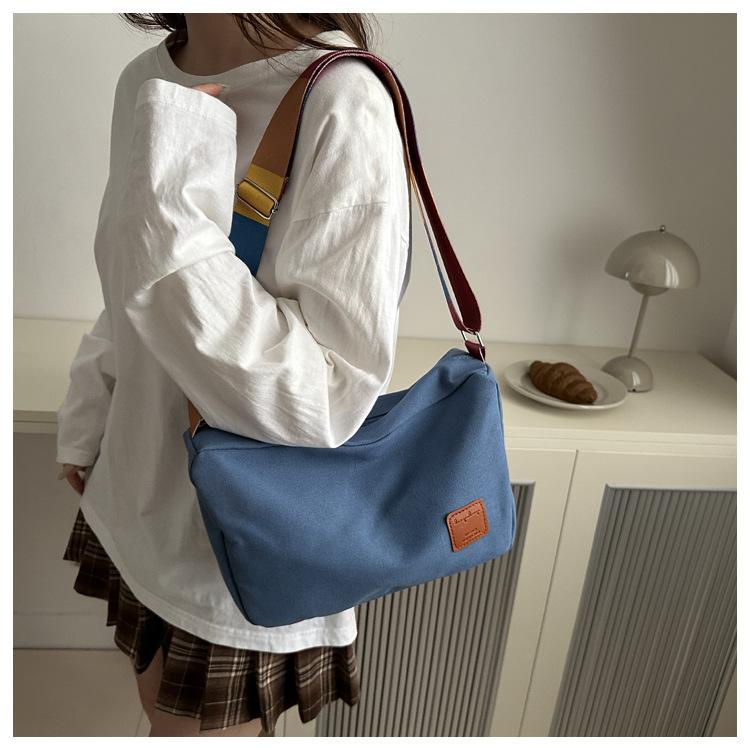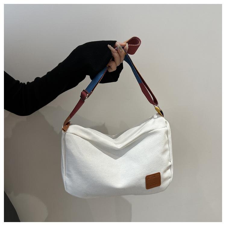Bolso retro de gran capacidad para mujer, nuevo bolso de lona sencillo y moderno de 2024, bolso bandolera de hombro para estudiantes.