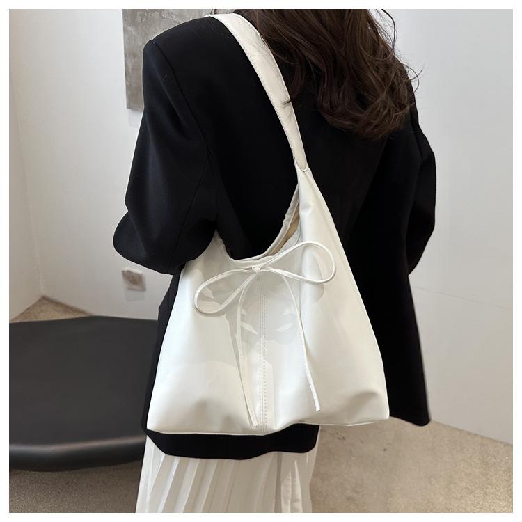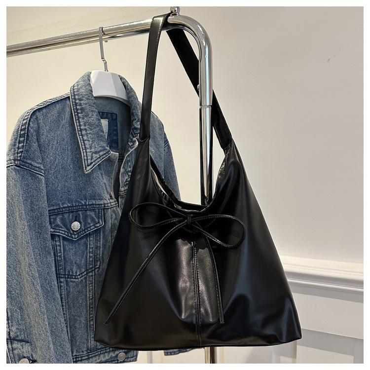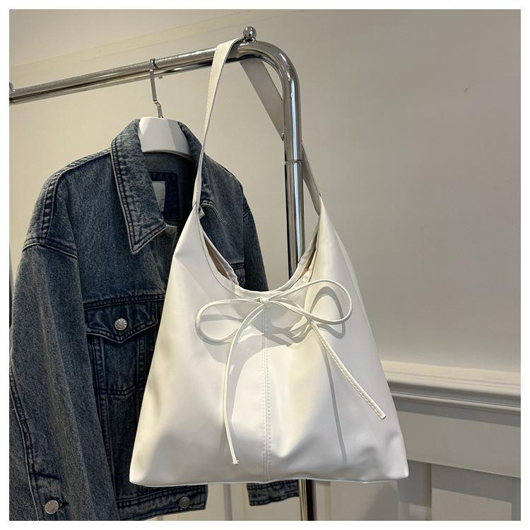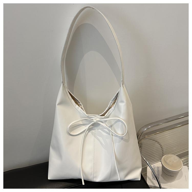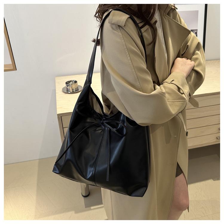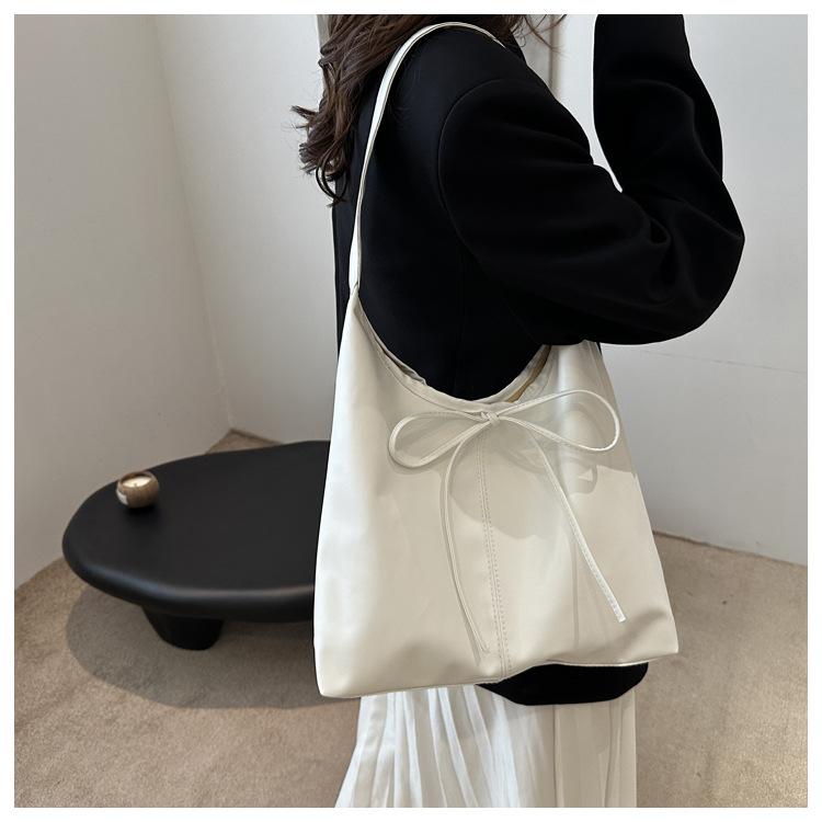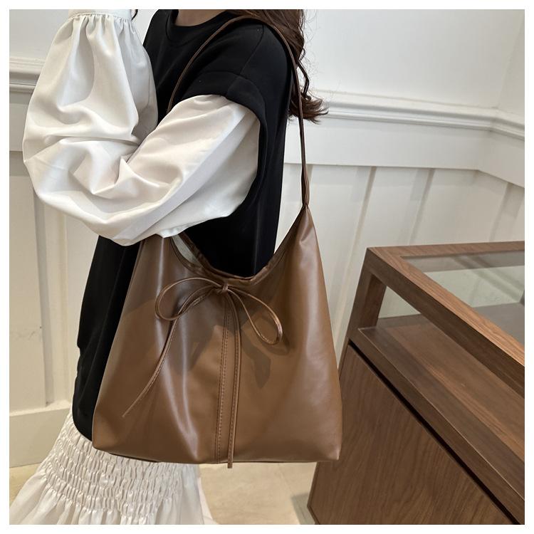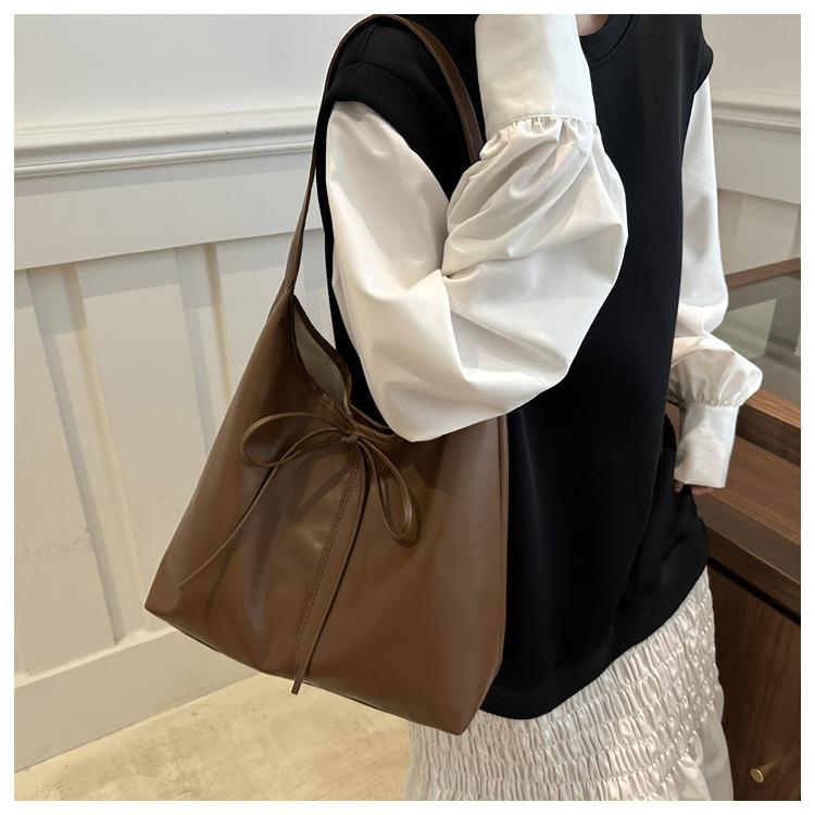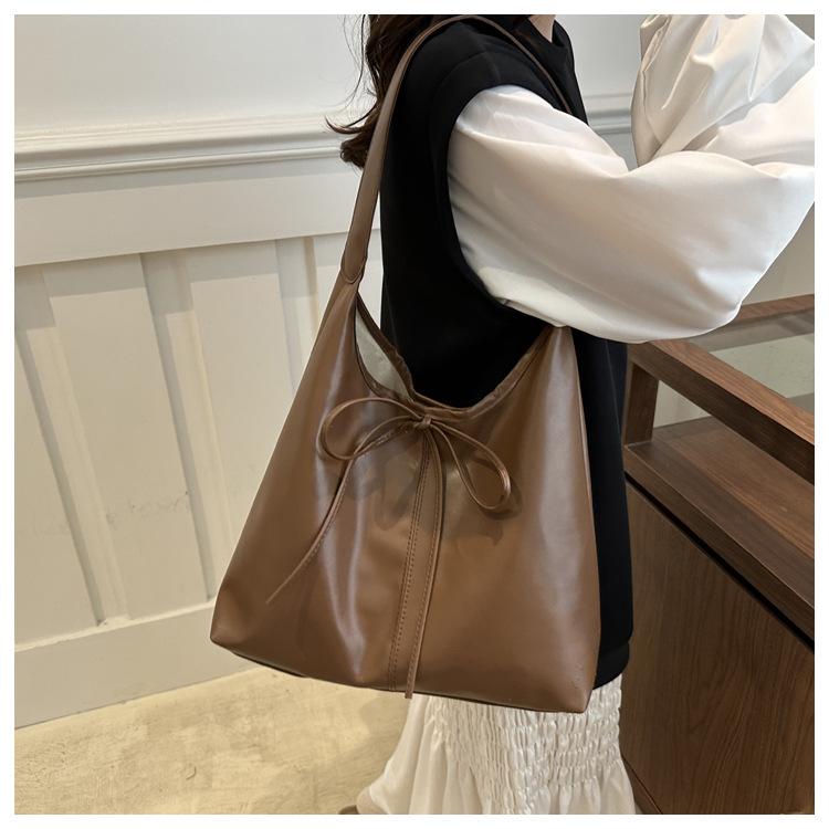 Casual Retro Gran Capacidad 2024 Lazo Color Sólido Nuevo Simple Compras Moda Clase Viajero Hombro Tote Bag
