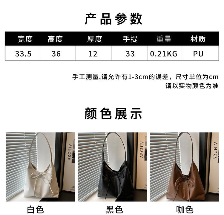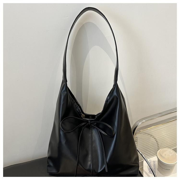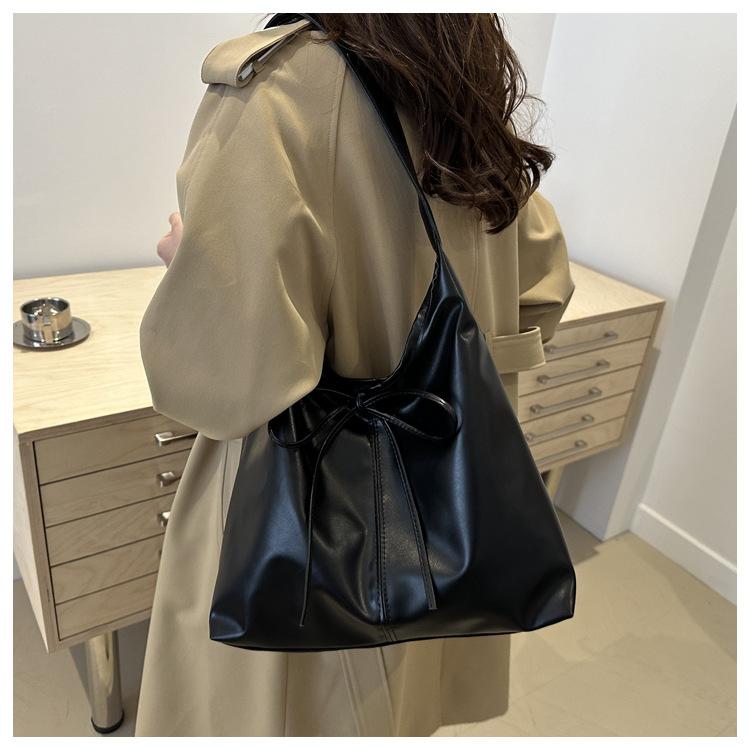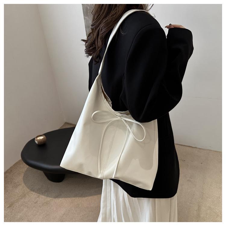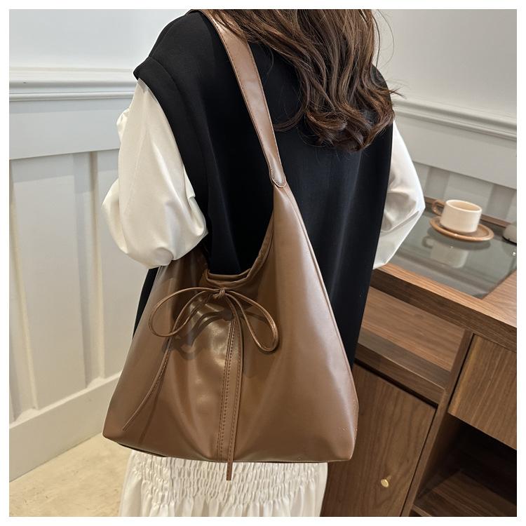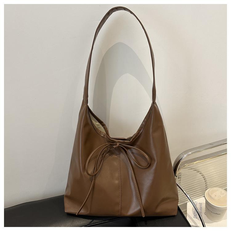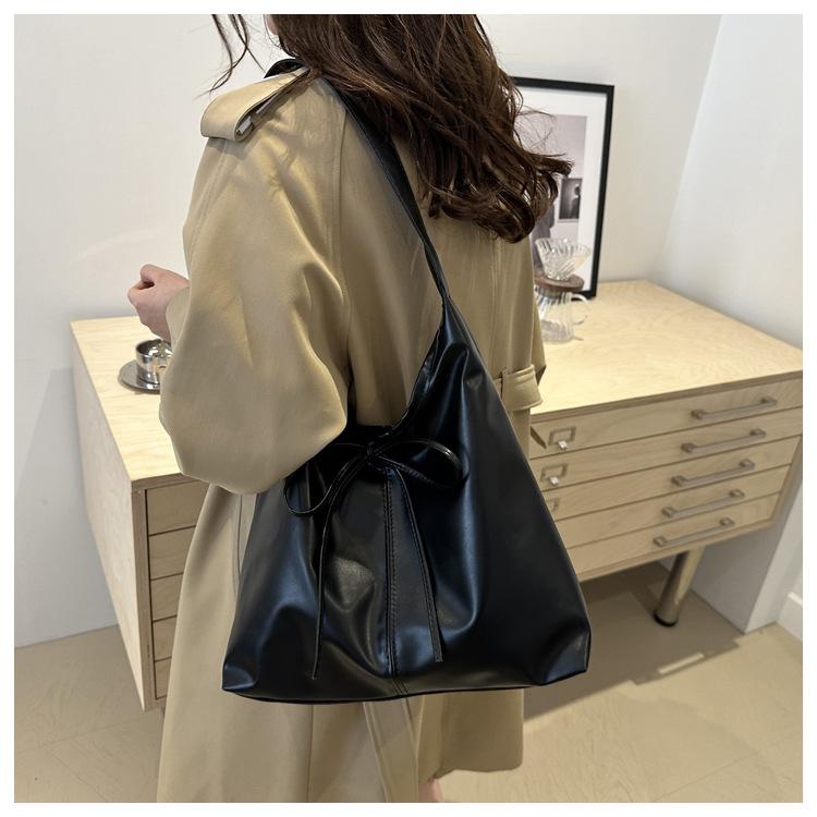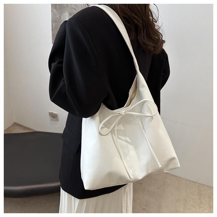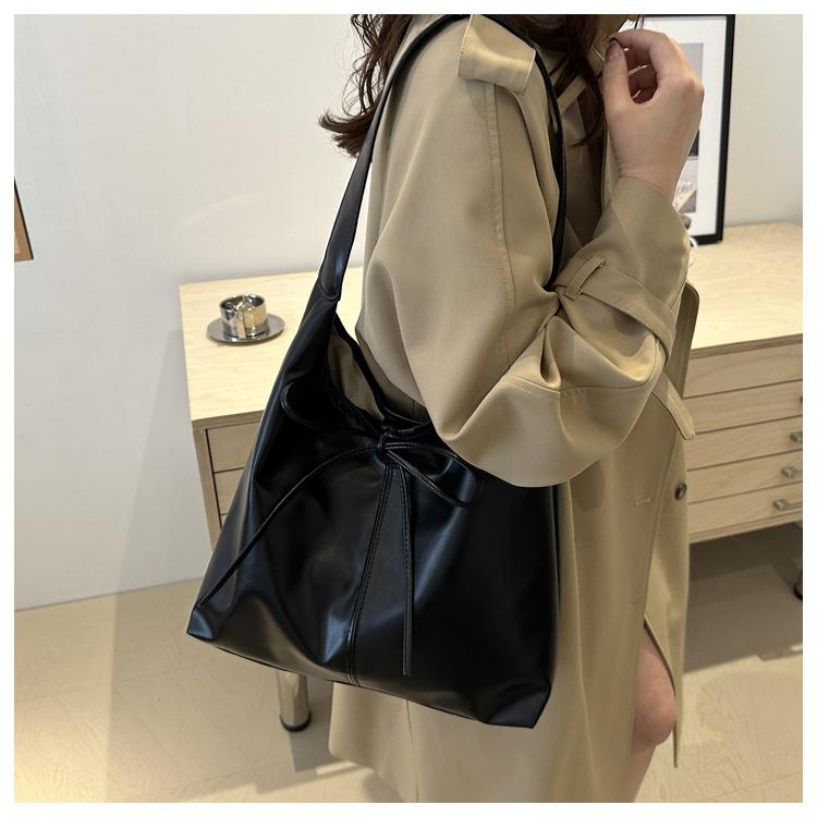 Casual Retro Gran Capacidad 2024 Lazo Color Sólido Nuevo Simple Compras Moda Clase Viajero Hombro Tote Bag