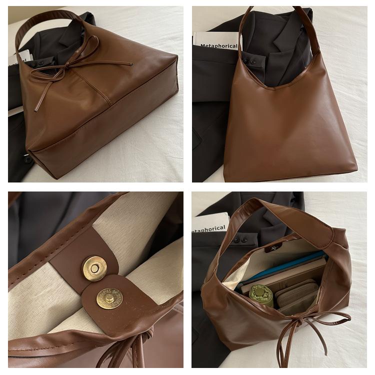 Compra Casual Retro Gran Capacidad 2024 Lazo Color Sólido Nuevo Simple Compras Moda Clase Viajero Hombro Tote Bag al por mayor en Joom.pro