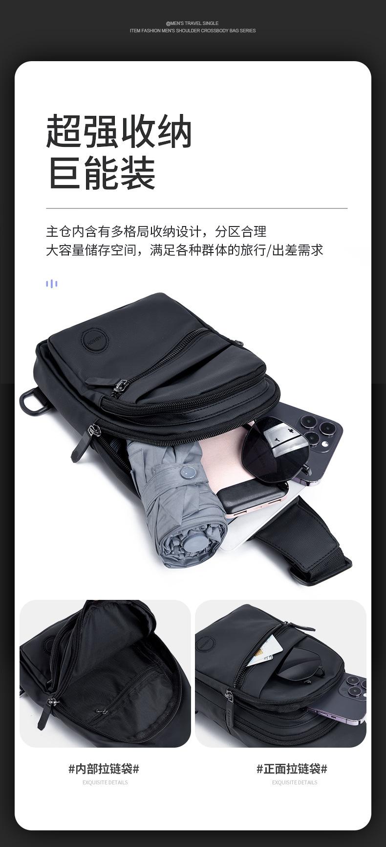 Bolso de pecho de nailon impermeable para hombre, sencillo y moderno, de gran capacidad, multicapa, informal, para hombro