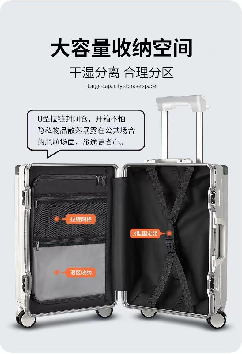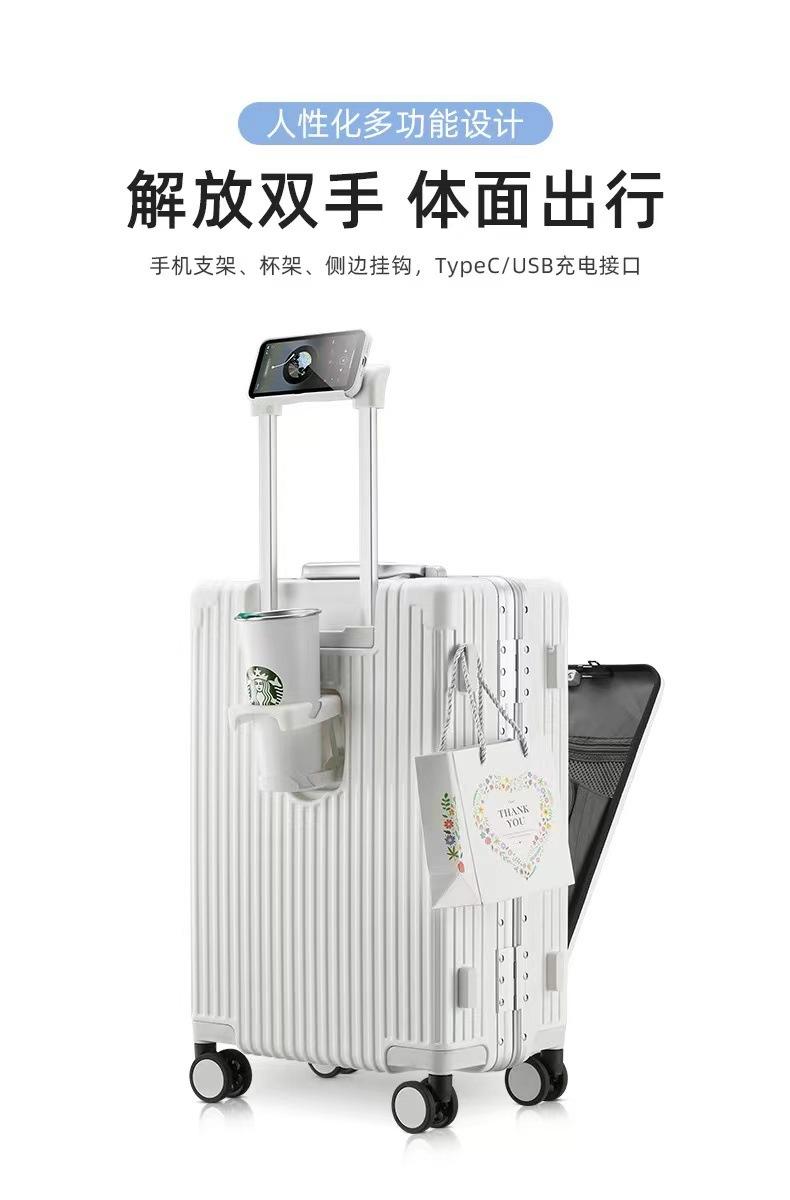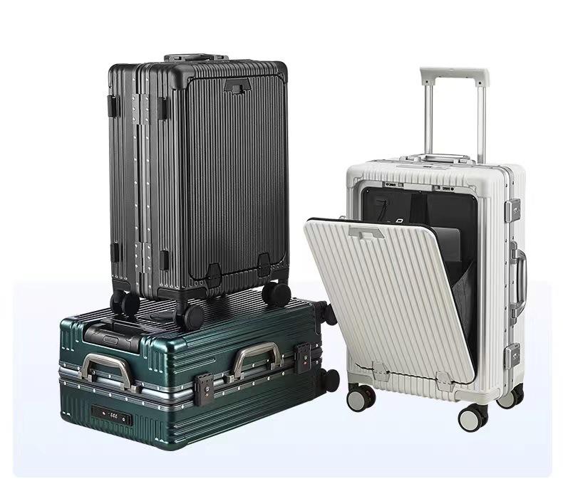 Equipaje de negocios multifunción, caja de embarque de 20 pulgadas, maleta con marco de aluminio de 24 pulgadas, apertura frontal, maleta con ruedas para hombres y mujeres