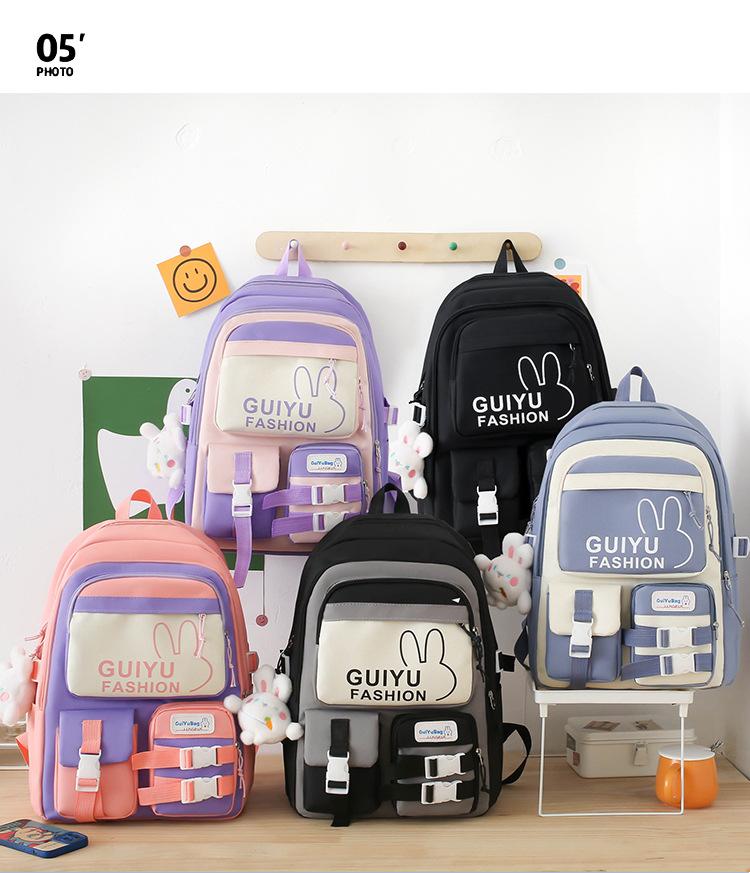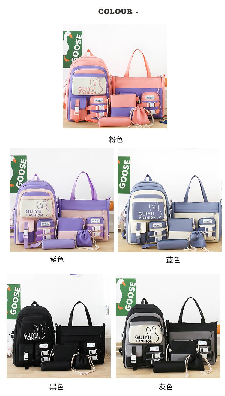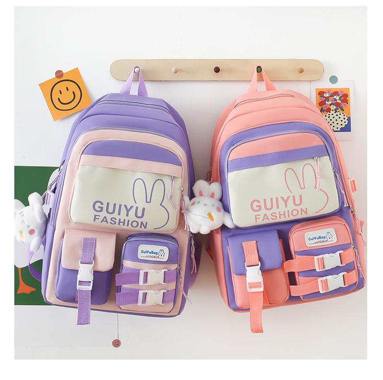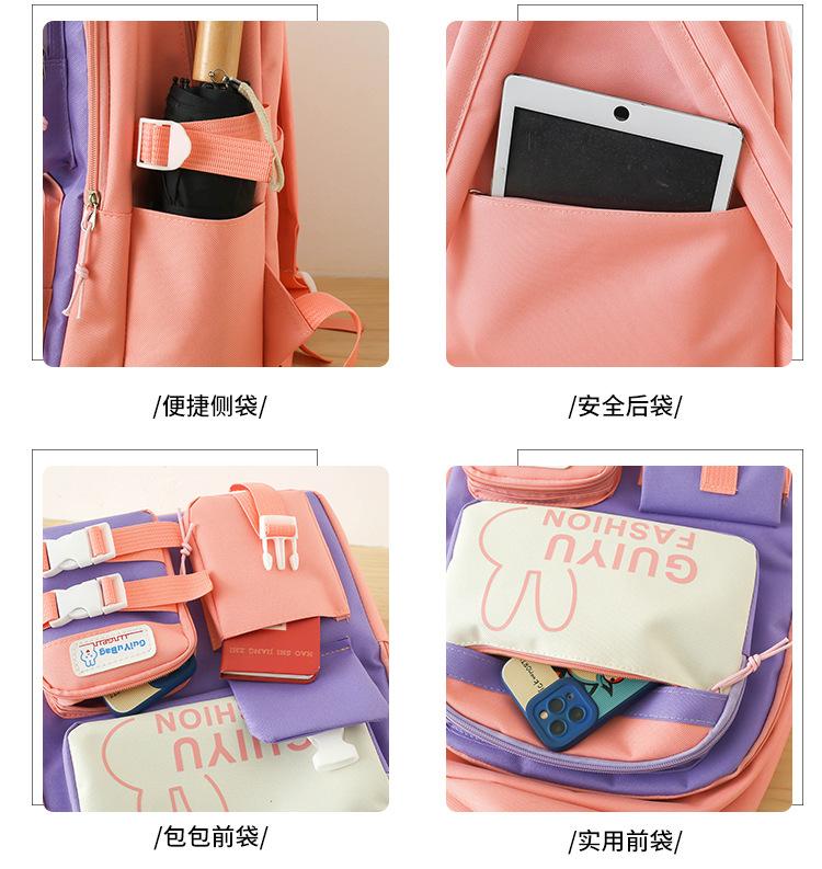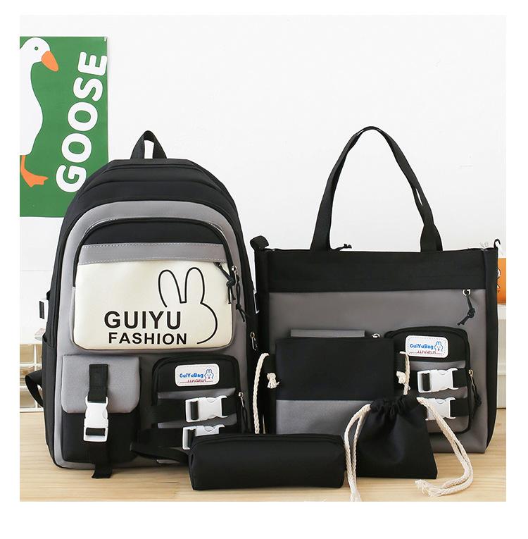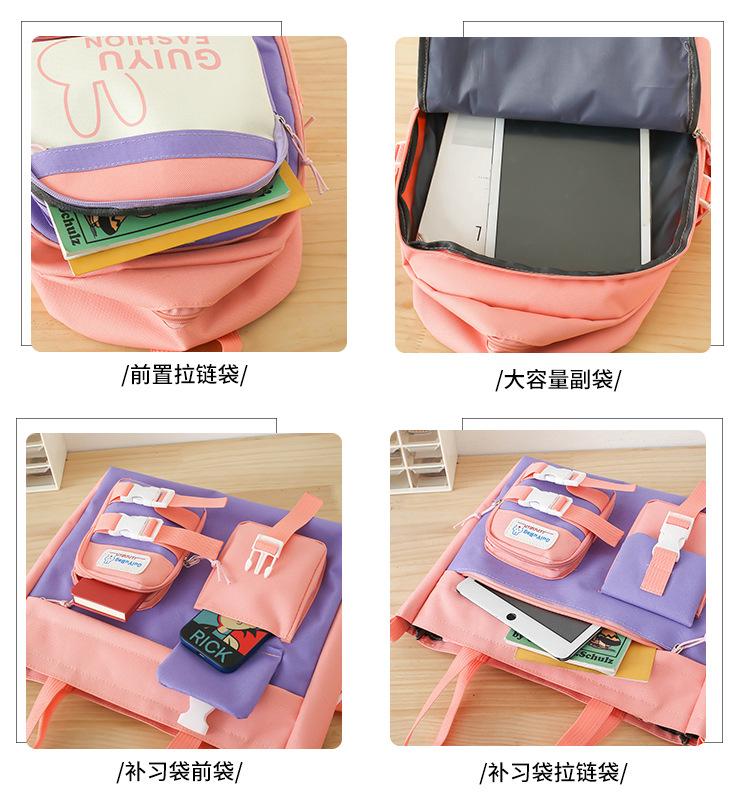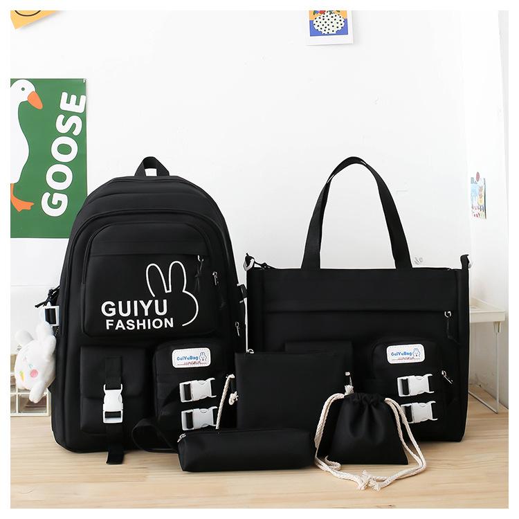 Mochila Estilo Coreano Nuevo 2025 Dibujo Animado Lindo Ligera Mochila Escolar de Primaria Mochila de Campus de Cinco Piezas para Secundaria