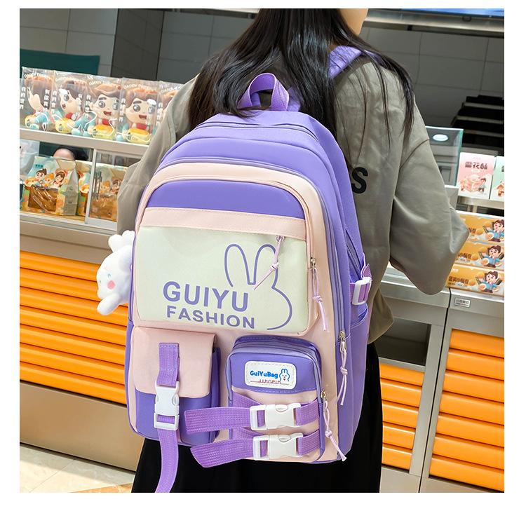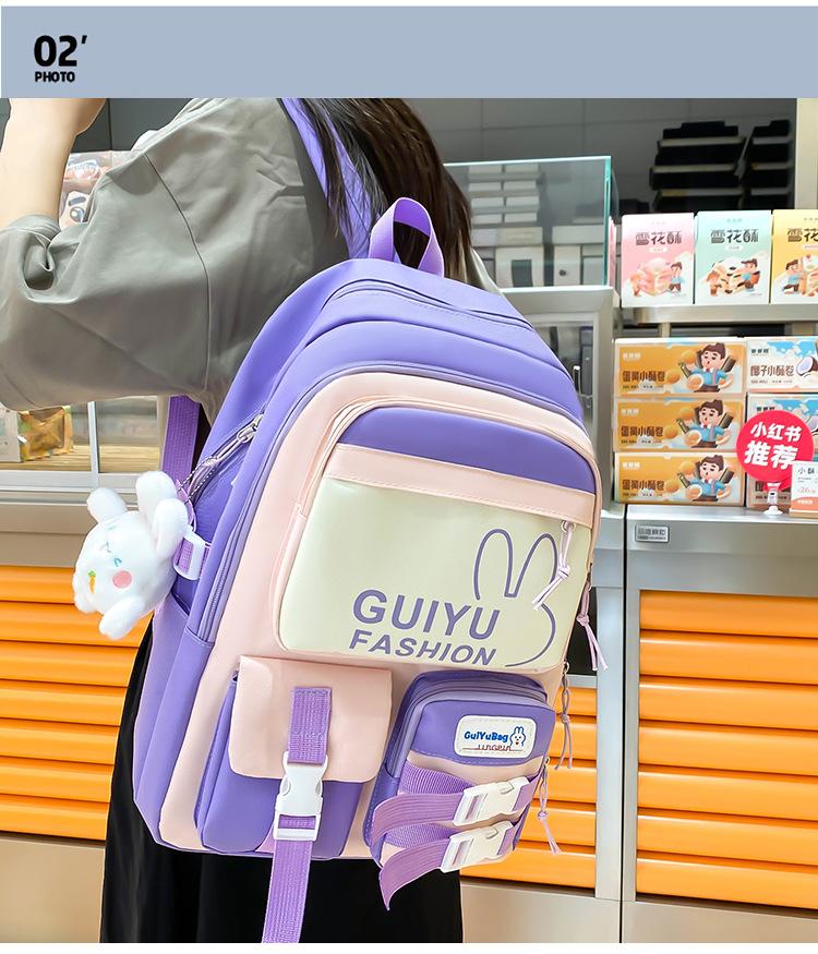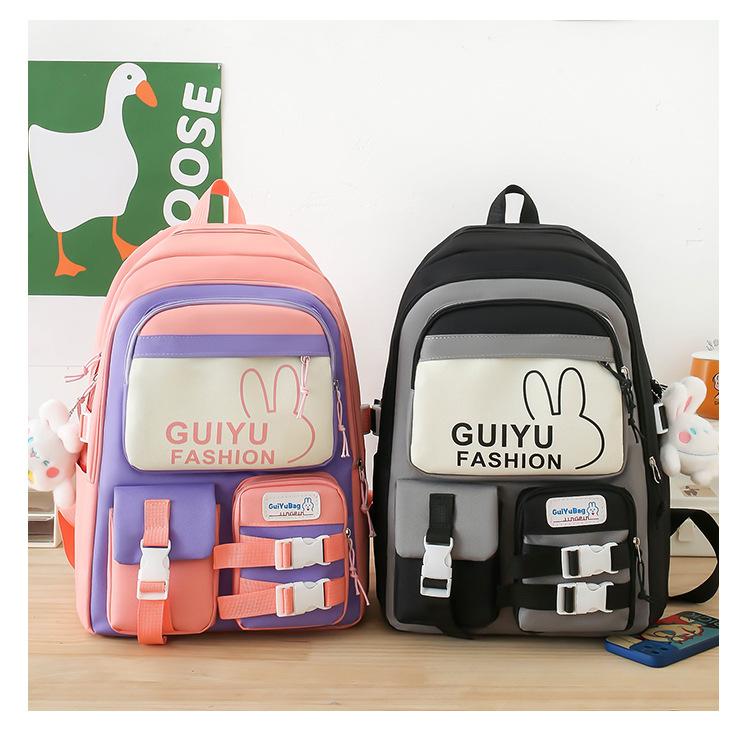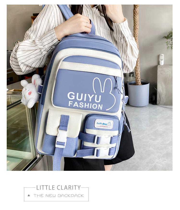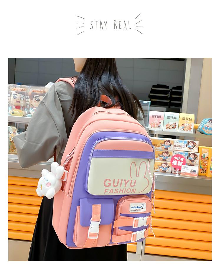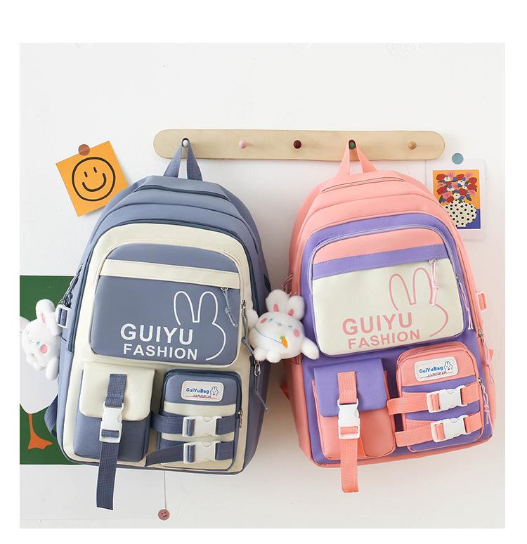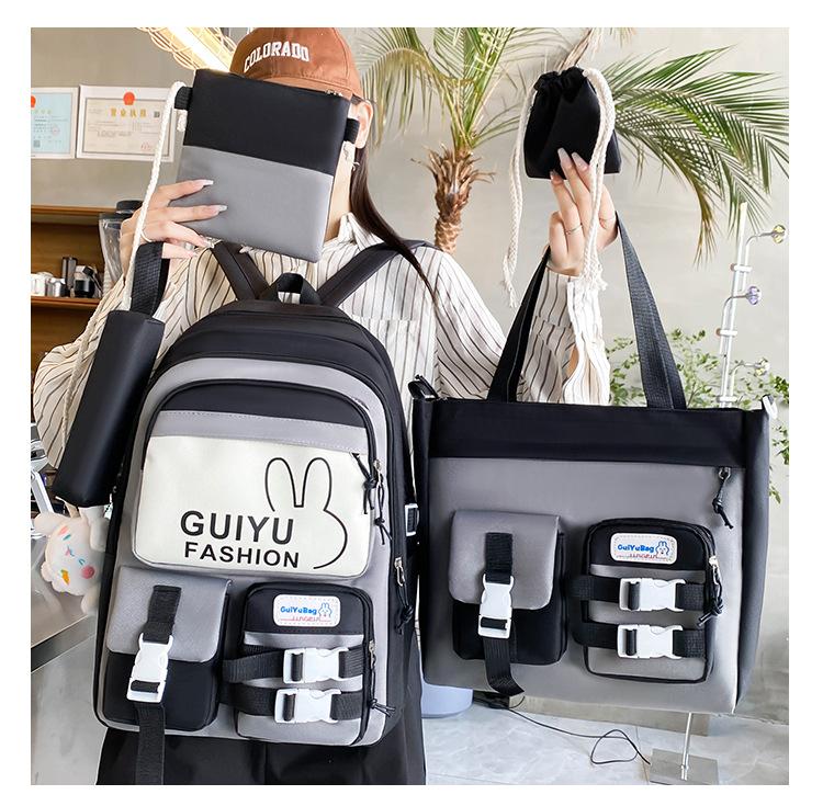 Mochila Estilo Coreano Nuevo 2025 Dibujo Animado Lindo Ligera Mochila Escolar de Primaria Mochila de Campus de Cinco Piezas para Secundaria