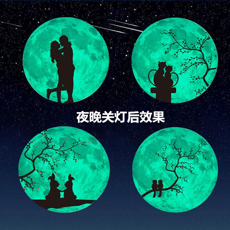 Pegatinas luminosas de luna fluorescente para decorar la pared de la habitación del hogar. Pegatinas luminosas con diseño de corazón para decorar la pared del dormitorio de una niña.