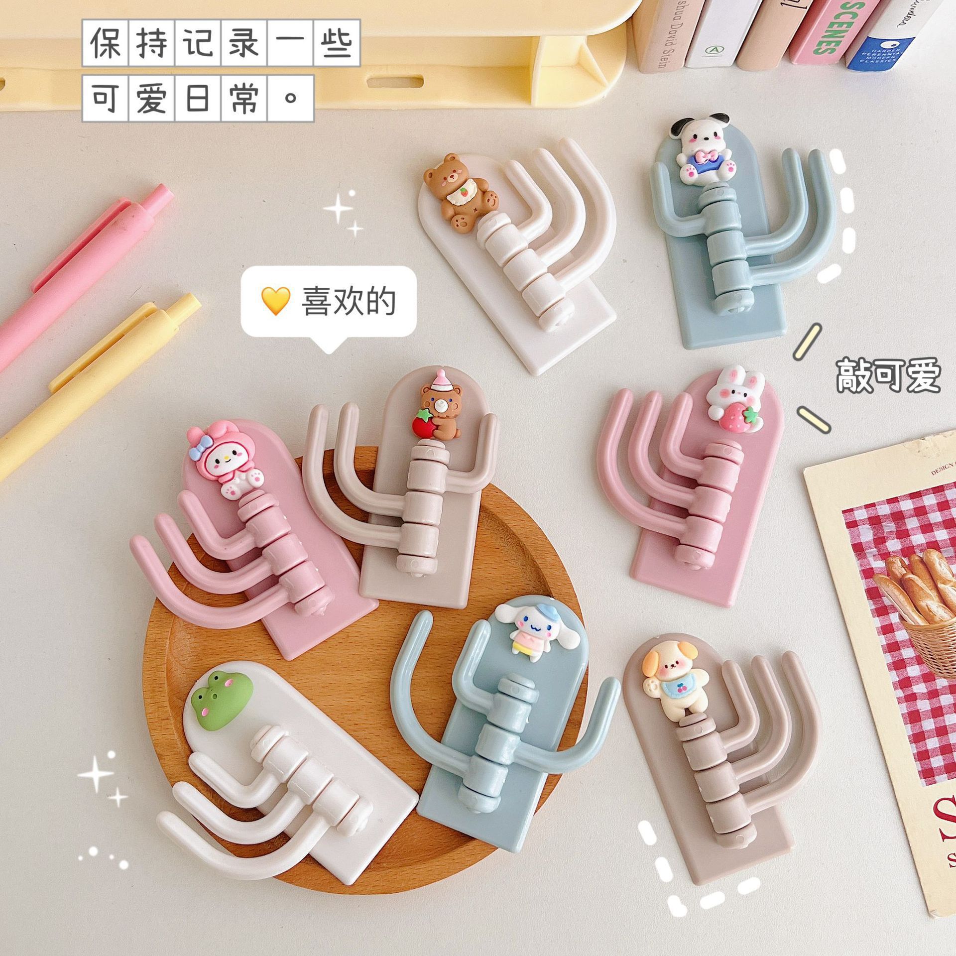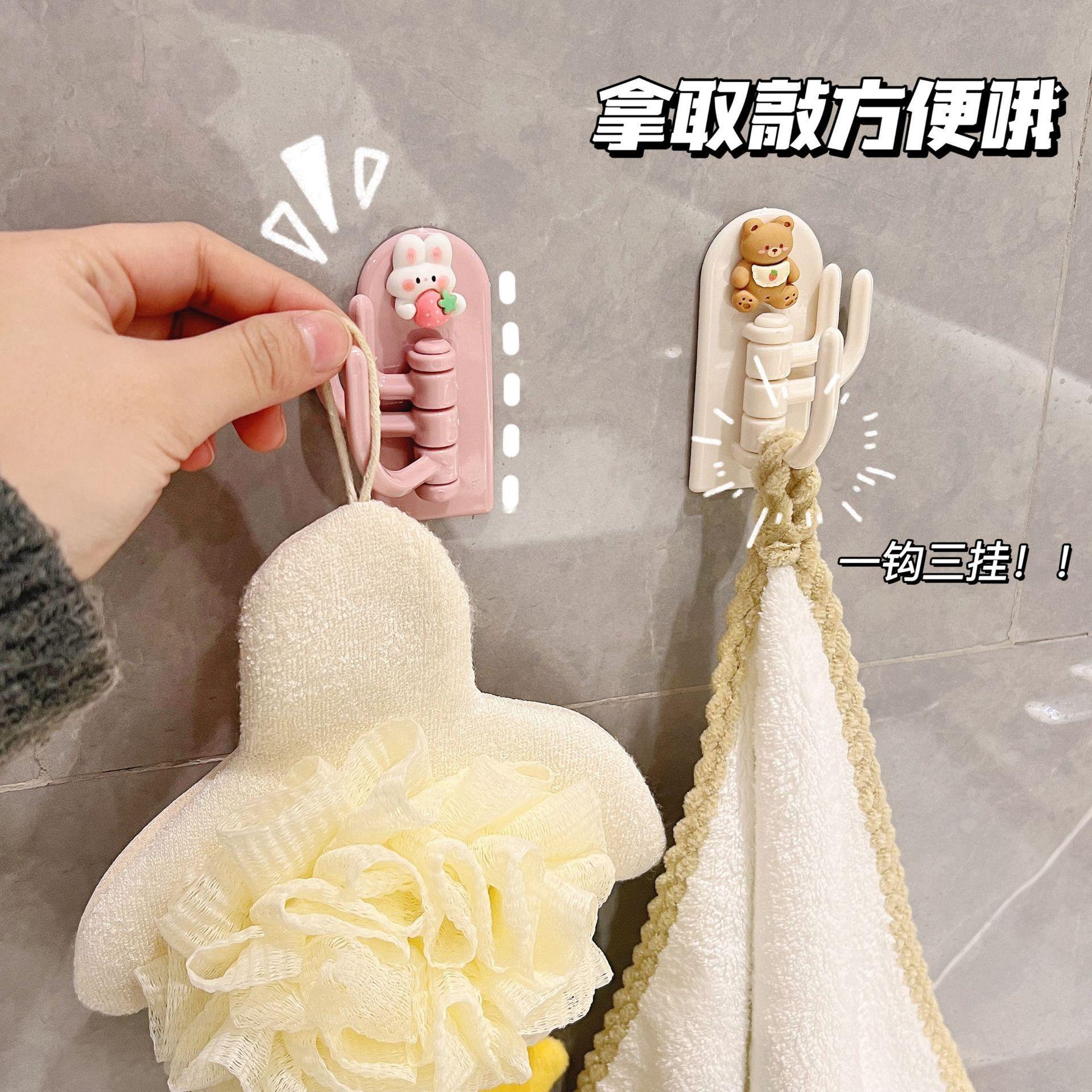 Gancho adhesivo sin costuras para dormitorio, creativo, de dibujos animados, con tres ganchos, para colgar en la pared o en la puerta, para estudiantes