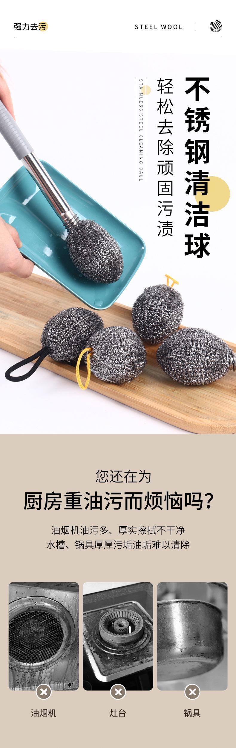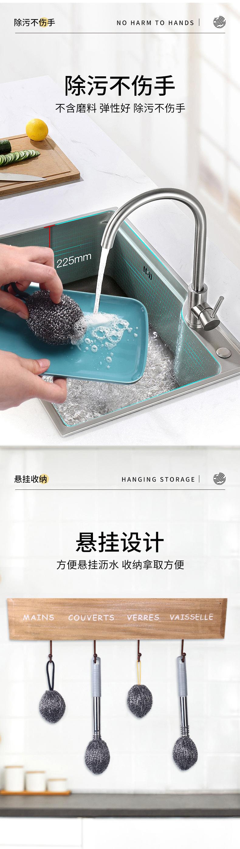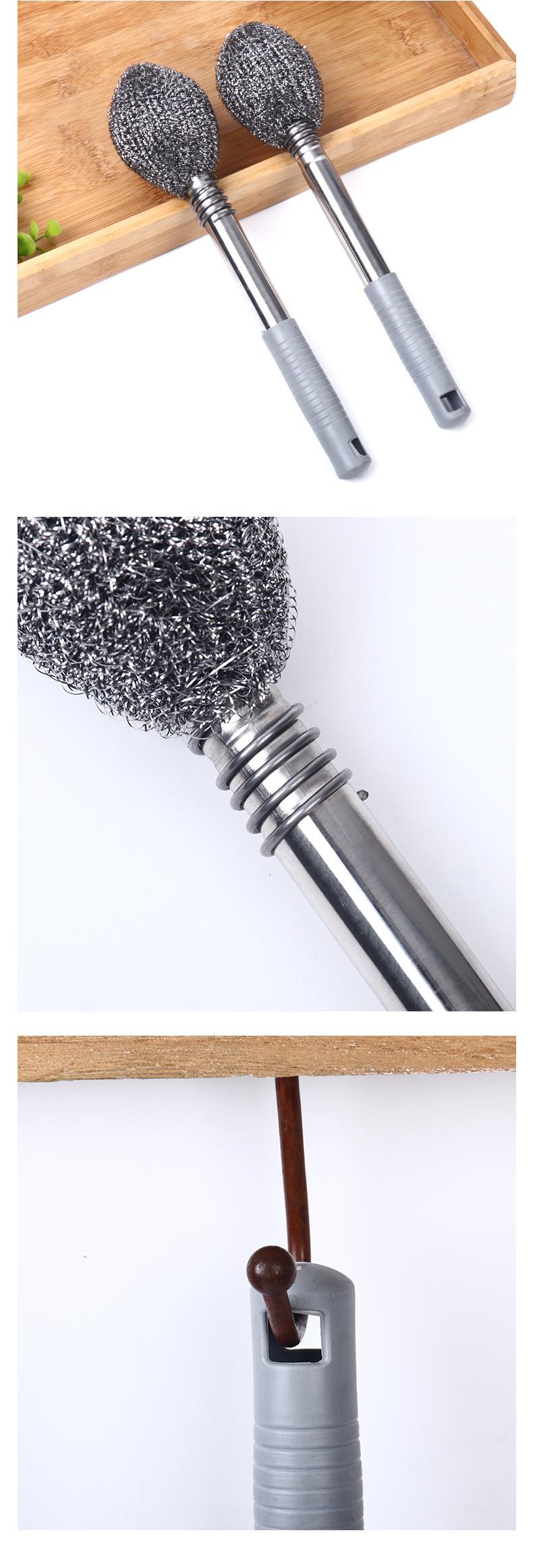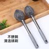 Cepillo de bola de acero con mango varilla larga para lavar ollas limpieza de acero inoxidable cocina no lastima manos cepillo botella lata cepillo olla