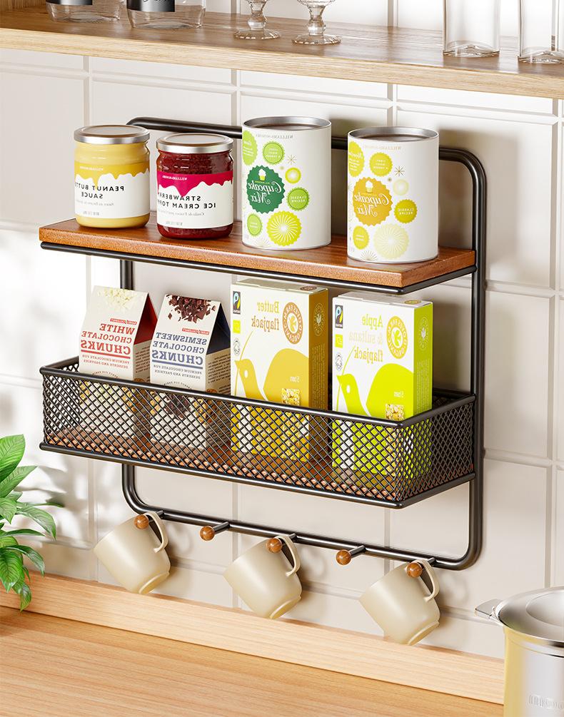 Estante de cocina montado en la pared, estante de almacenamiento de condimentos sin perforaciones, estante de condimentos multifuncional montado en la pared para sal y condimentos