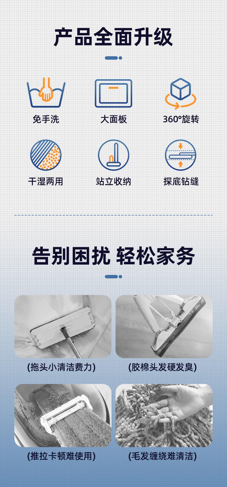 Fregona giratoria de manos libres, fregona doméstica perezosa, fregona cuadrada, fregona húmeda y seca de doble uso, fregona de limpieza nueva al por mayor