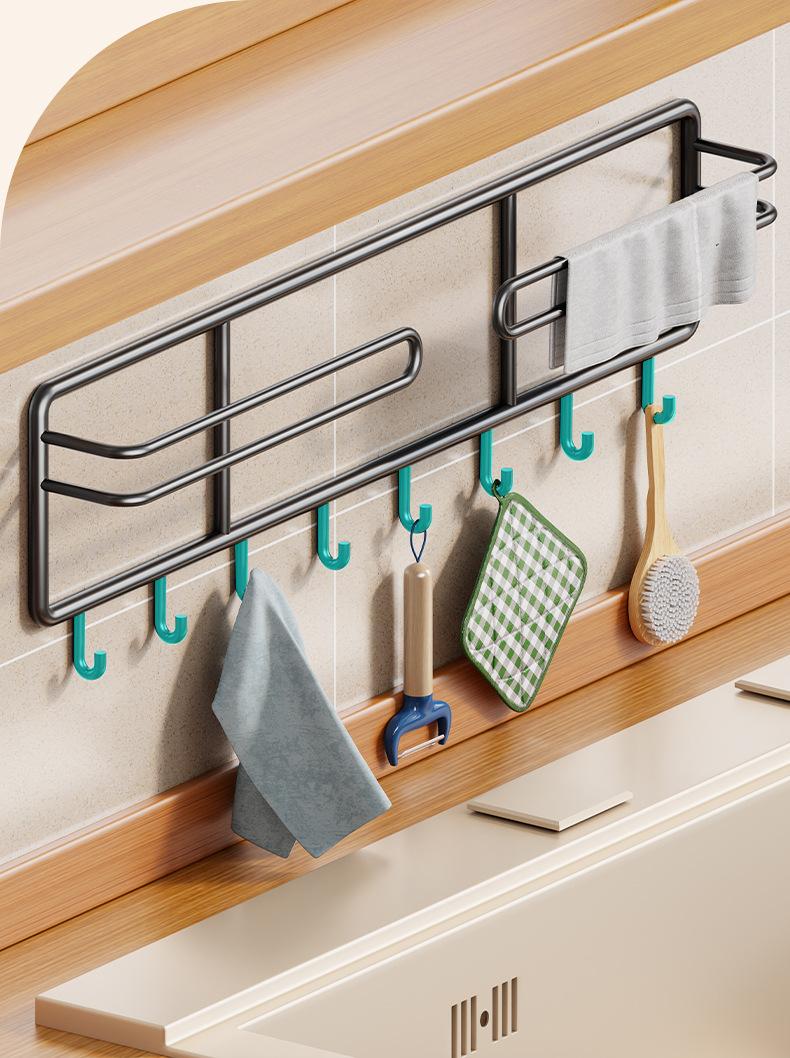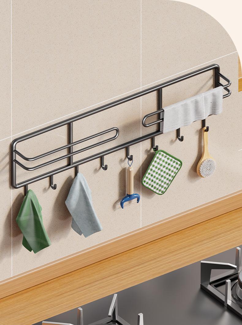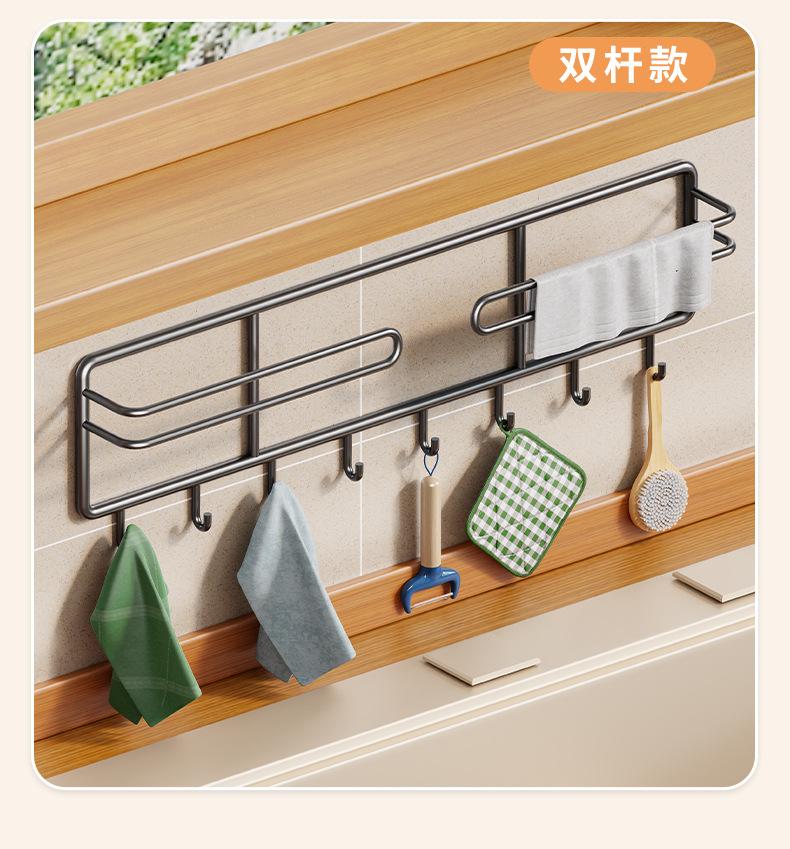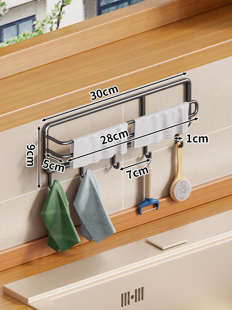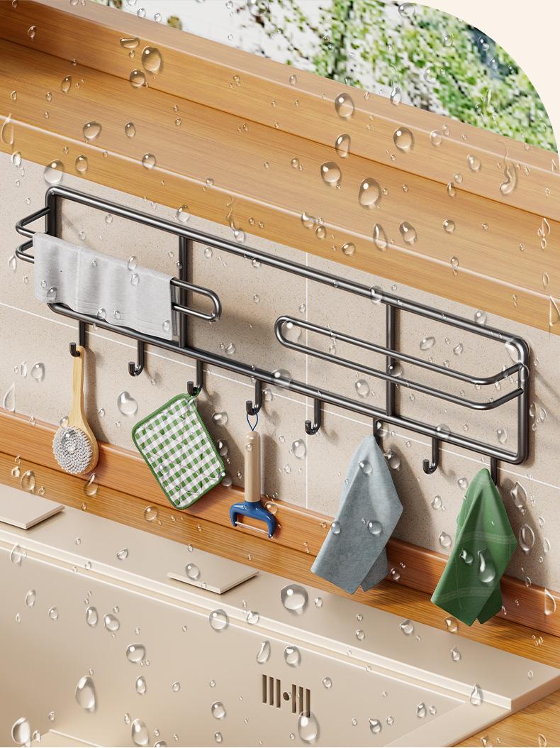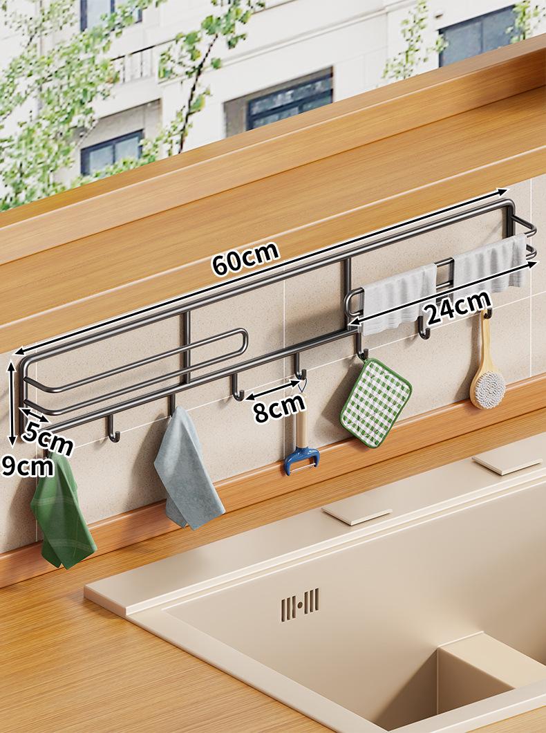 Estante de almacenamiento con ganchos para cocina, estante de almacenamiento sin perforaciones para fregadero de casa, estante de almacenamiento de artículos diversos para pared
