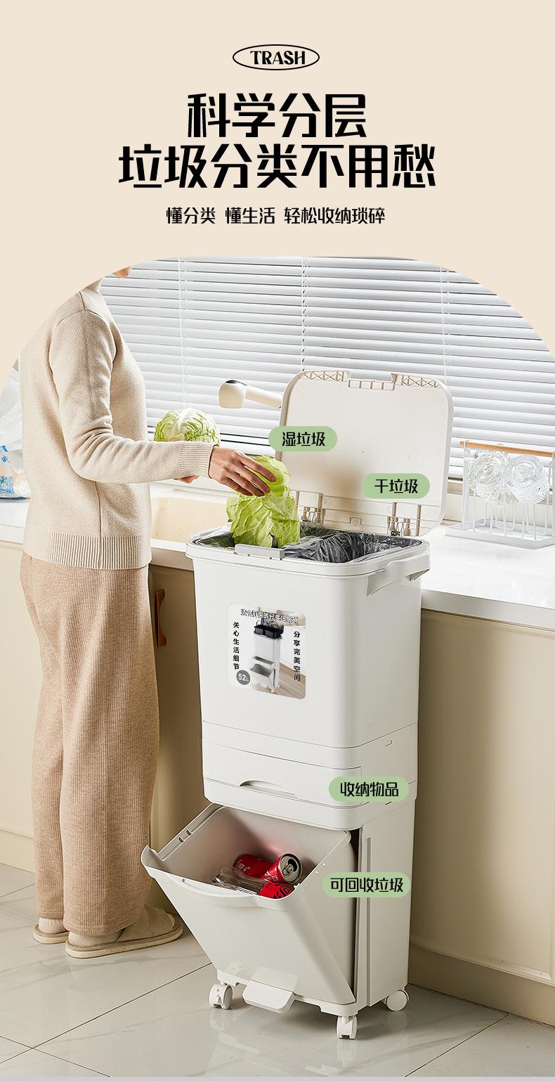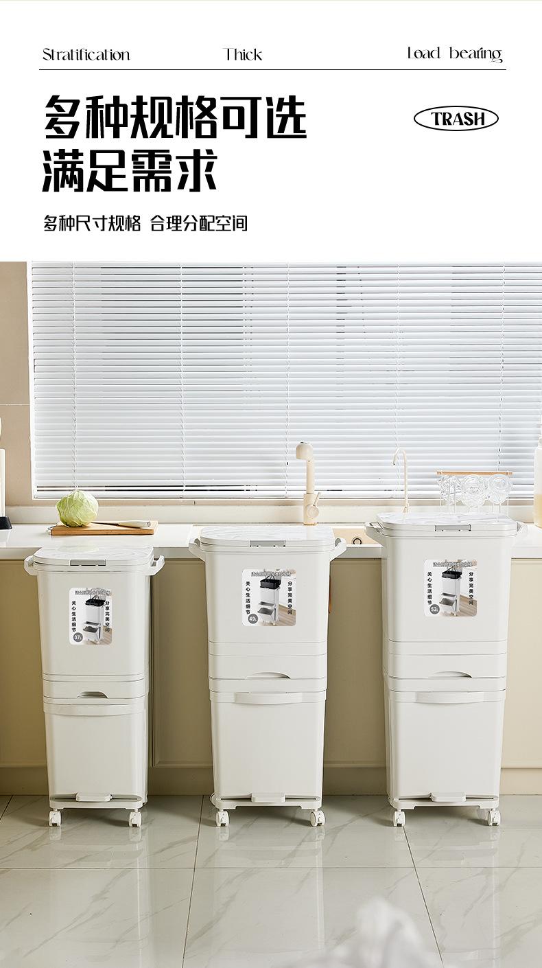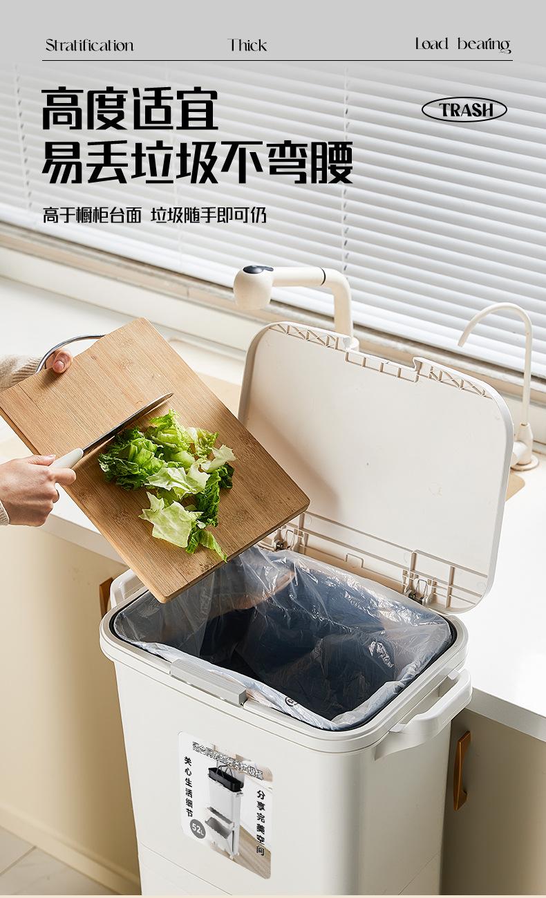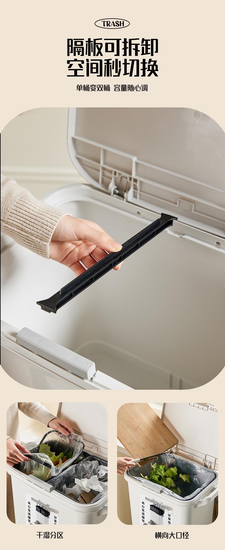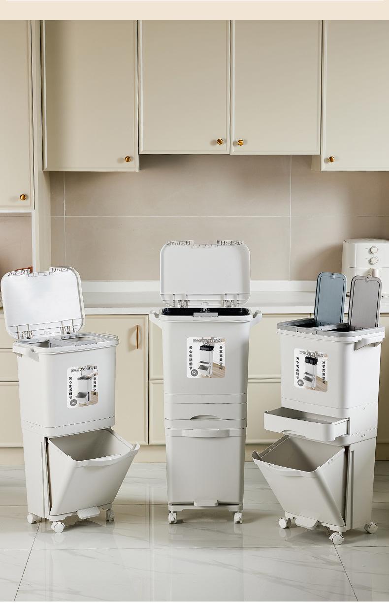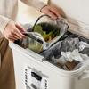 Contenedor de basura de cocina de alta calidad para el hogar, con rejilla separadora de residuos secos y húmedos, con tapa y polea de correa que no se dobla.