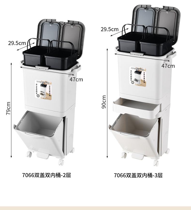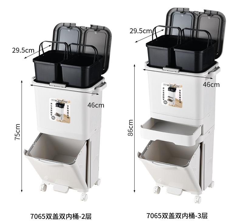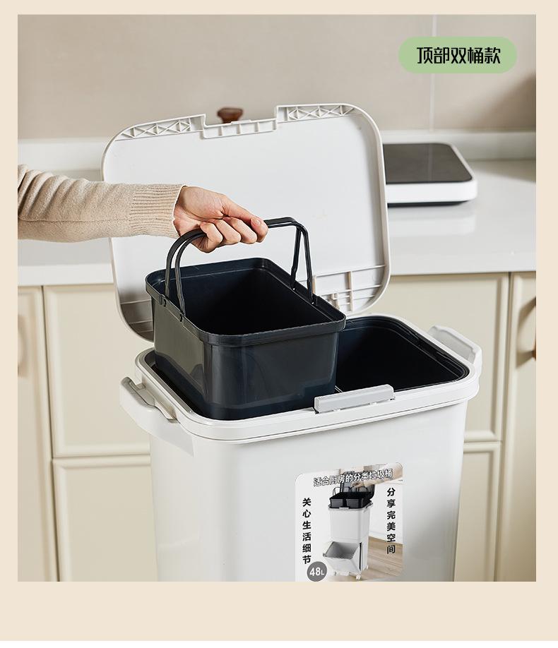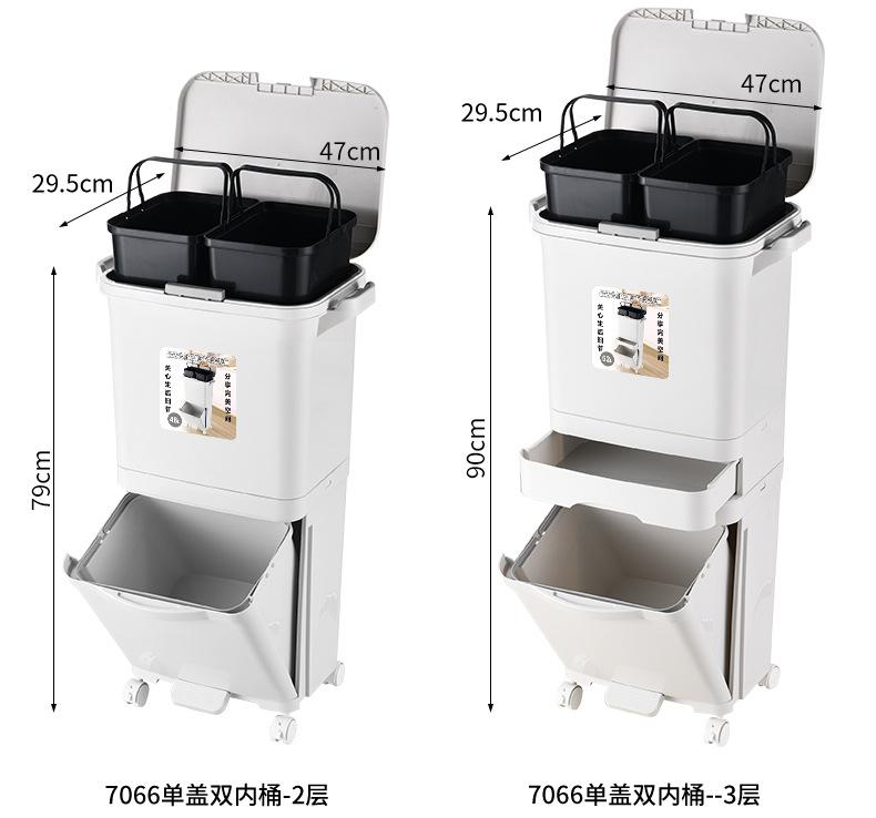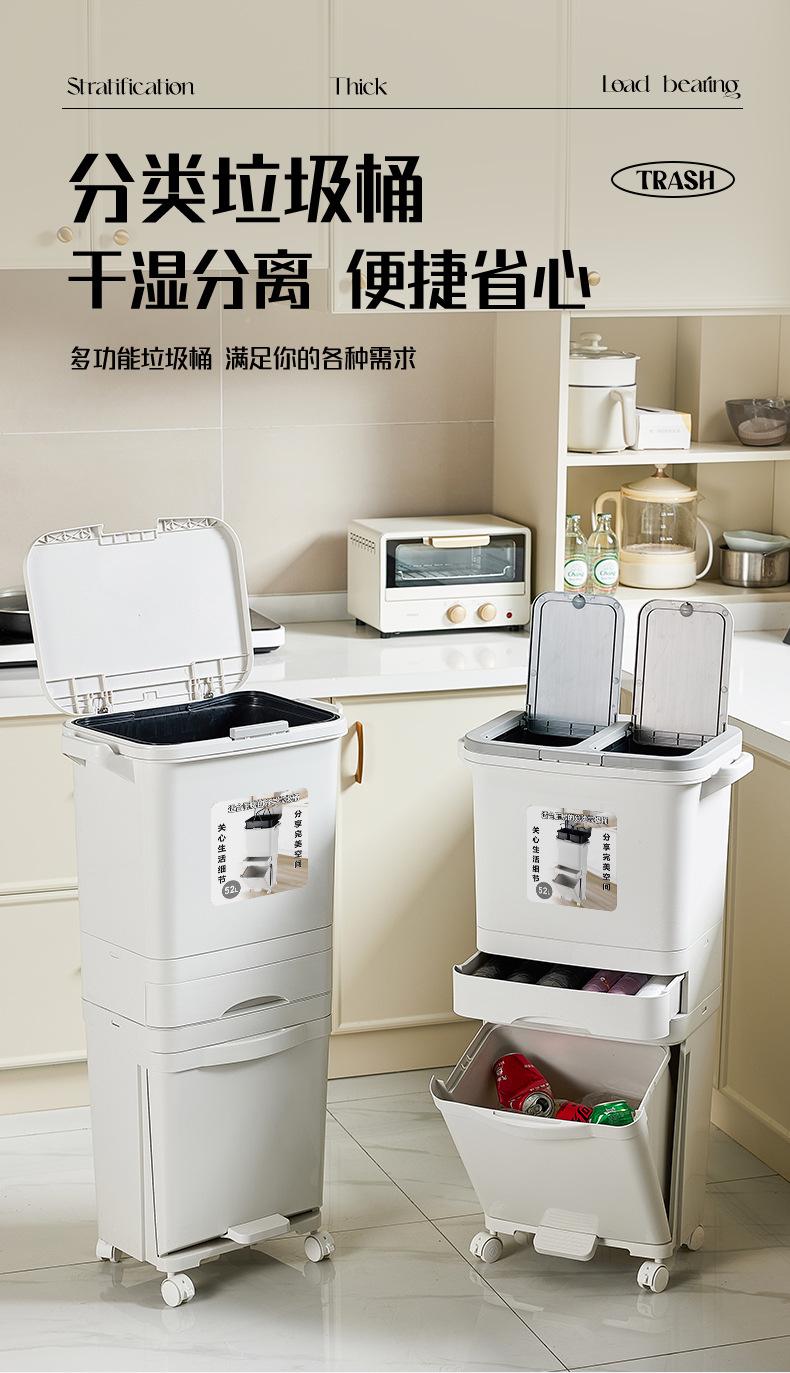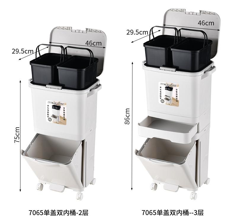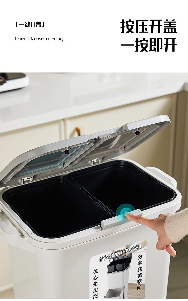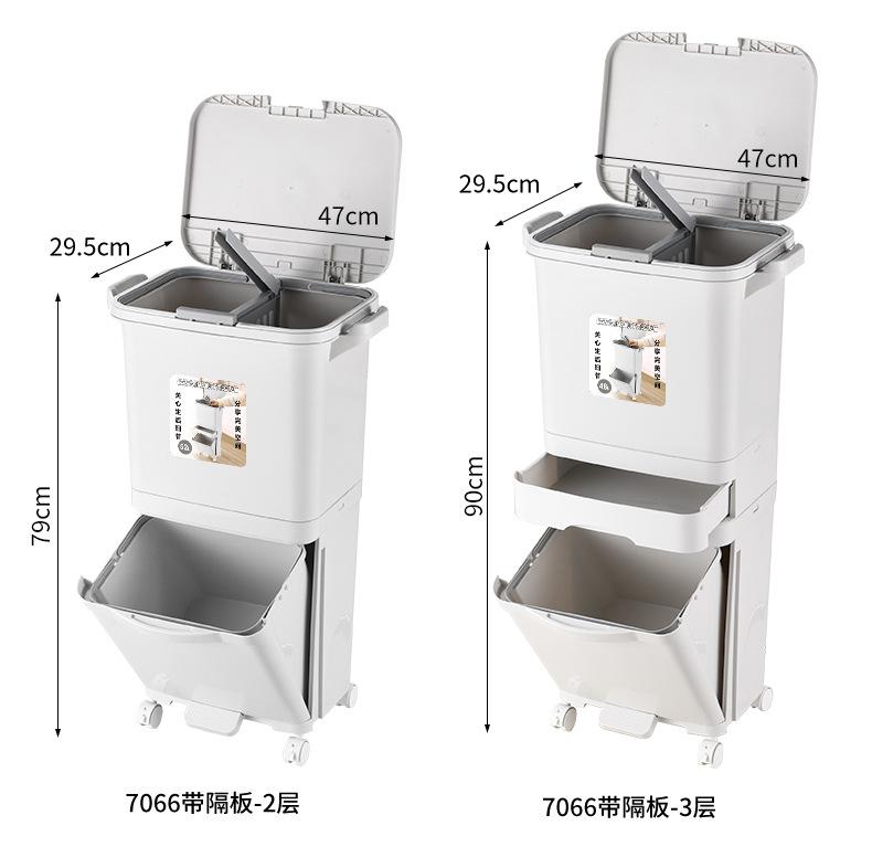 Contenedor de basura de cocina de alta calidad para el hogar, con rejilla separadora de residuos secos y húmedos, con tapa y polea de correa que no se dobla.
