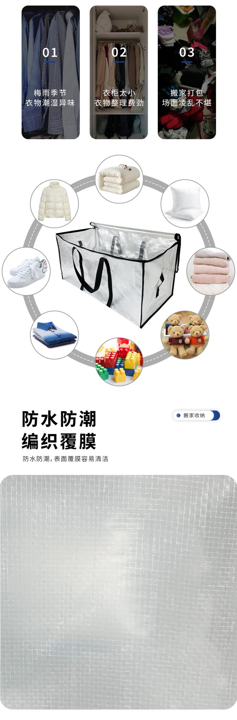Bolsa de almacenamiento transfronteriza de gran capacidad, bolsa de almacenamiento de ropa de ocio, caja móvil, bolso de mano de plástico