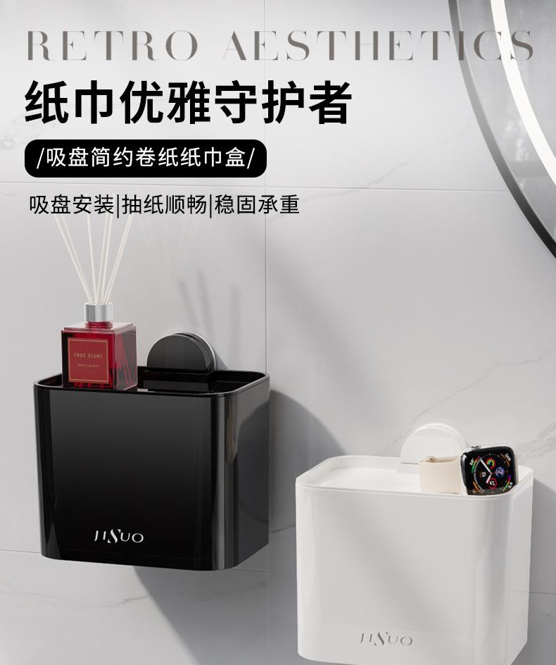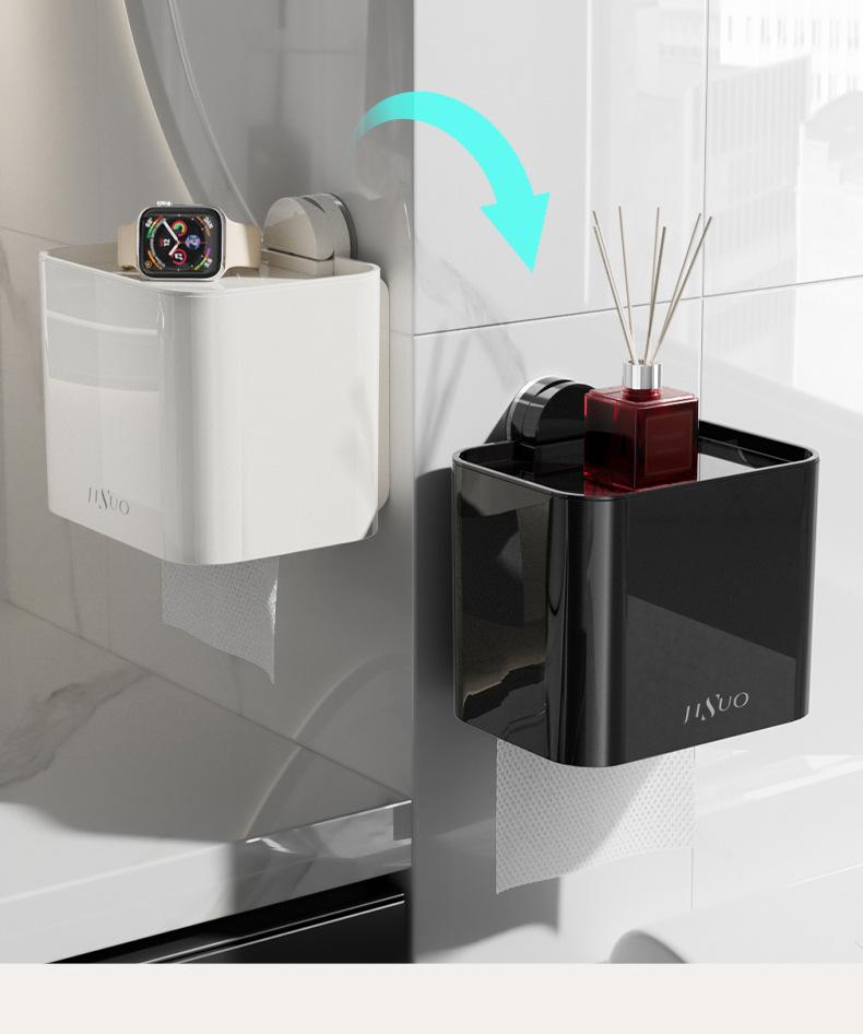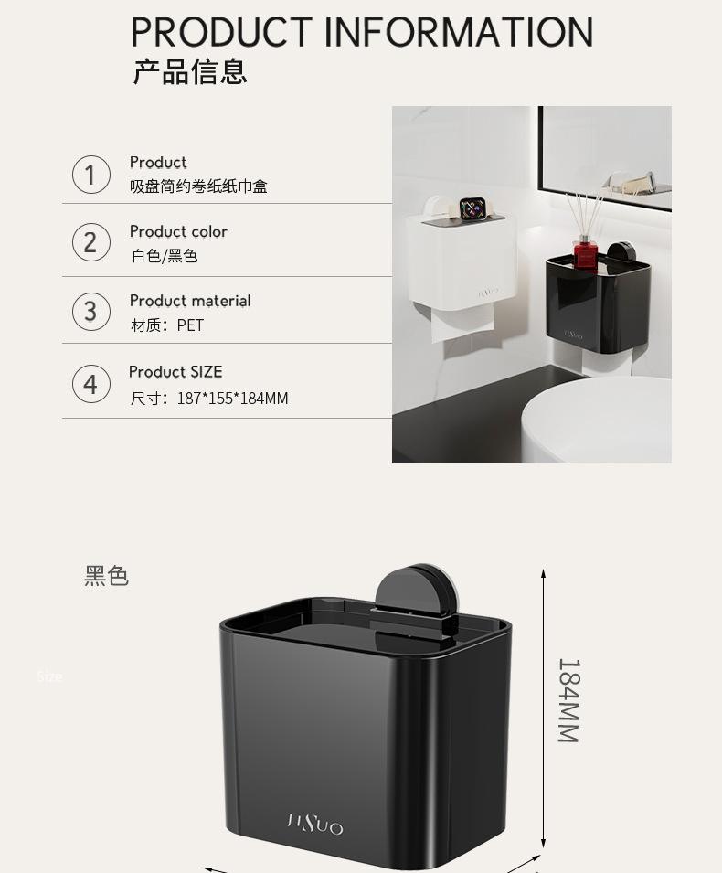 Caja de pañuelos con ventosa, caja de papel higiénico, soporte de papel higiénico para pared, caja de almacenamiento de papel higiénico