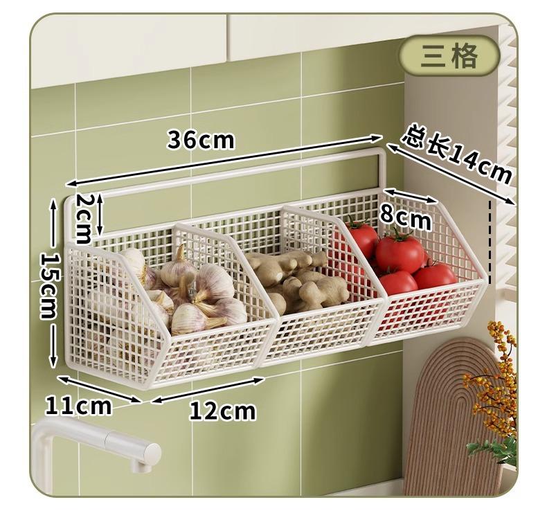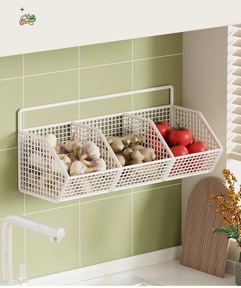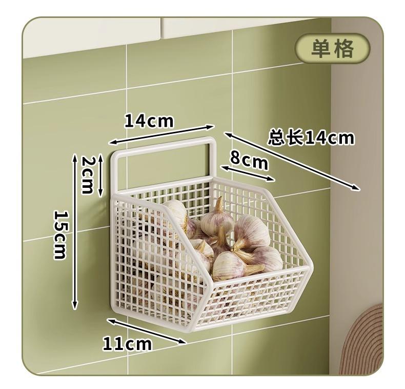 Compra Estante de Almacenamiento de Cebollín de Cocina, Jengibre y Ajo Caja de Almacenamiento de Jengibre y Ajo Cesta de Verduras para Colgar en la Pared Estante de Almacenamiento de Condimentos de Pared Sin Perforaciones al por mayor en Joom.pro