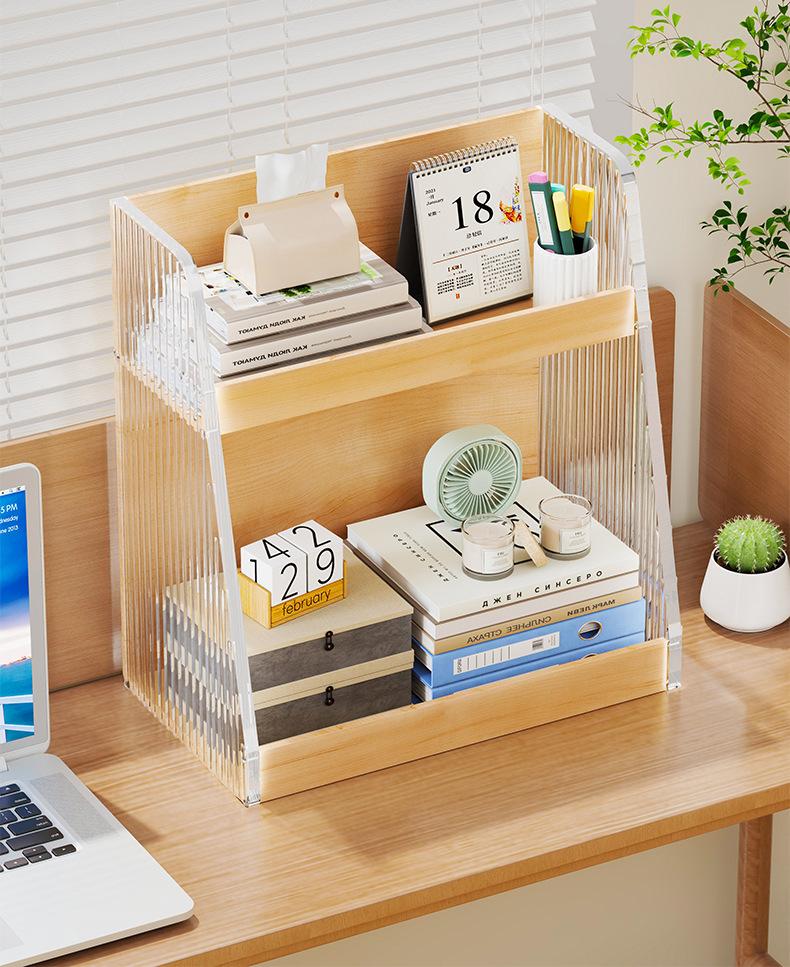Estante de almacenamiento de escritorio, estante de almacenamiento acrílico multicapa, estante de escritorio para estudiantes, estante de almacenamiento de suministros de oficina