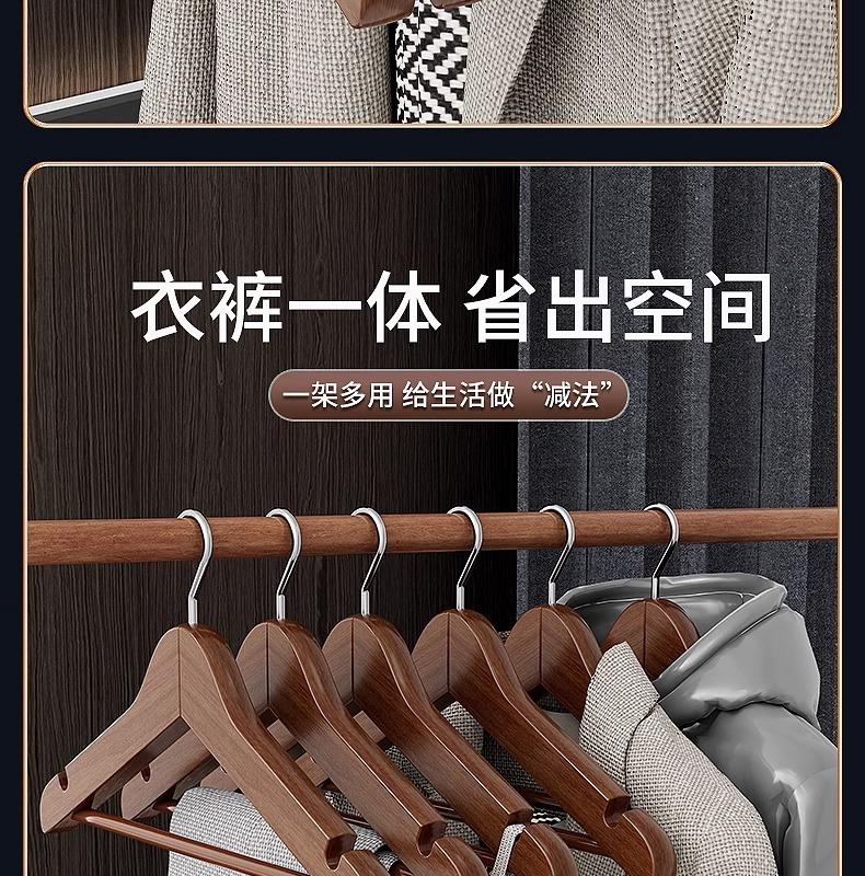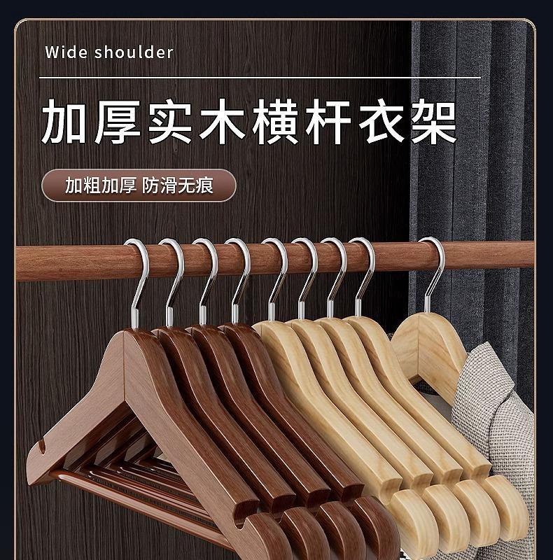 Percha de madera maciza para colgar ropa del hogar, sin costuras, antideslizante, para armario, de madera, para hotel