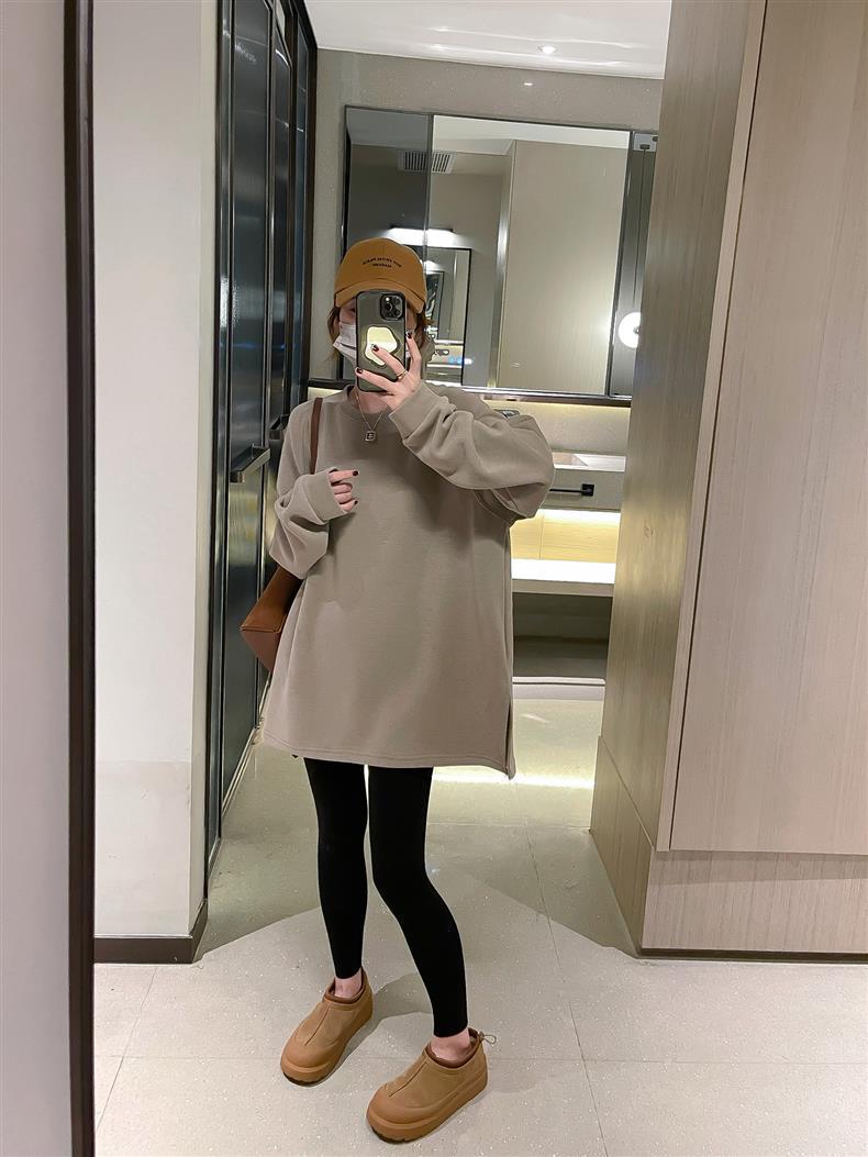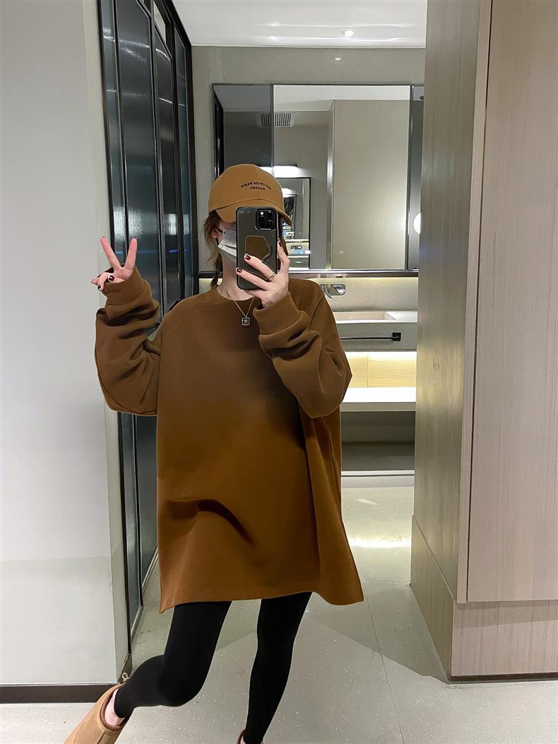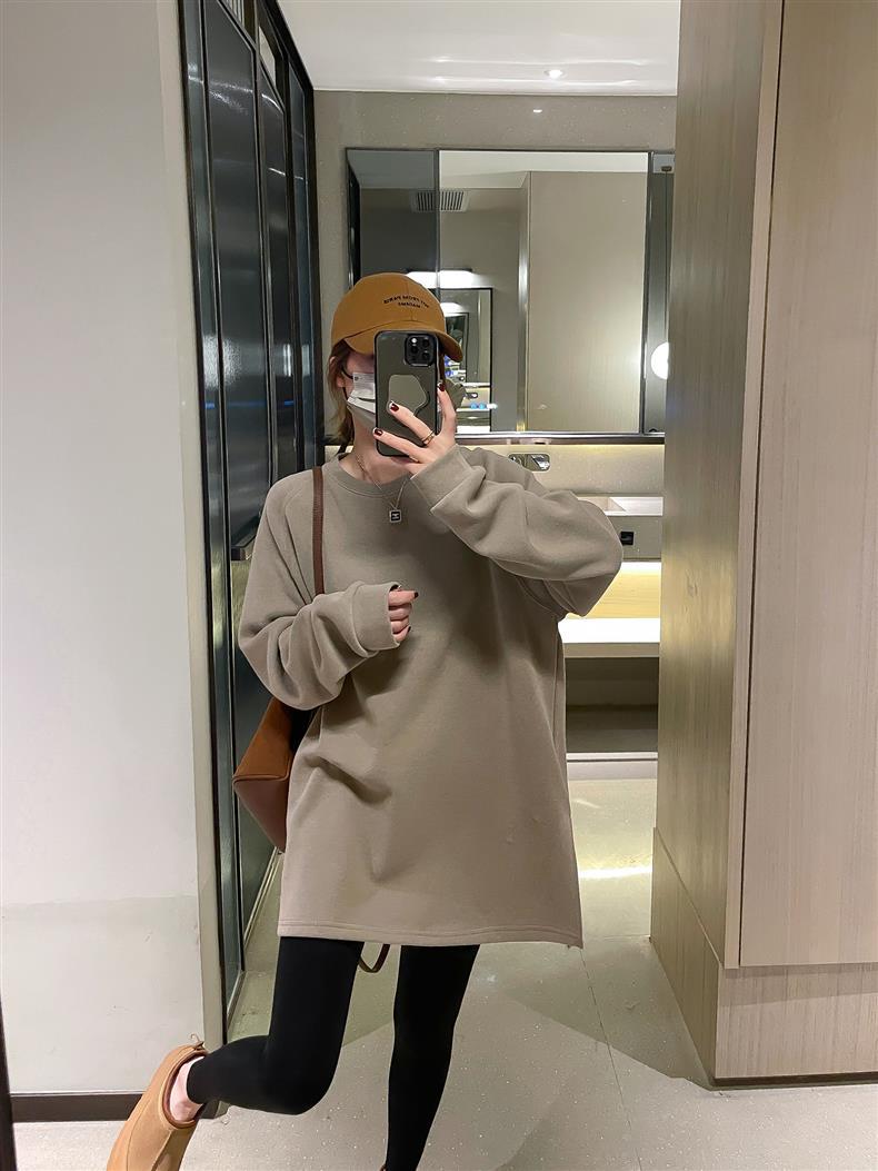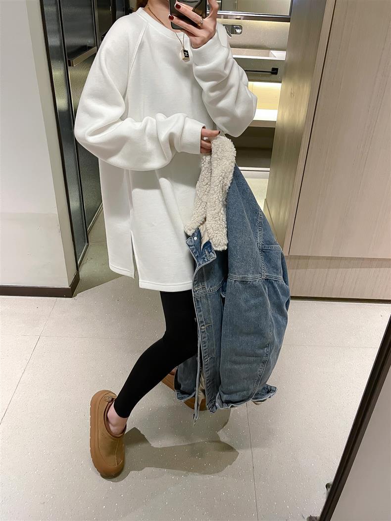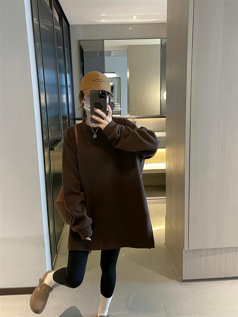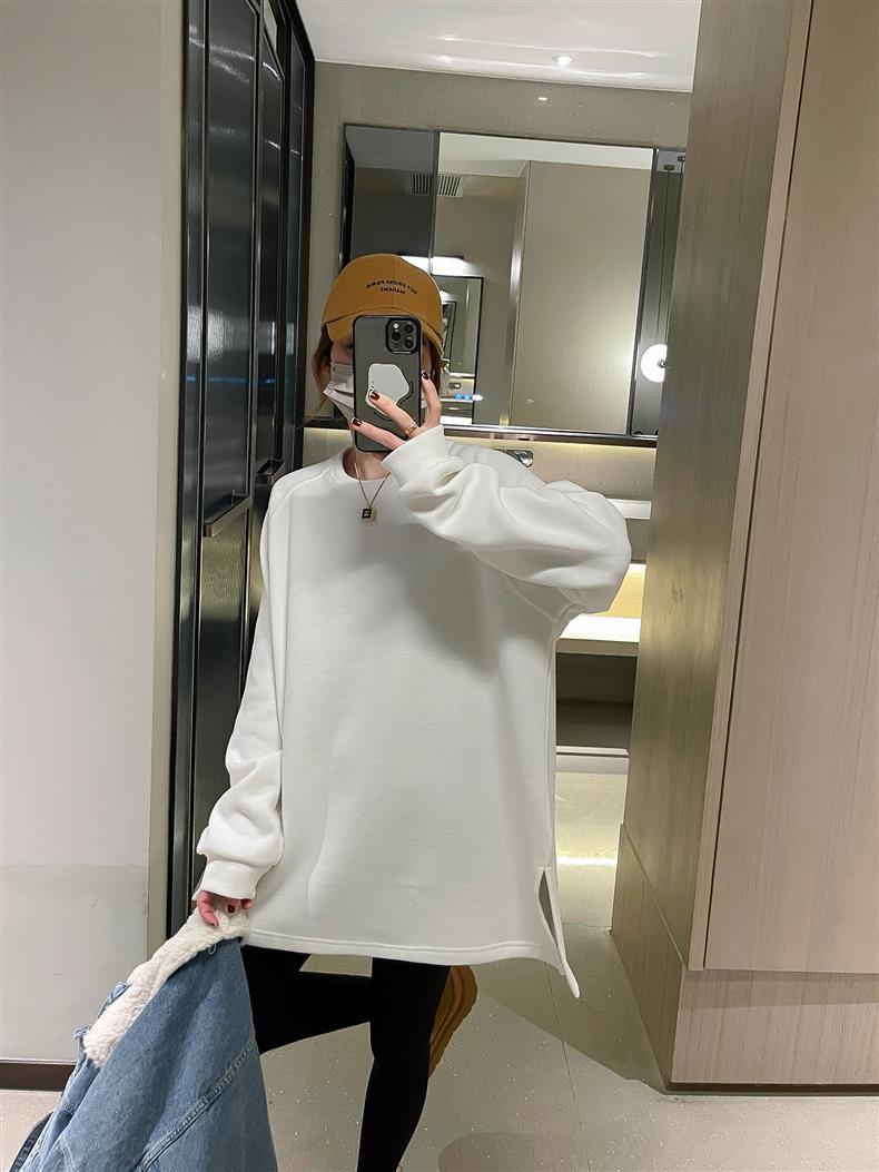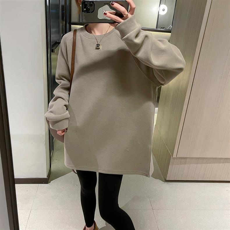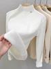 Camiseta de forro polar con lijado de primavera no tardía para otoño e invierno de 2024, camisa de base media y larga gruesa para mujer para cubrir la parte superior inferior
