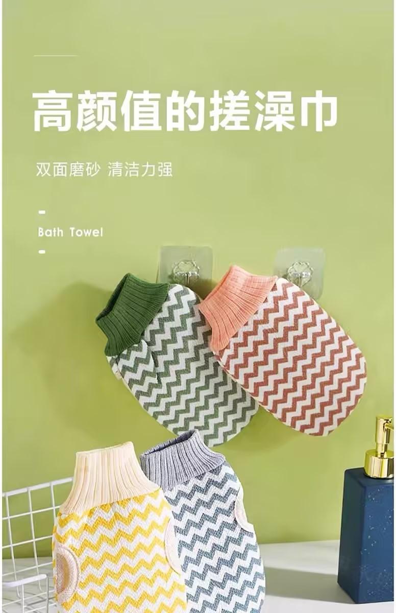 Guantes de baño gruesos de doble cara para adultos, para frotar la espalda, para el hogar, con toalla de baño a rayas, resistentes al barro, para descontaminar y frotar.
