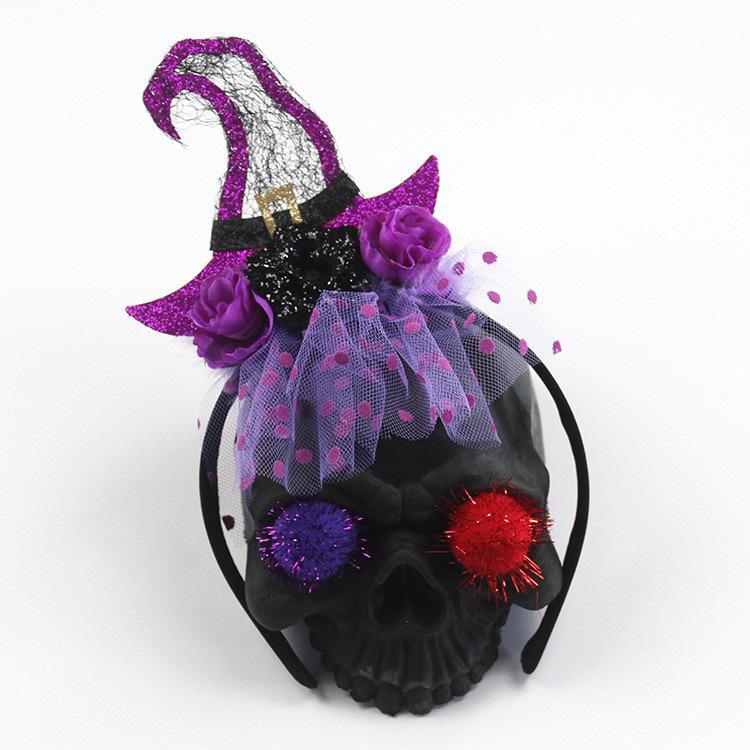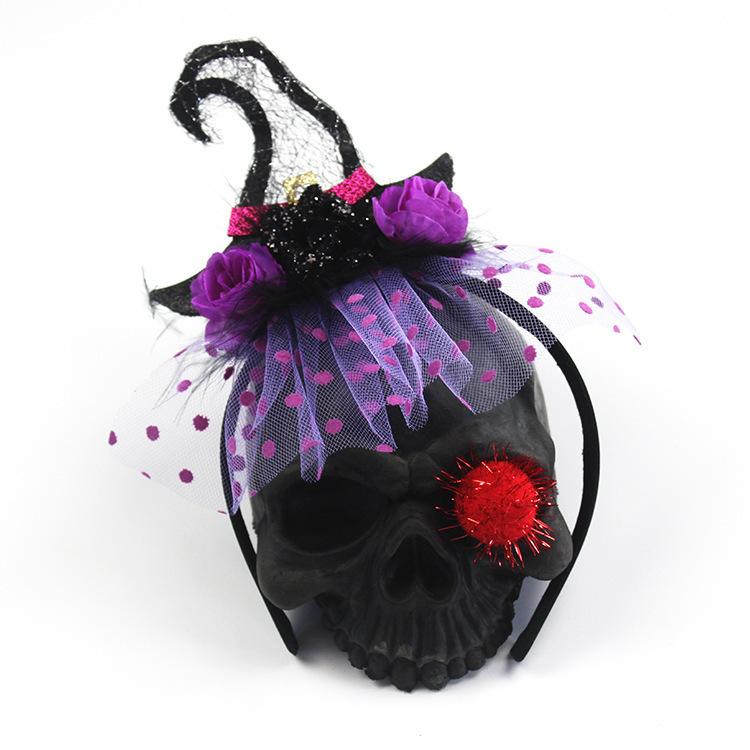 Diadema de Malla de Bruja de Halloween Accesorios Festivos Tocado de Baile Suministros para Fiesta de Cos Accesorios de Decoración para Actuación