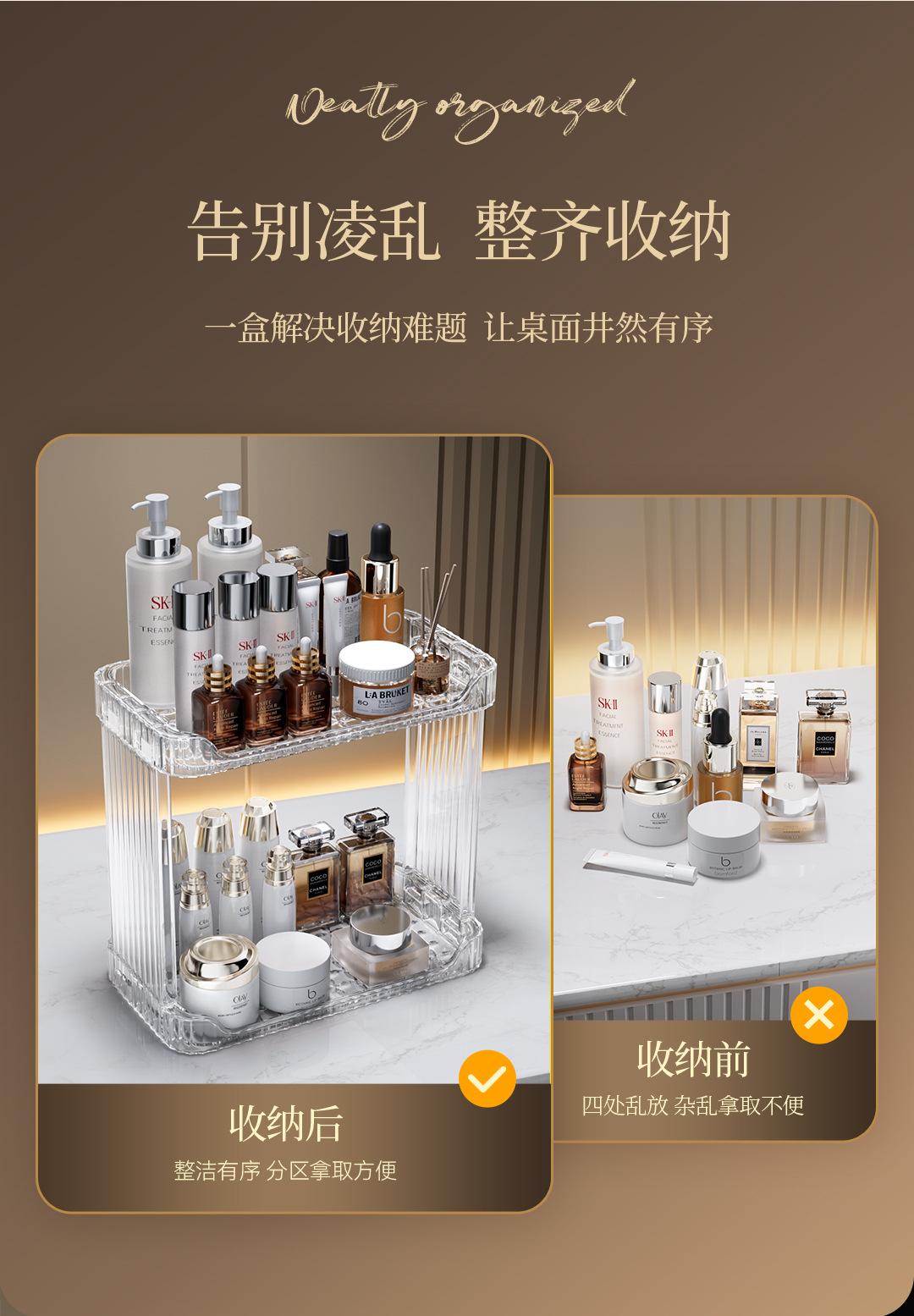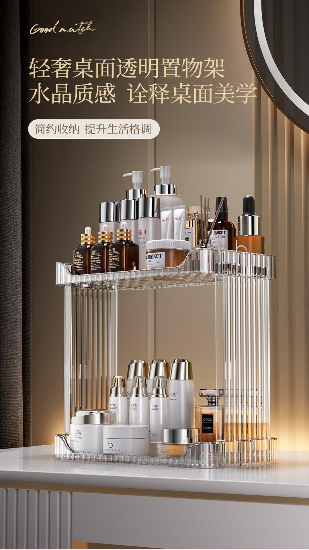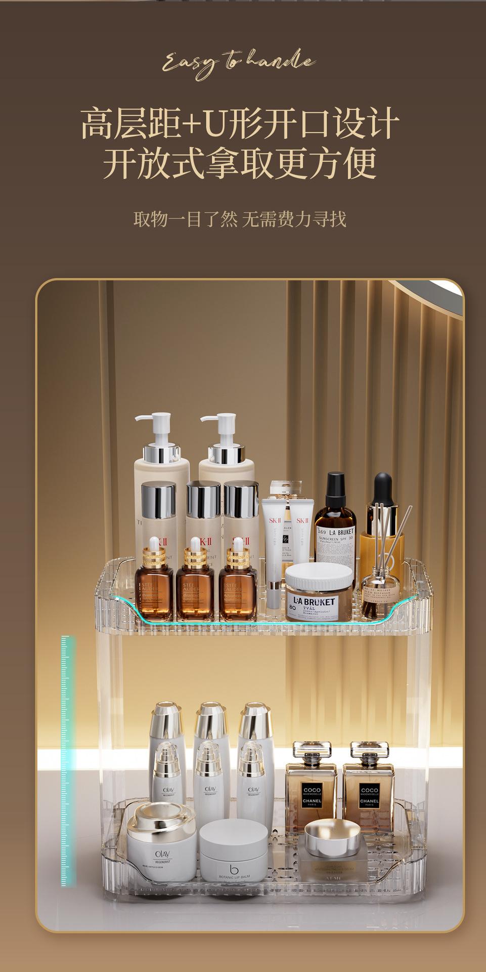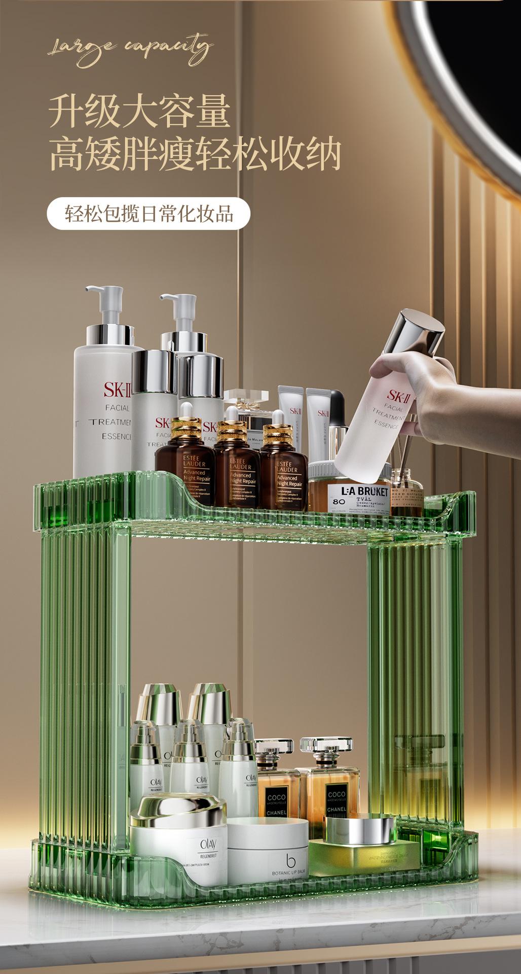 Estante de almacenamiento de baño de lujo ligero, caja de almacenamiento de cosméticos de escritorio de doble capa para el hogar, estante de almacenamiento para el cuidado de la piel y el lavado del baño