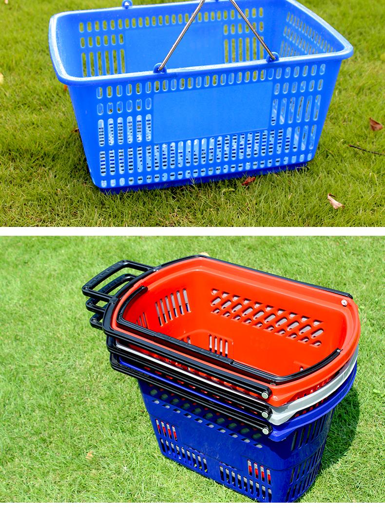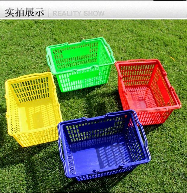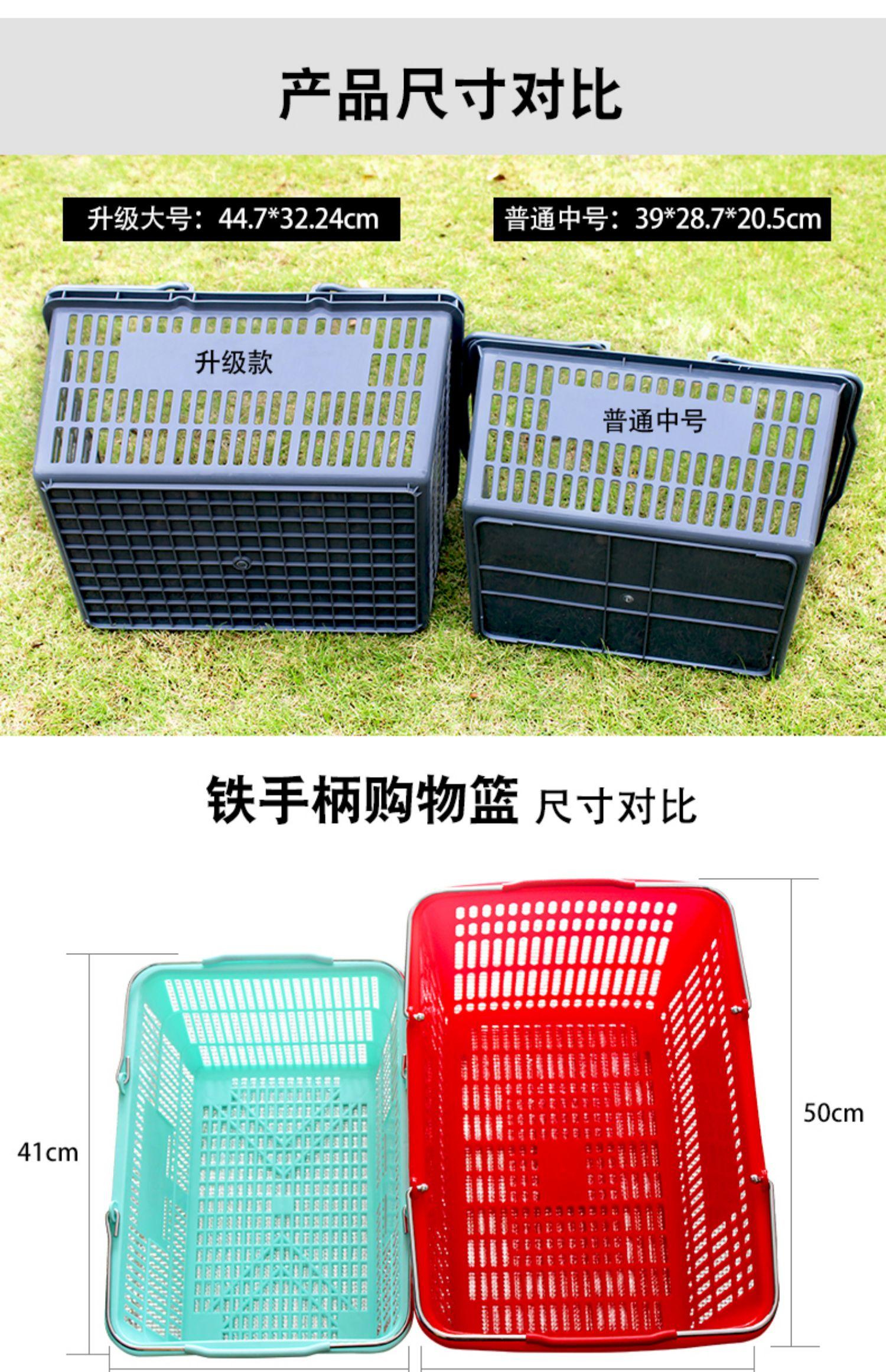 Cesta de compras de supermercado al por mayor, cesta portátil engrosada, carrito grande con marco de plástico con ruedas, cesta de compras de tienda de conveniencia para el hogar para compras