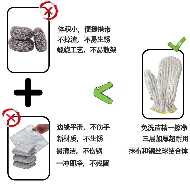 Cocina Uso Diario Hogar Descontaminación Práctico Artefacto de Limpieza Lavar Platos Lavar Sartenes Antiadherente Aceite Buen Guantes Plateados