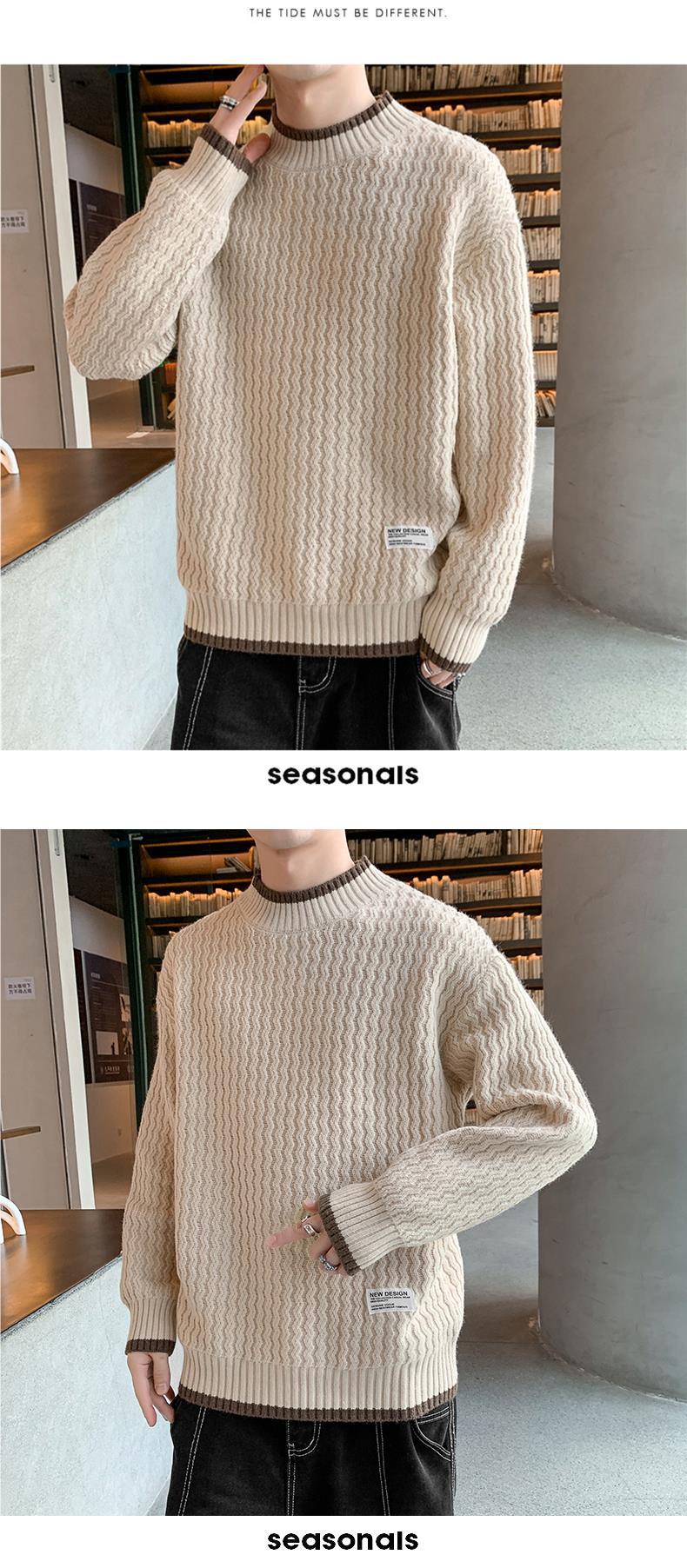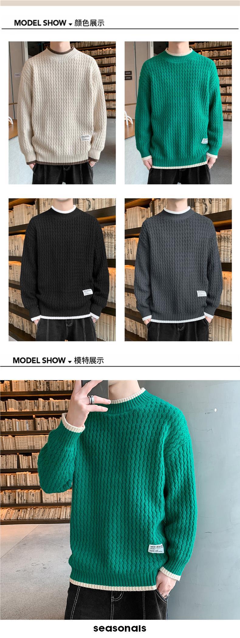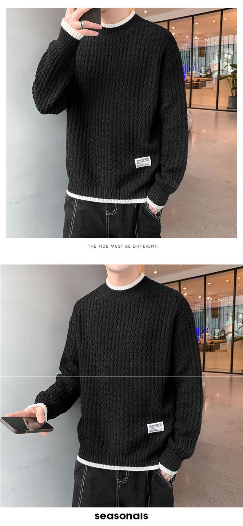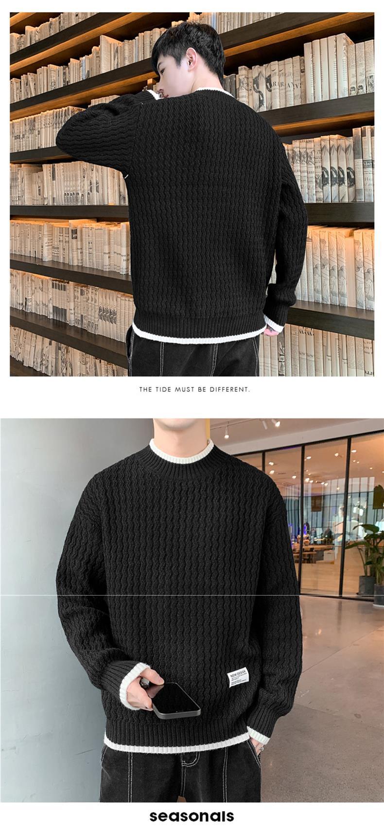 Suéter Ondulado Ge Hua para Hombre Otoño e Invierno Suéter de Marca de Moda Ropa Suéter Falso de Dos Piezas con Cuello Alto Suelto de Aguja