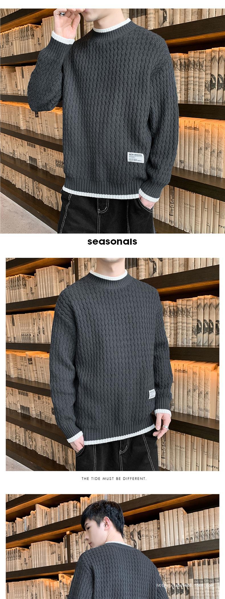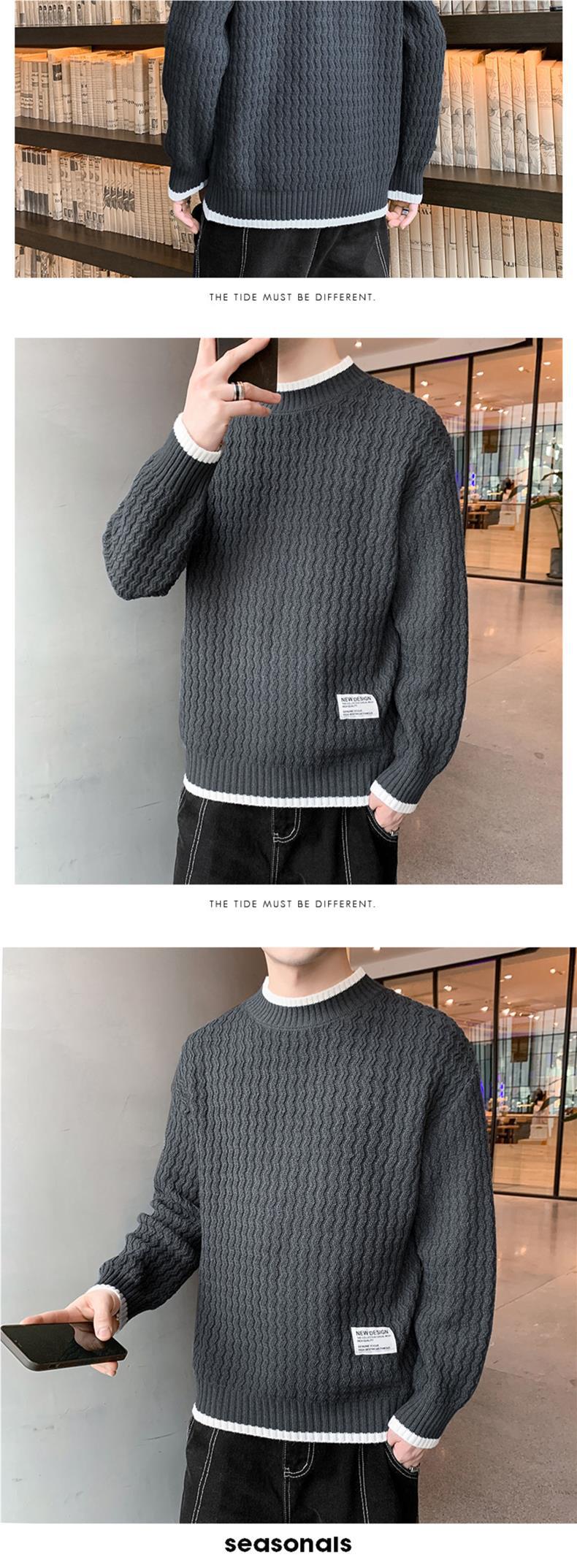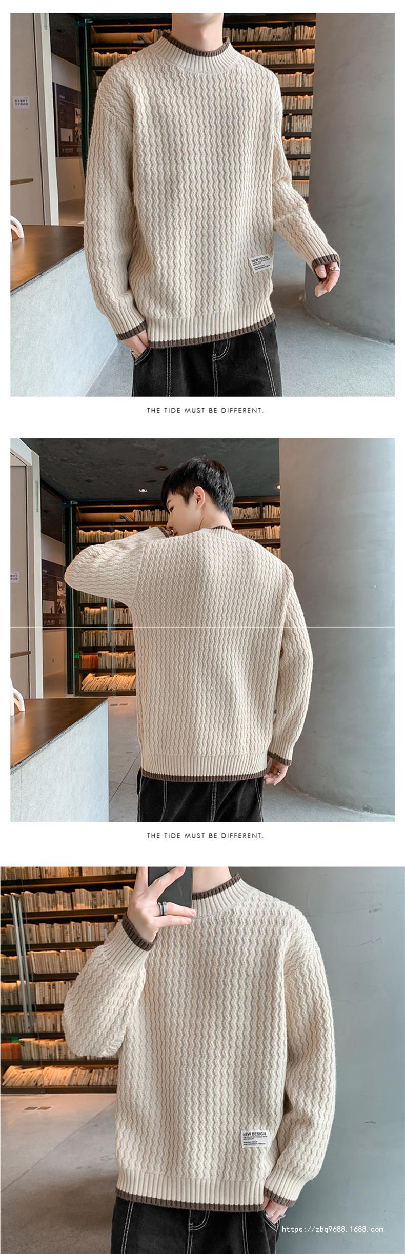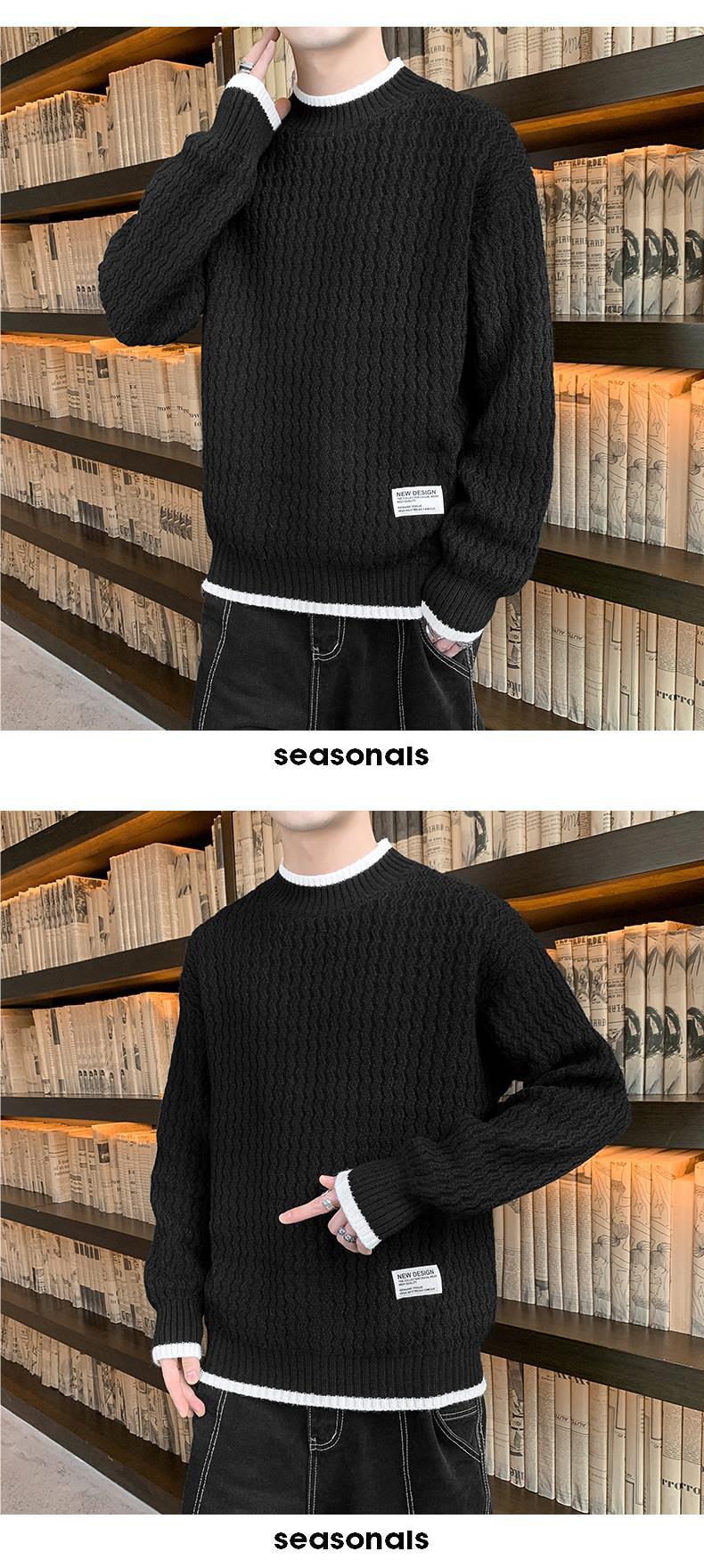 Suéter Ondulado Ge Hua para Hombre Otoño e Invierno Suéter de Marca de Moda Ropa Suéter Falso de Dos Piezas con Cuello Alto Suelto de Aguja