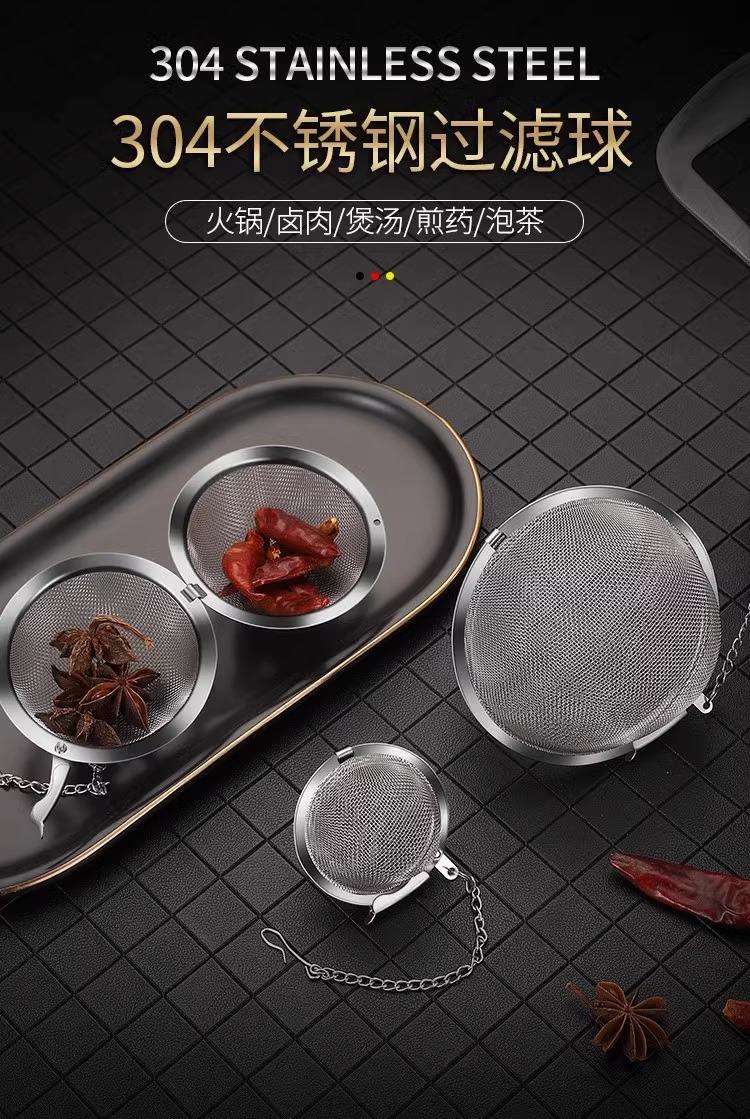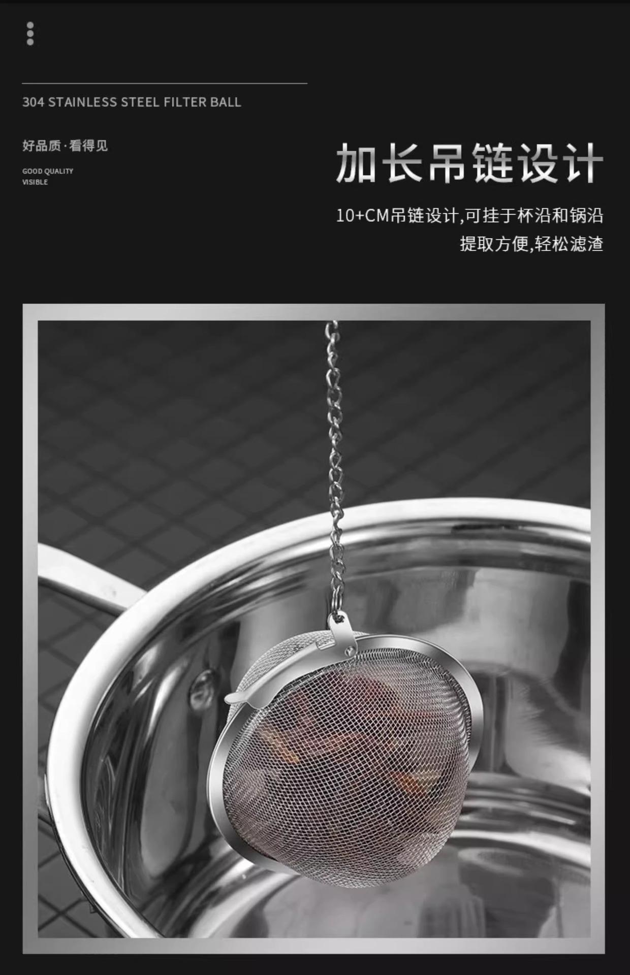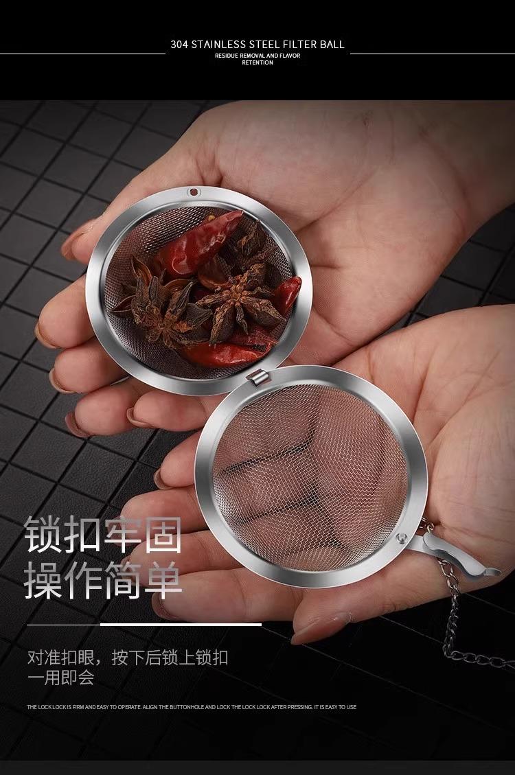 Filtro de bola de condimento de acero inoxidable 304, bola de condimento para fugas de té, tesoro de té, sopa, alimentos marinados, bola de té de cocina, sabor