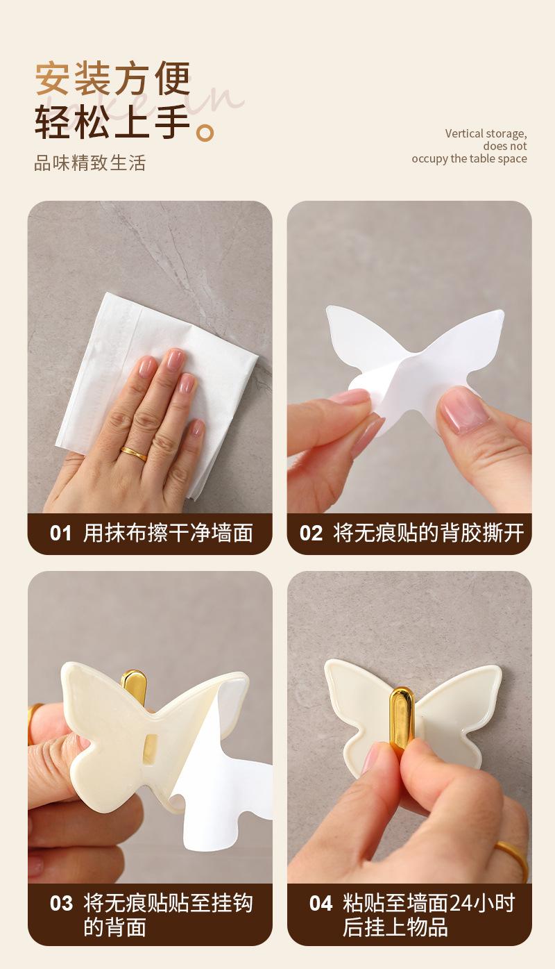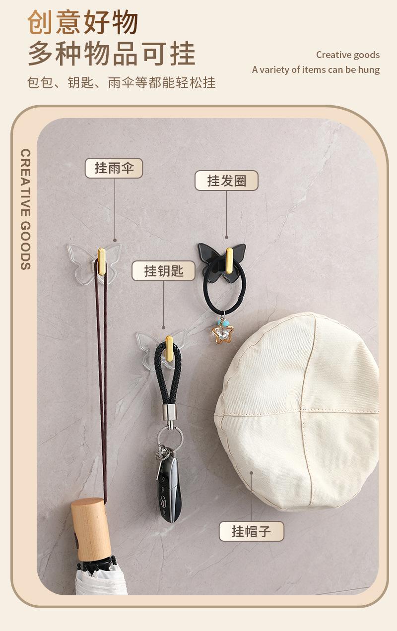 Gancho mariposa nuevo transfronterizo gancho de lujo ligero baño sin perforaciones fuerte soporte de carga cocina puerta trasera gancho para bolsa