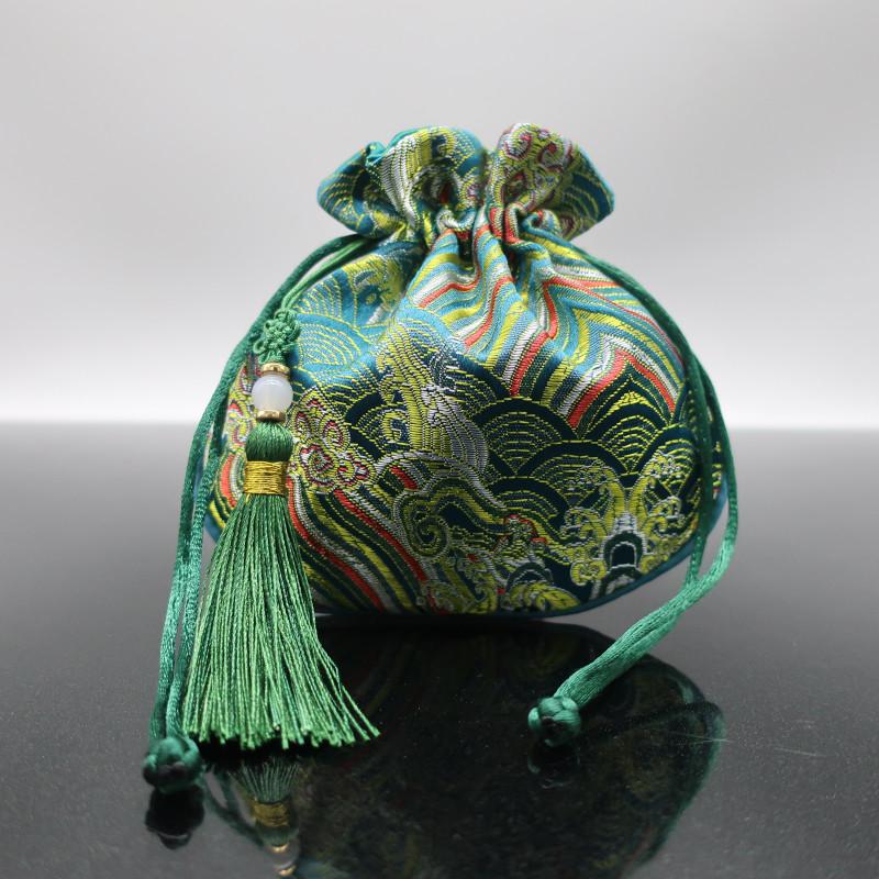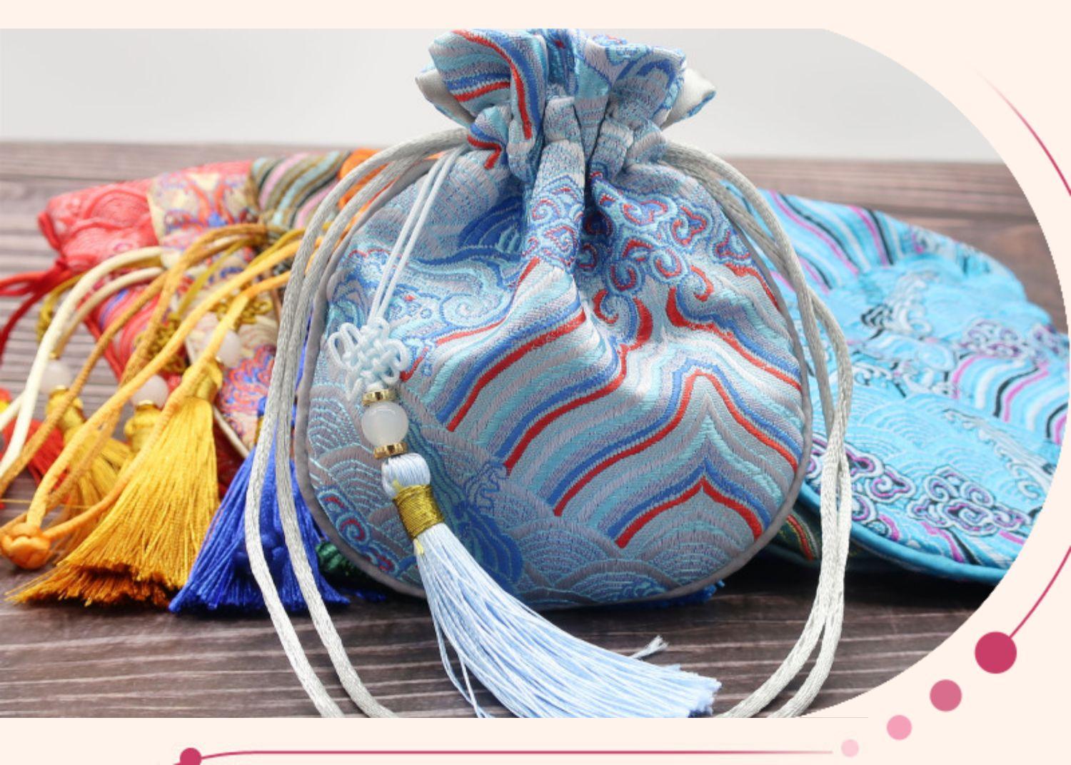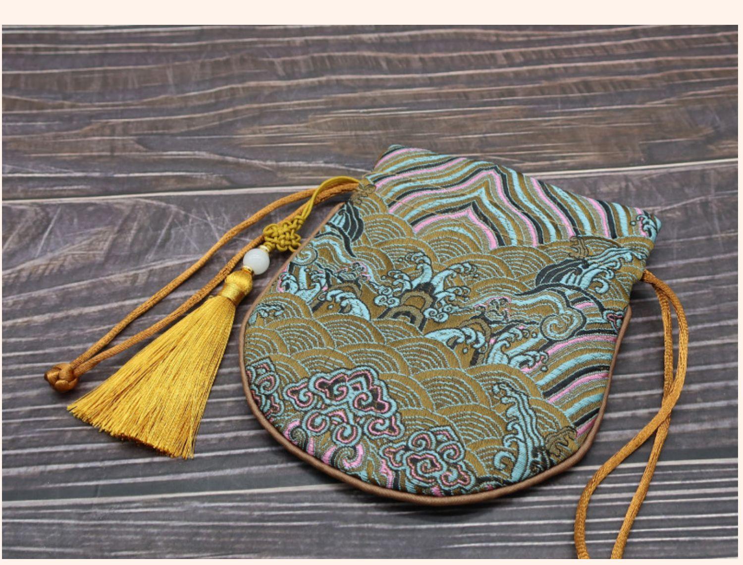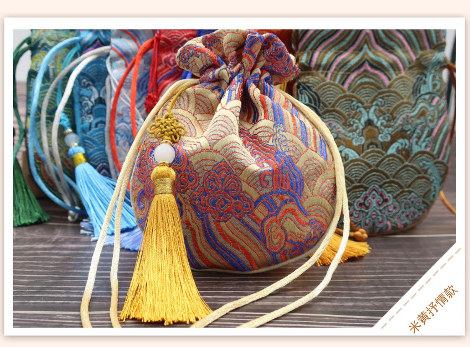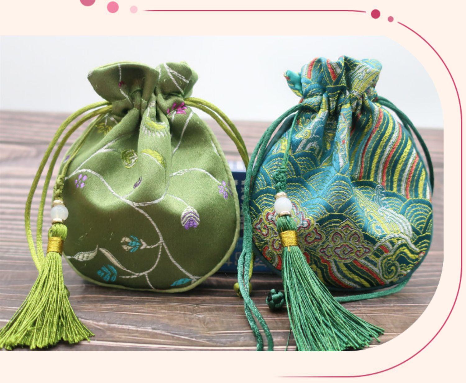 Bolsa de brocado con bordado antiguo, bolsa de almacenamiento de joyas, bolsa de tela con cordón, bolsa vacía