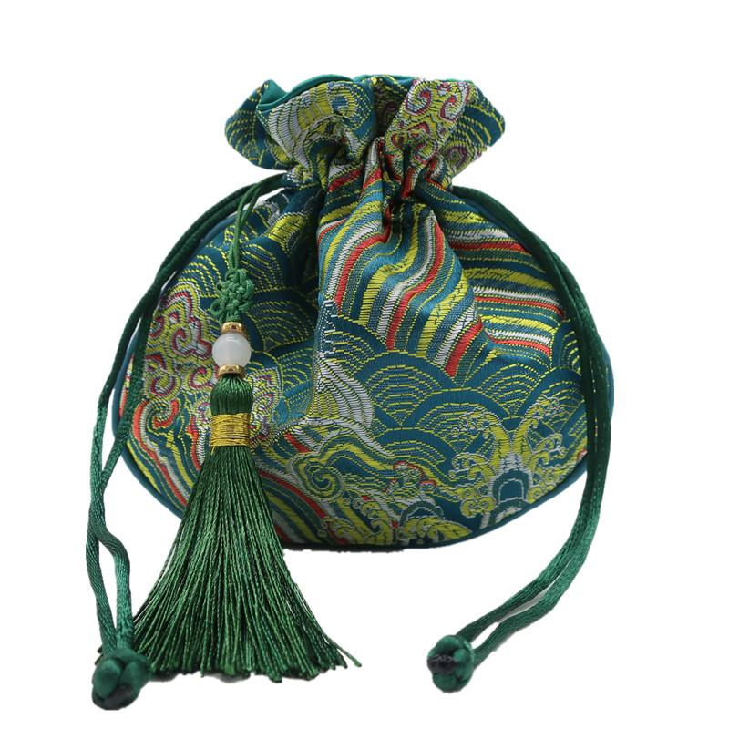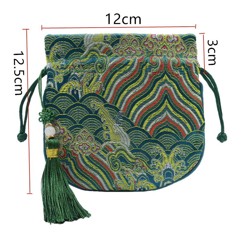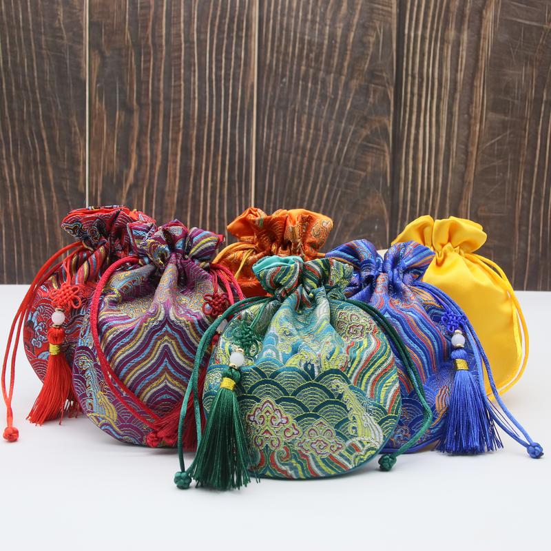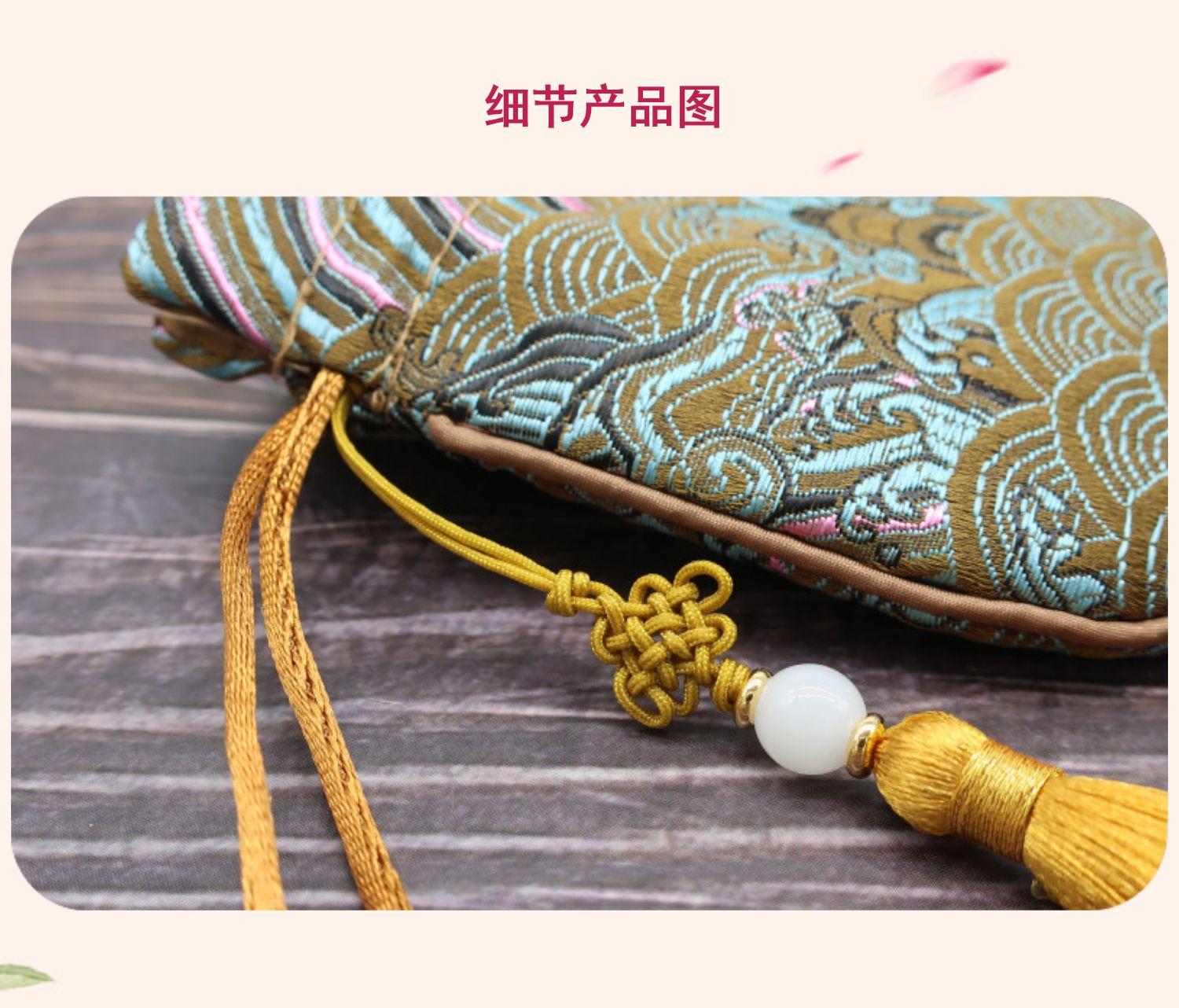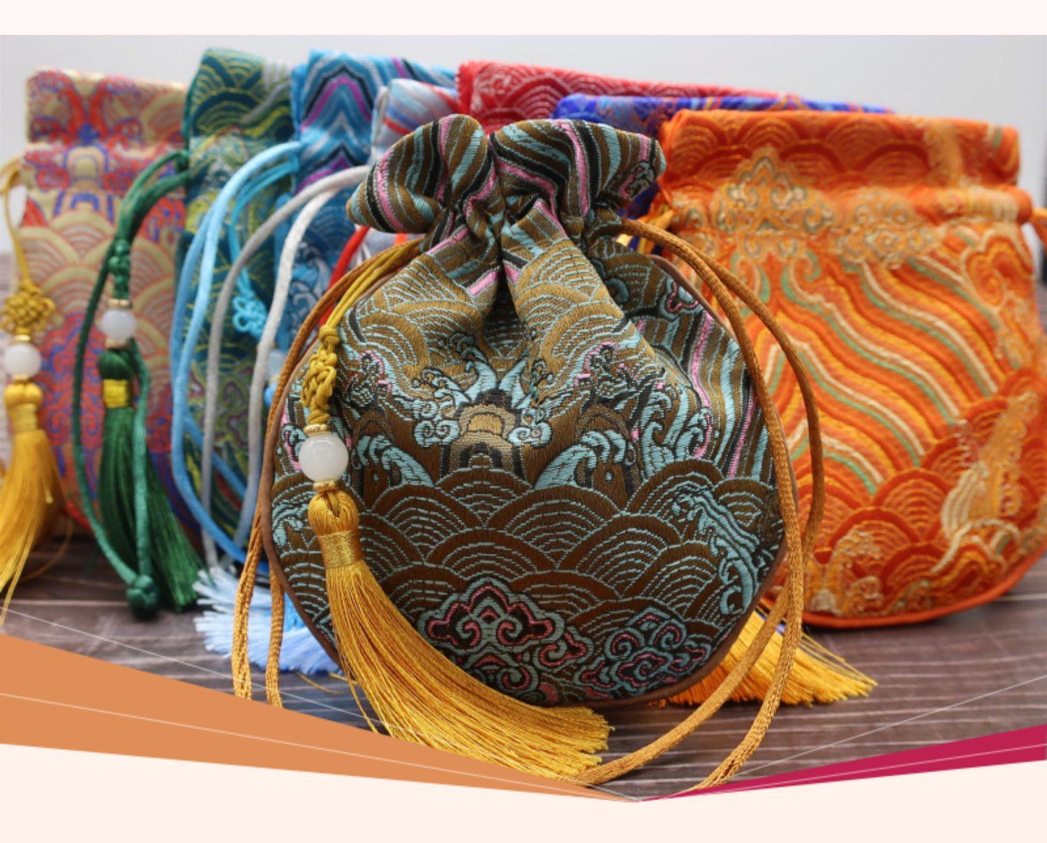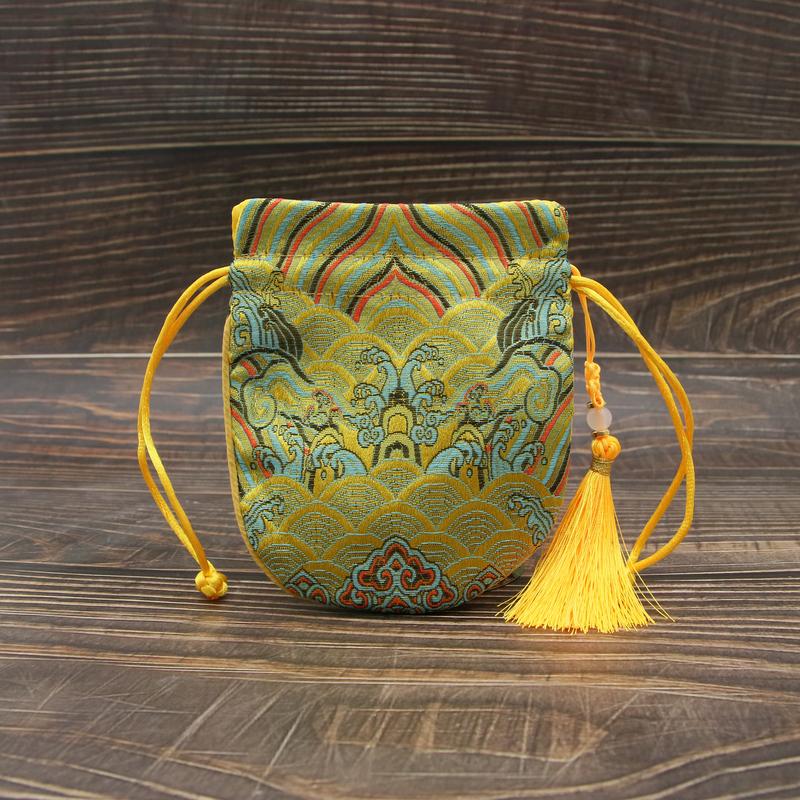 Bolsa de brocado con bordado antiguo, bolsa de almacenamiento de joyas, bolsa de tela con cordón, bolsa vacía