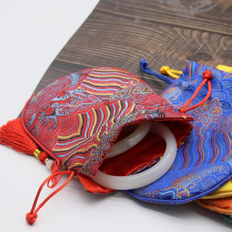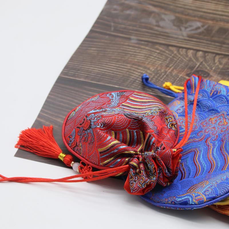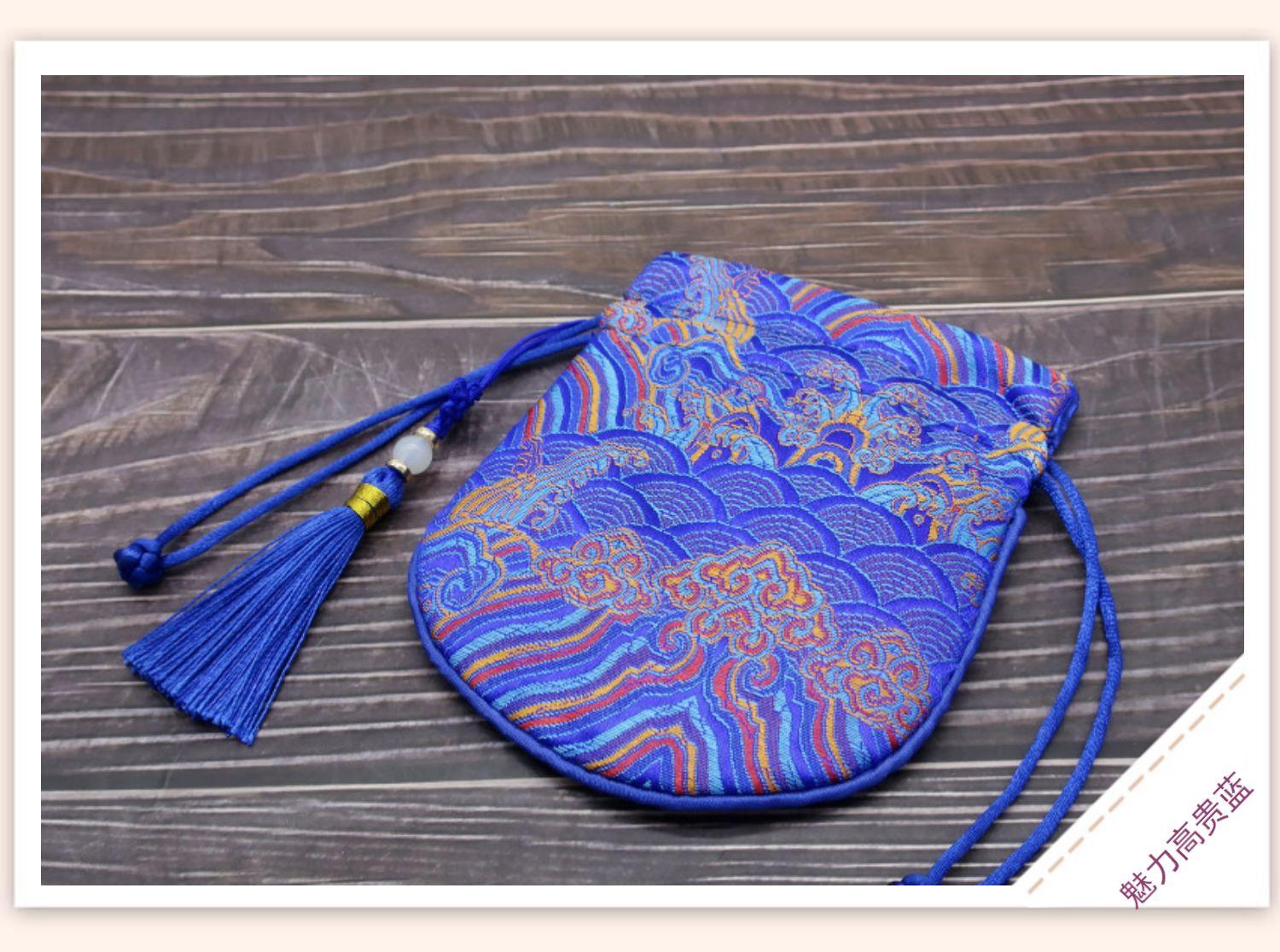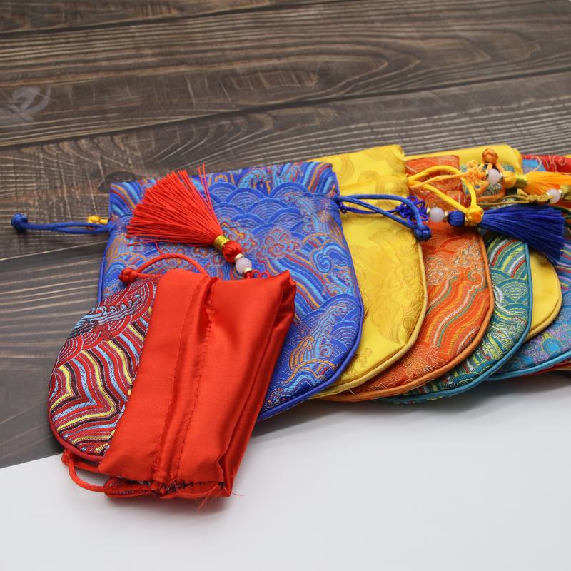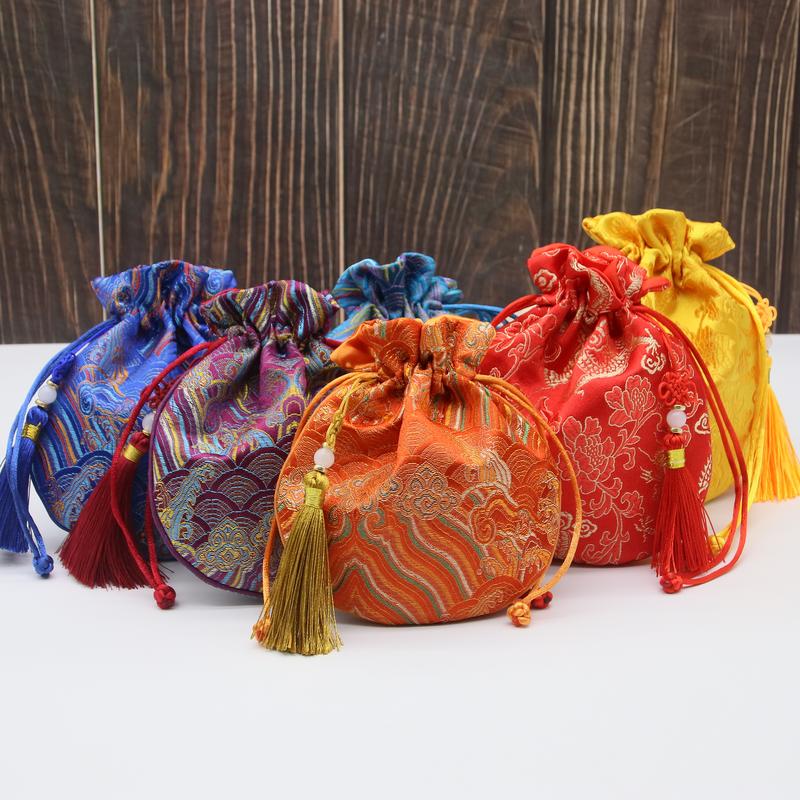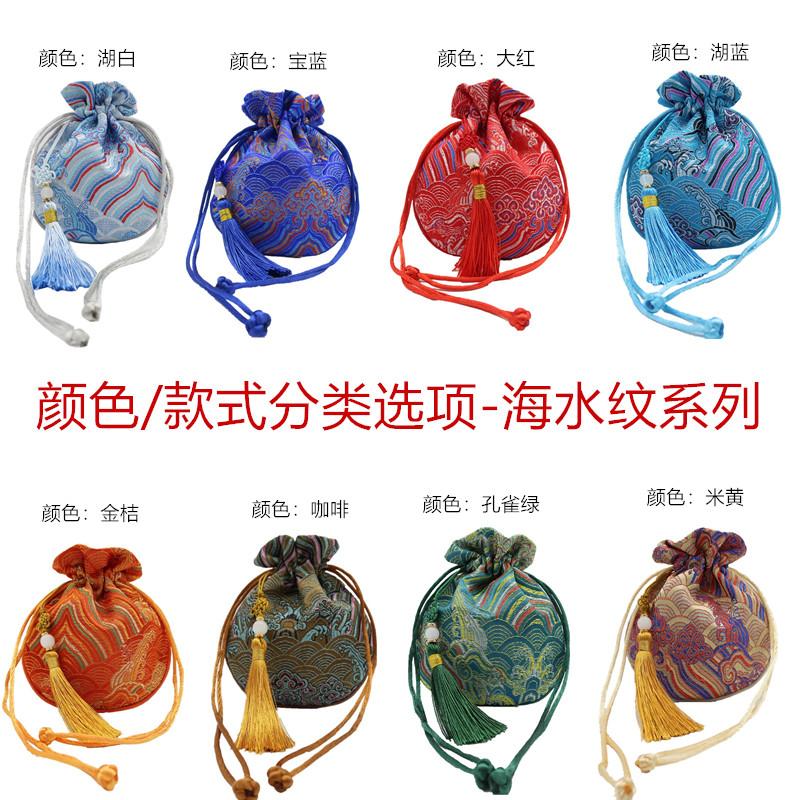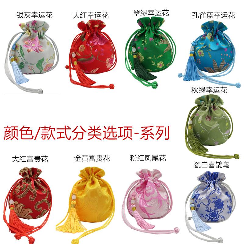 Bolsa de brocado con bordado antiguo, bolsa de almacenamiento de joyas, bolsa de tela con cordón, bolsa vacía