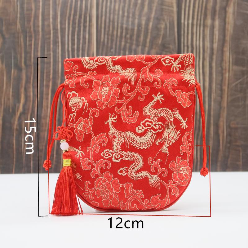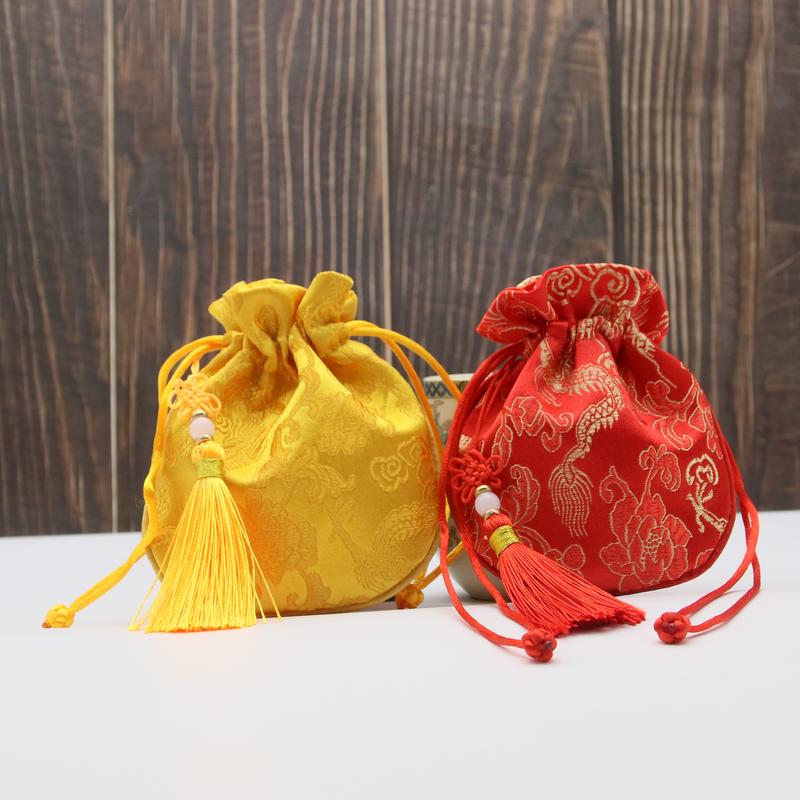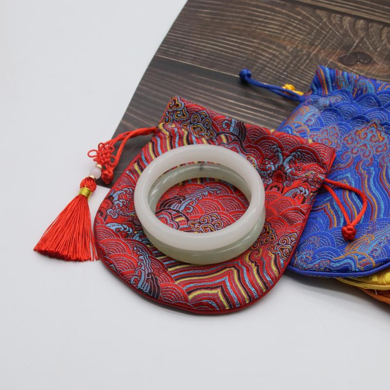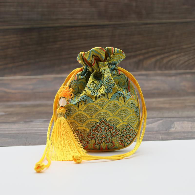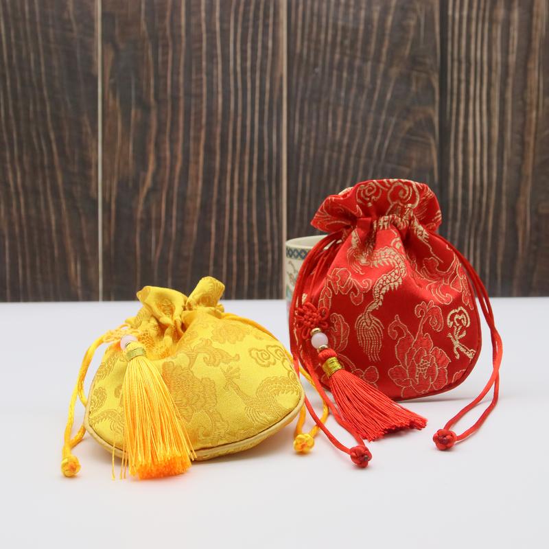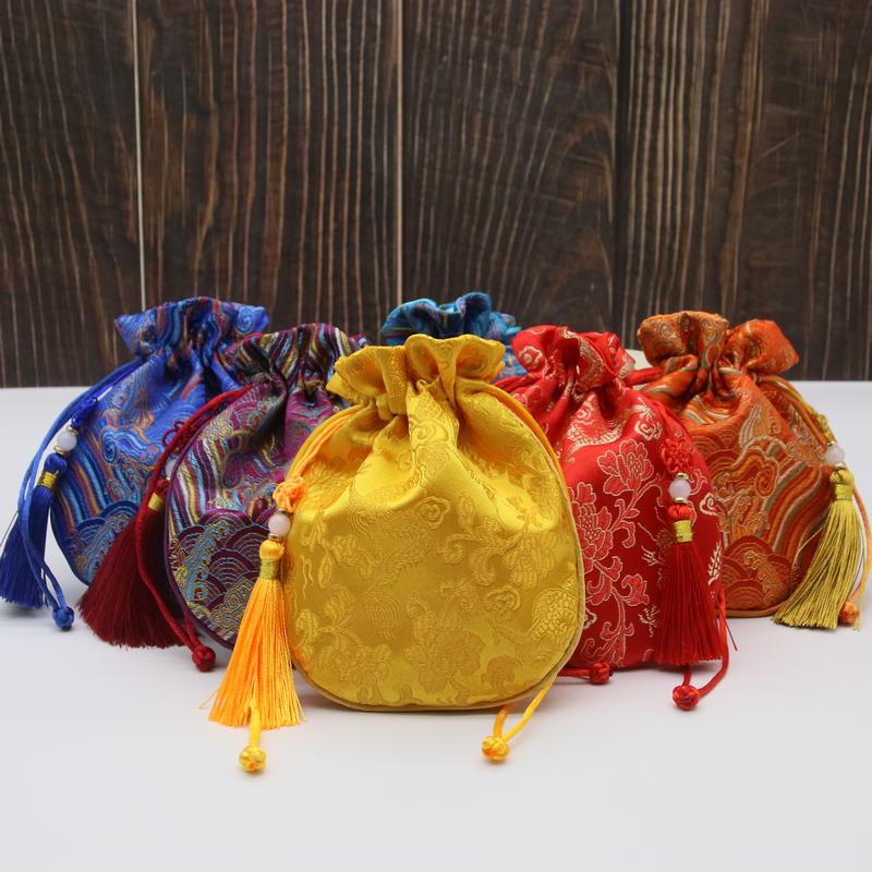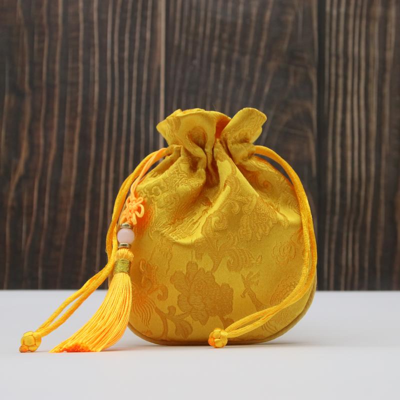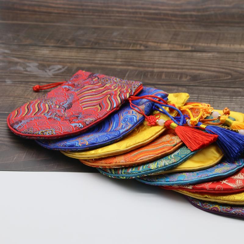 Bolsa de brocado con bordado antiguo, bolsa de almacenamiento de joyas, bolsa de tela con cordón, bolsa vacía