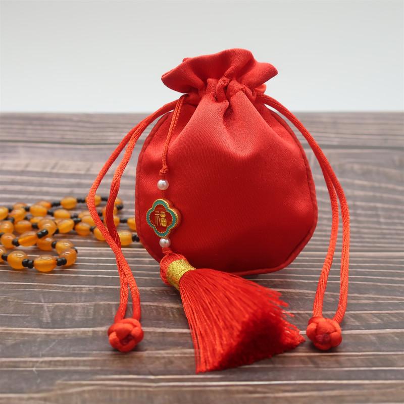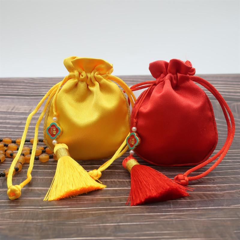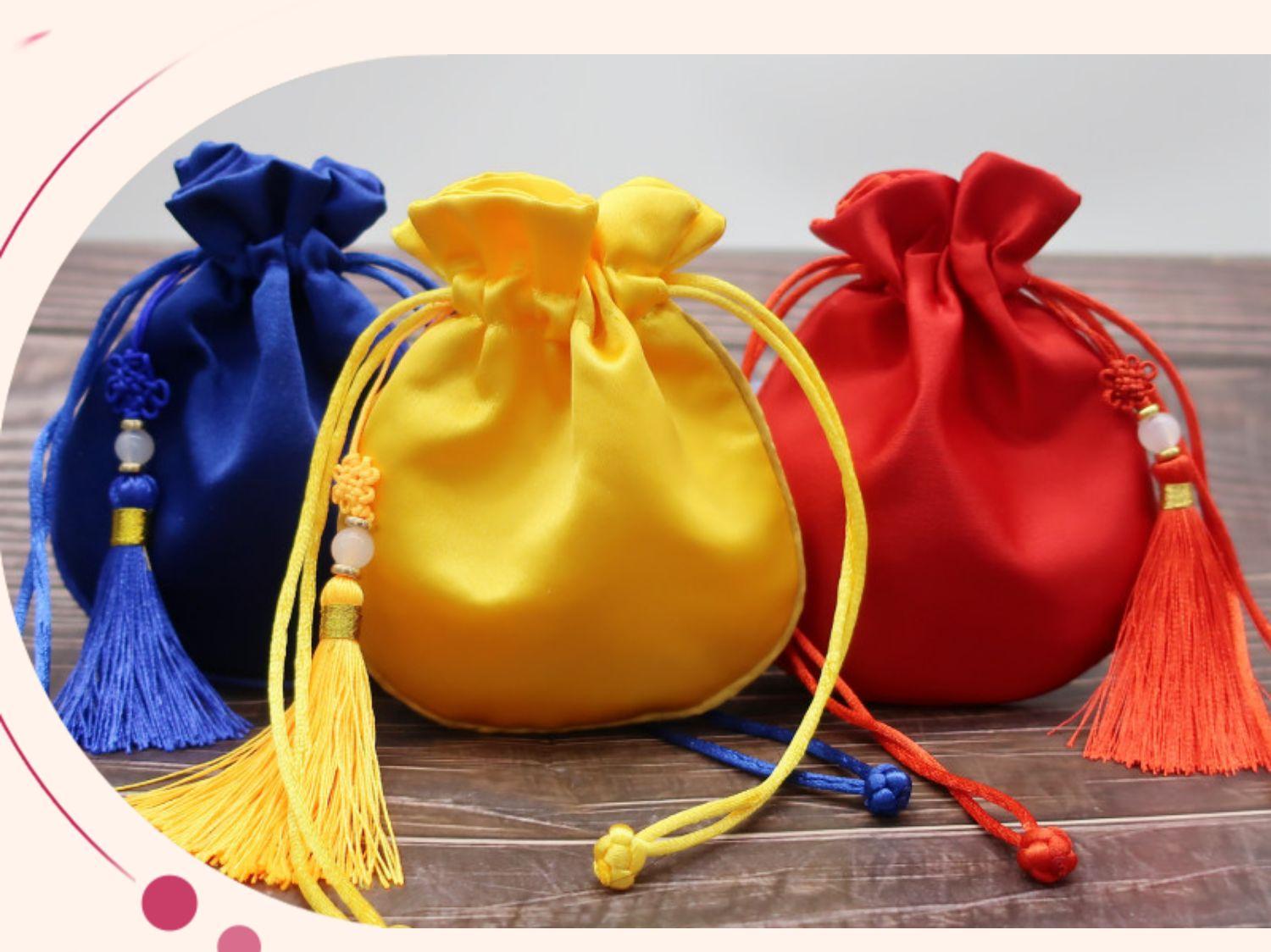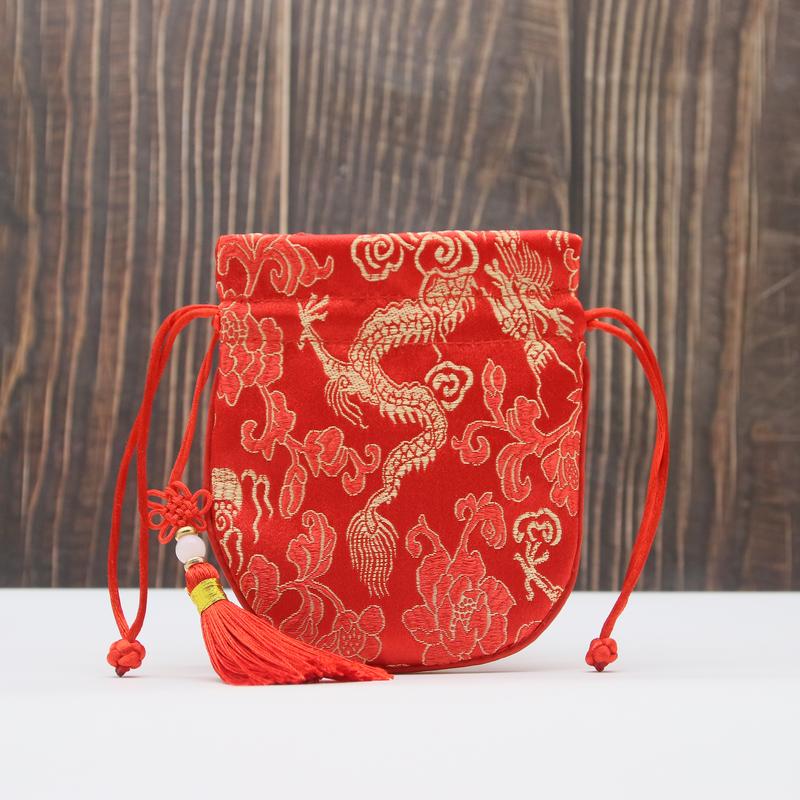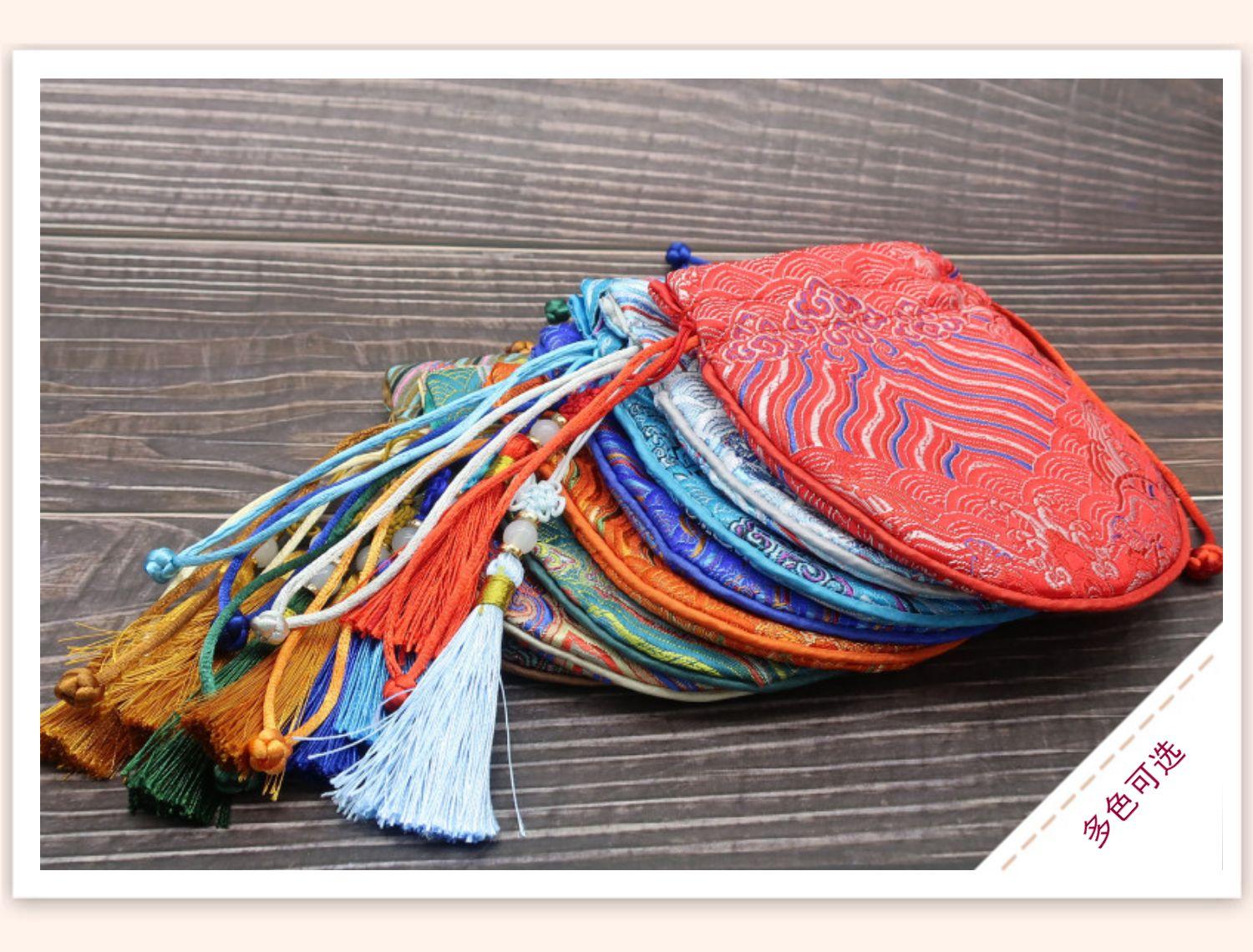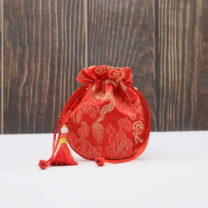 Bolsa de brocado con bordado antiguo, bolsa de almacenamiento de joyas, bolsa de tela con cordón, bolsa vacía
