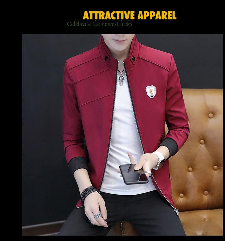 Chaqueta de béisbol ajustada de moda para primavera y otoño, elegante y casual, combinable con todo, para hombre.
