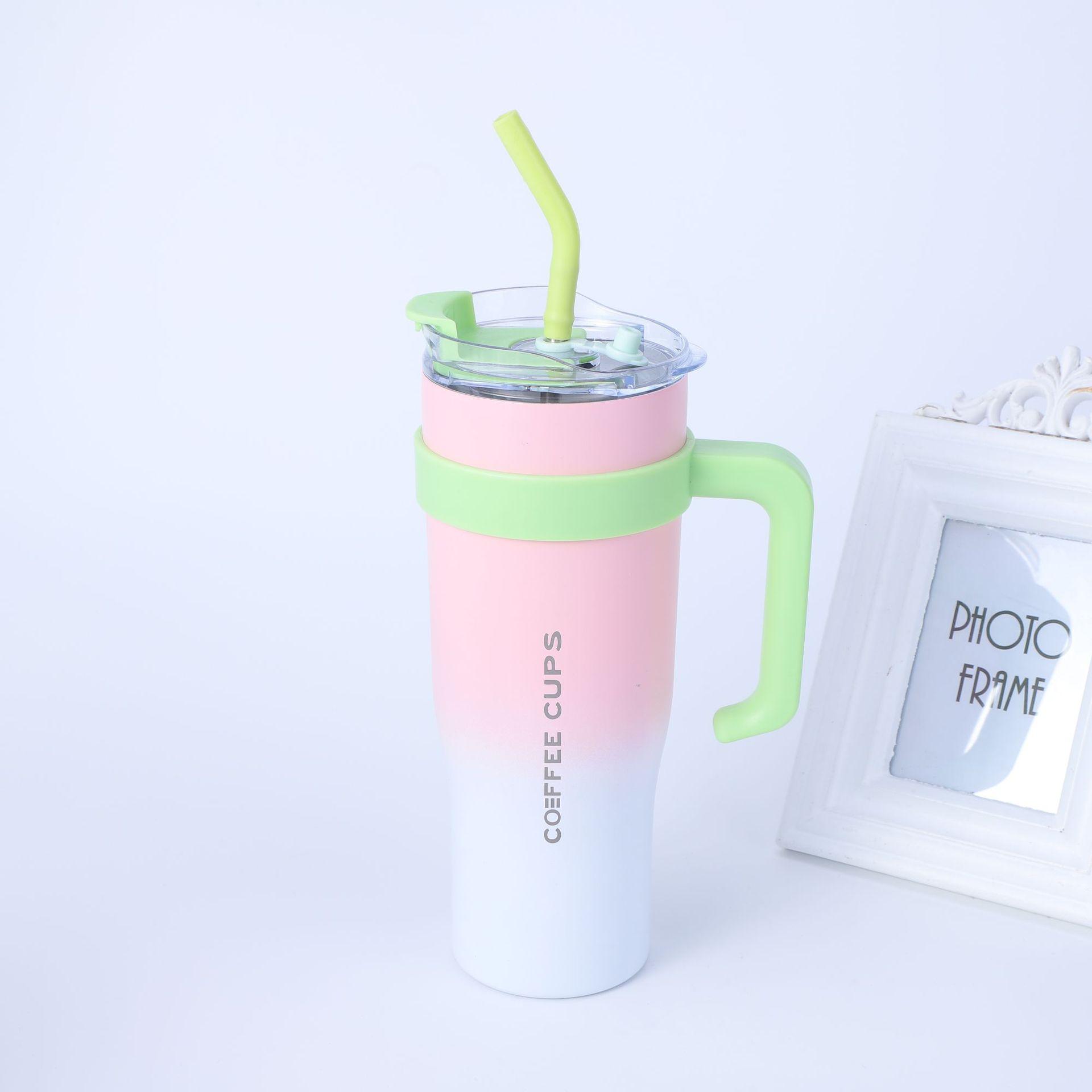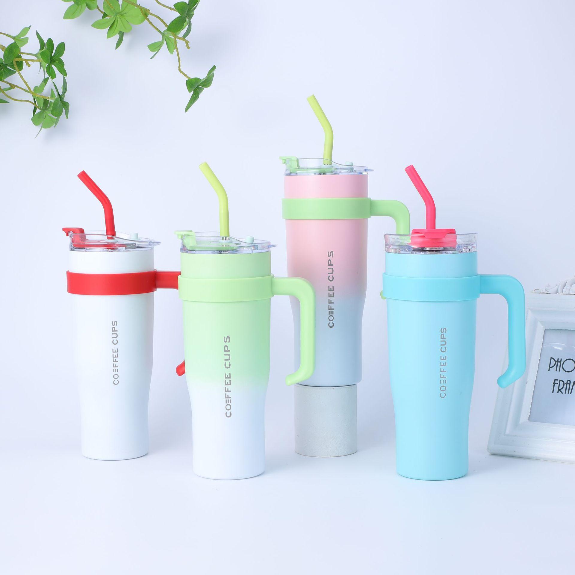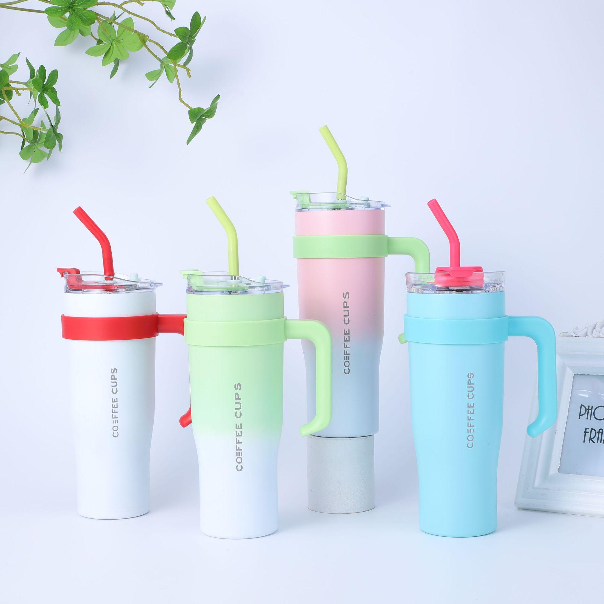 Compra Vaso Portátil para Coche 40oz Vaso con Pajita y Hielo Color Degradado Acero Inoxidable 304 Vaso Termo Asa Vaso para Agua Gran Capacidad al por mayor en Joom.pro