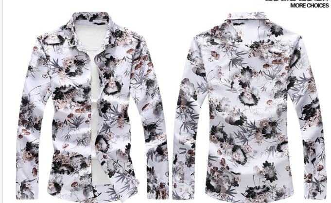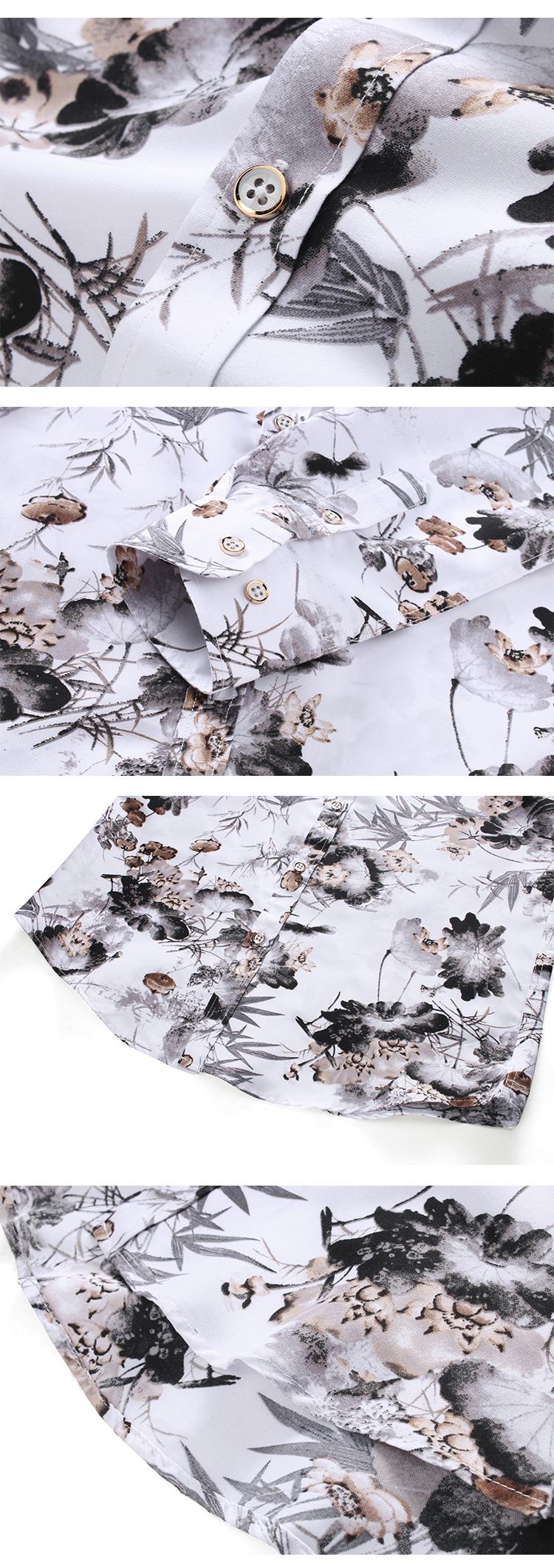 Camisa de manga larga estampada para hombre, nueva, de otoño, de talla grande, estilo británico, entallada y con cuello de pico.