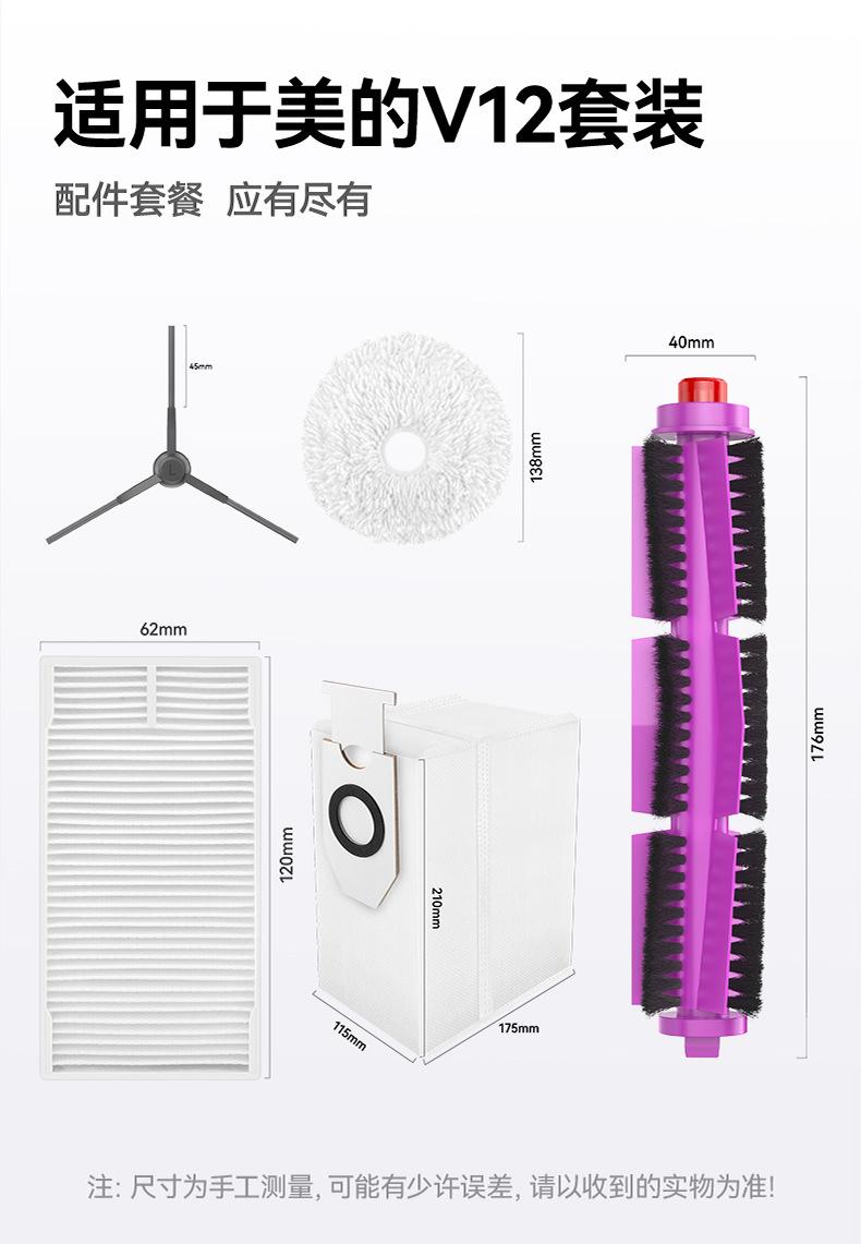 Adecuado para el robot de barrido Midea Eyes V12, limpiador de líquidos, mopa, cepillo lateral, filtro, rodillo, accesorios de cepillo.