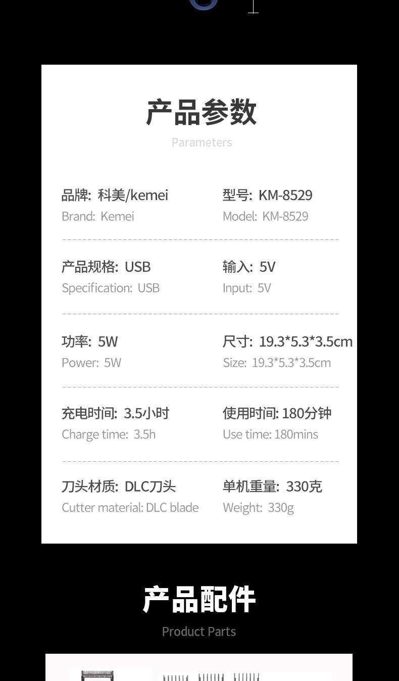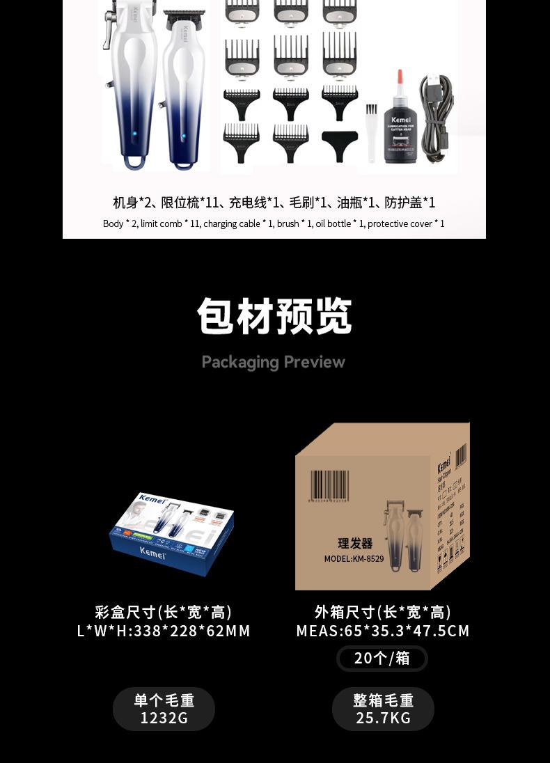 Kemei Set de Cortapelos de Alta Calidad Km-8529 Cortapelos Eléctrico Profesional Recortadora Cortapelos Eléctrico